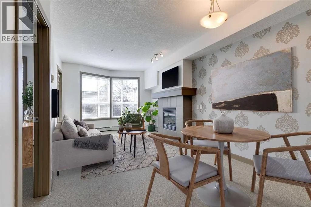 MOVE IN READY, RENOVATED KITCHEN, FRESHLY PAINTED, SOUTH FACING 1 BEDROOM+ DEN OVERLOOKING THE QUIET COURTYARD with TITLED HEATED UNDERGROUND PARKING, IN-SUITE LAUNDRY, and ADDITIONAL STORAGE UNIT in the heart of Marda Loop. Grand 9â ceilings, chic designer touches and oversized windows give immediate wow factor. A bright and open floor plan that is bathed in natural light. The living room has a gas fireplace and overlooks the South facing balcony and courtyard. The dining area flows through to the raised breakfast bar and into the spacious kitchen. The large master bedroom has room for a king-sized bed and boasts an oversized window with sunny South exposure and walk-through dual closets granting cheater access to the 4-piece ensuite bathroom. This ideal floor plan also includes a den for a private work or study space. The titled underground parking and a separate storage locker add to your comfort and convenience. This secure and pet-friendly complex has extremely strong financials and is exceedingly well managed. Phenomenally located steps away from Safeway, Cobs Bread, Village Ice Cream and Distilled Beauty Bar and Social House. Truly the best location in Marda Loop. All of this makes this the perfect place to call your next home. (id:27476)
