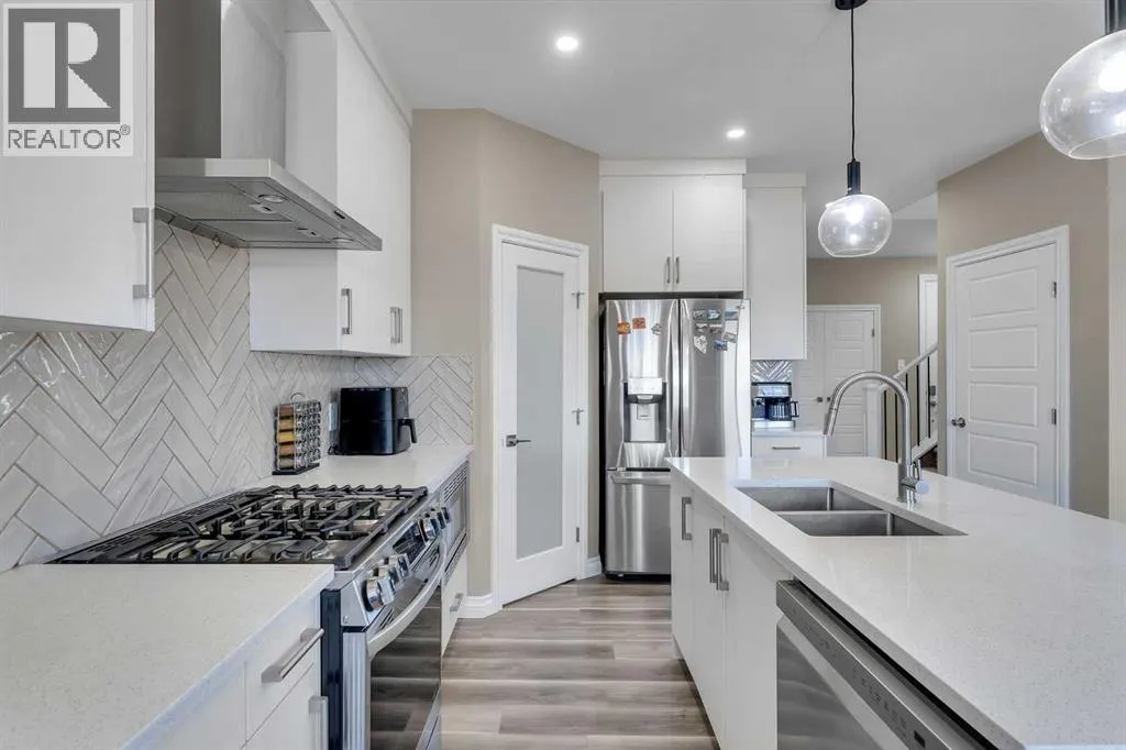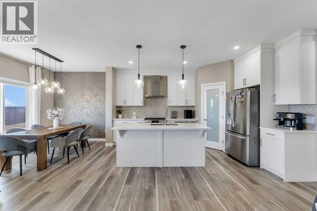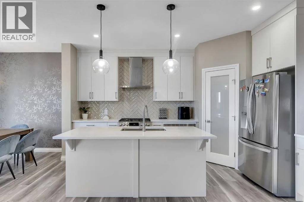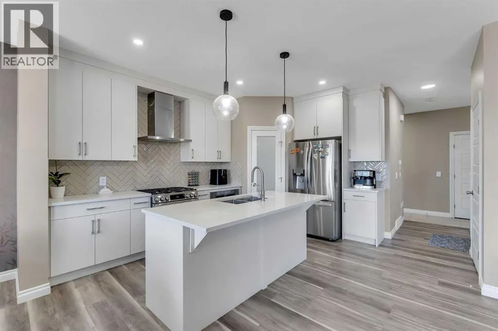 Welcome to your next move-in-ready home located in the thriving and family-friendly community of Cornerstone in NE Calgary! This impeccably maintained and thoughtfully upgraded 2-storey home combines elegant interior finishes, functional design, and built-in revenue potentialâmaking it the ideal opportunity for families, investors, or first-time buyers seeking both lifestyle and long-term value. The main living room features oversized windows that flood the space with natural light, paired with modern luxury vinyl plank flooring throughout. The spacious dining area flows naturally into the chef-inspired kitchen, which boasts quartz countertops, stainless steel appliances, a central island with bar seating, tile backsplash, and ample cabinetryâperfect for hosting, meal prep, or day-to-day family functionality.A convenient 2-piece powder room, mudroom, and direct garage access complete the main floor, enhancing ease of use during Calgaryâs dynamic seasons. Upstairs, you'll find a versatile bonus area/loft that can be transformed into a media room, reading nook, or kidsâ play zone. The primary retreat is a true sanctuary featuring a generous layout, walk-in closet, and a luxurious 5-piece ensuite bathroom complete with quartz vanity and walk-in glass shower.Two additional spacious bedrooms offer plenty of room for growing families or guests and are serviced by a full 4-piece shared bathroom. The upper floor also includes a convenient laundry area, so youâll never need to carry laundry up and down stairs. The fully developed illegal basement suite is a rare and valuable asset, ideal for multi-generational living with its own private side entrance. Call your favourite Realtor to book a Showing. (id:27476)