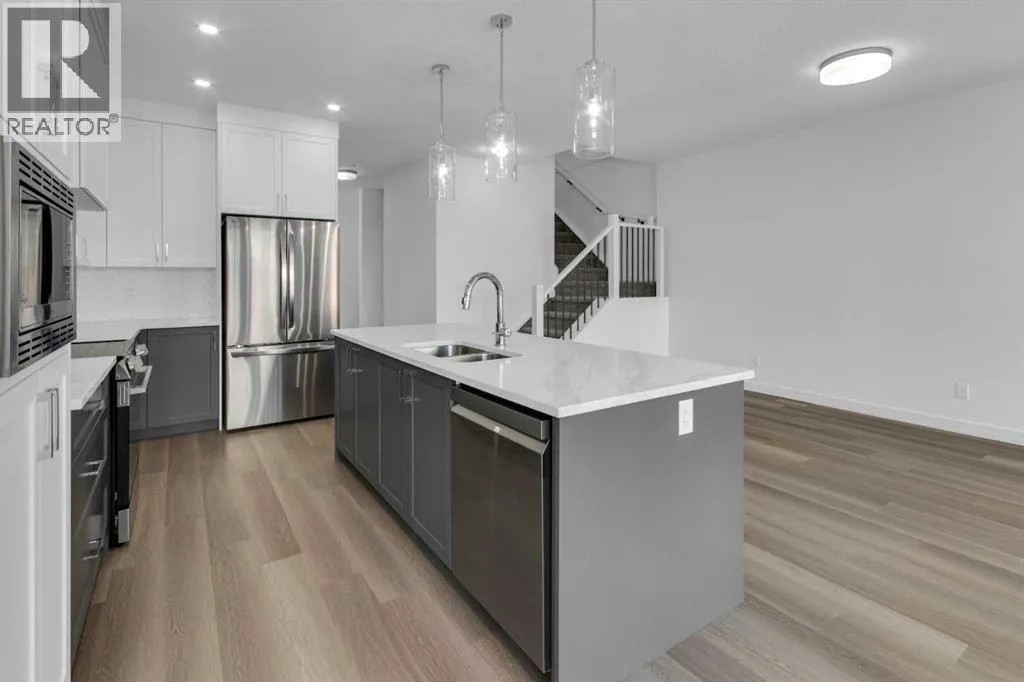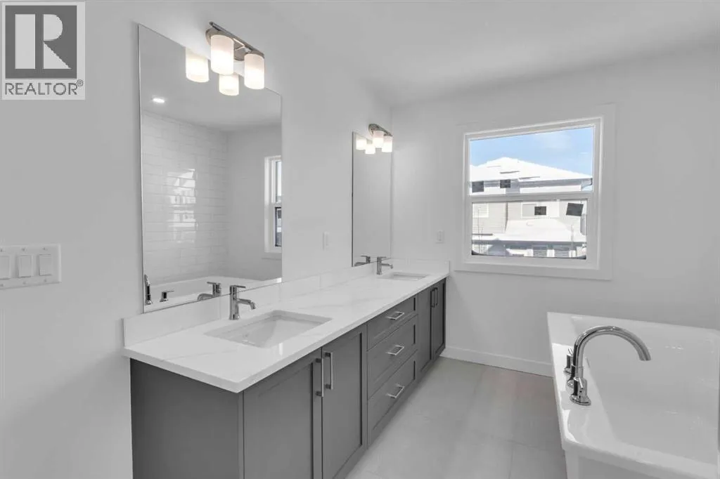 Nestled in the highly sought-after community of Copperfield, this exceptional 4 bedroom up, single-family home showcases quality craftsmanship and numerous upgrades throughout. The thoughtfully designed main level features 9-foot ceilings, creating a bright and spacious atmosphere. A generous living room flows seamlessly into the chef-inspired kitchen, complete with ceiling-height cabinetry, ample storage, and refined finishes. A private office off the spacious front foyer boats a stylish barn door, and a convenient two-piece powder room completes the main floor. The elegant staircase, finished with modern railings, enhances the homeâs open-concept feel as it leads to the upper level. Upstairs, youâll find four generously sized bedrooms, including a luxurious primary suite spanning the back of the home; featuring a spacious walk-in closet and a spa-inspired ensuite with dual vanities, a freestanding soaker tub, and a fully tiled shower. Two additional bedrooms are connected by a well-appointed Jack-and-Jill bathroom, while the fourth bedroom enjoys access to a full bathroom located just outside its doorâoffering three full bathrooms on the upper level.The home also features a separate side entrance leading to a 9-foot basement, which is roughed-in for a future legal basement suite, providing excellent investment or multi-generational living potential. Outside, the completed rear fence, patio off the dining room and a double front-attached garage adds everyday convenience. Residents will appreciate the abundance of nearby green spaces, parks, and walking paths. Ideally located just minutes from top-rated schools, major shopping amenities, and offering quick access to Deerfoot Trail and Stoney Trail, this home perfectly balances comfort, functionality, and future opportunity. This is an exceptional opportunity to own a beautifully appointed home in a prime location. Schedule your private viewing today. (id:27476)