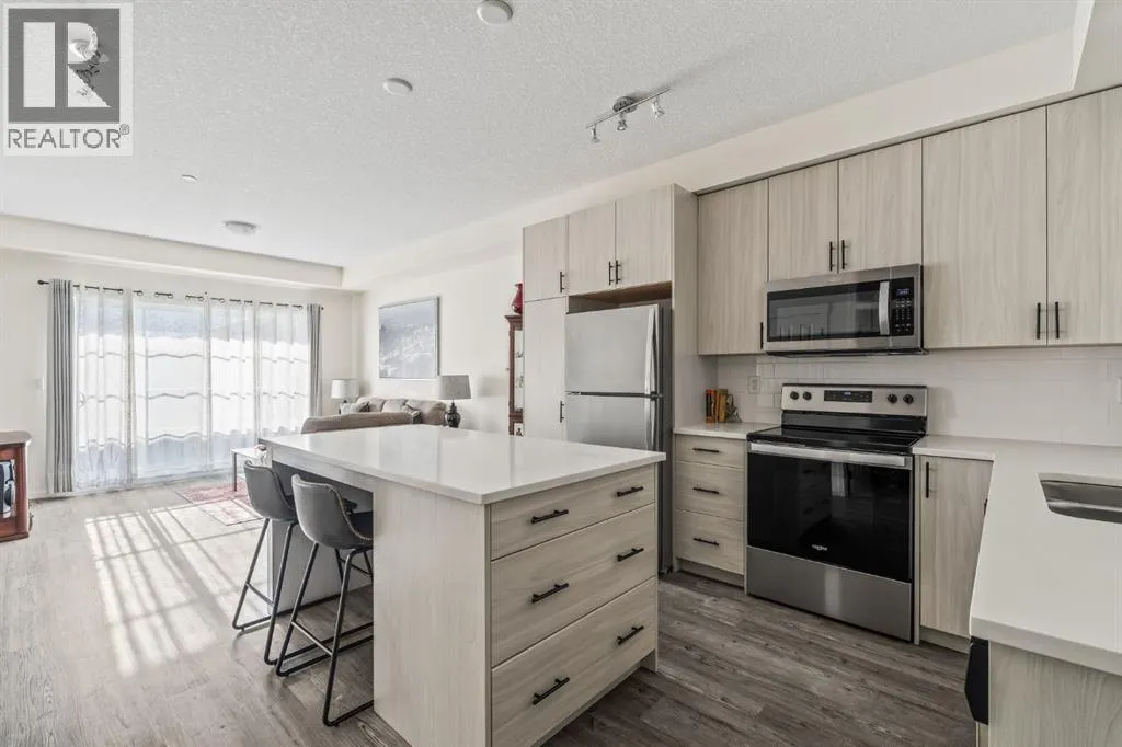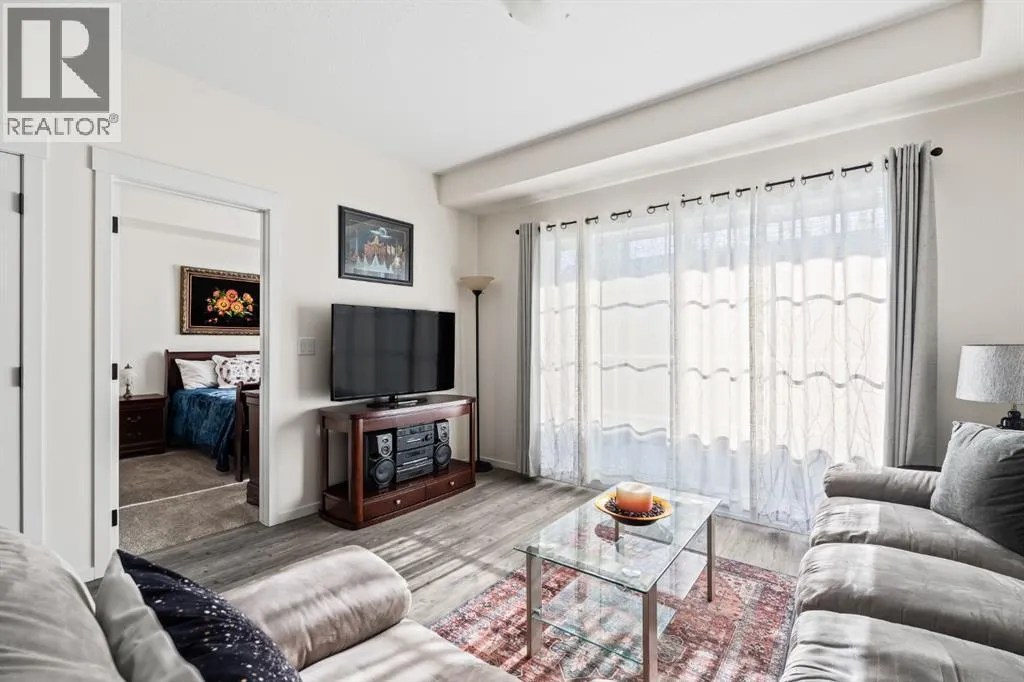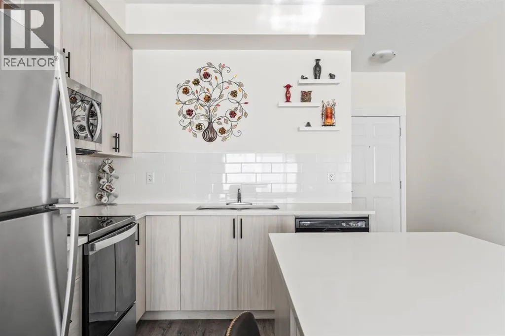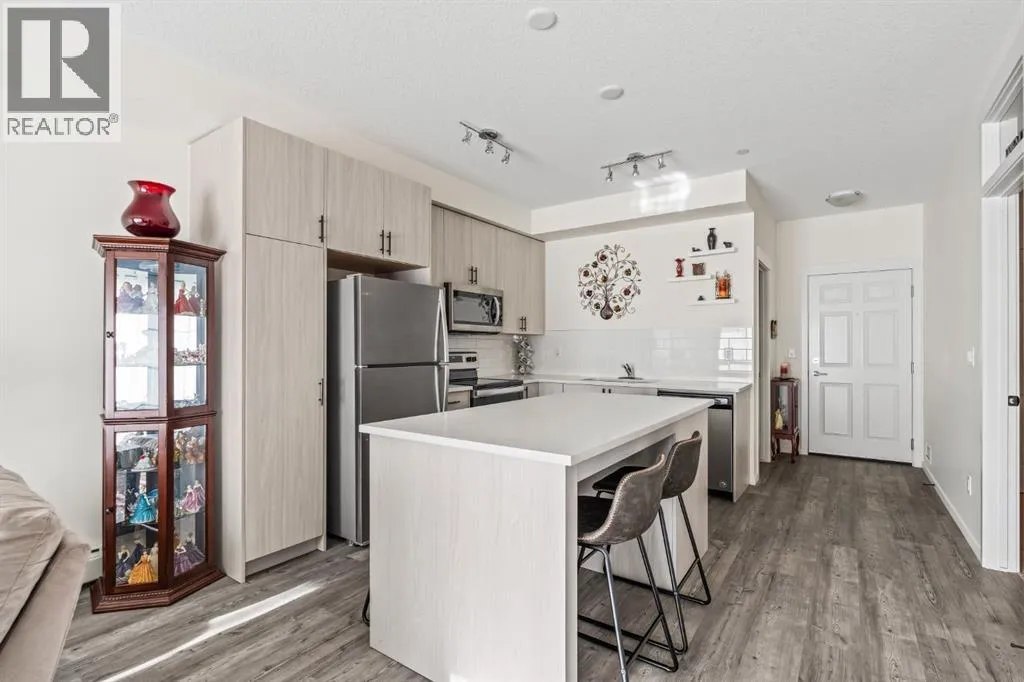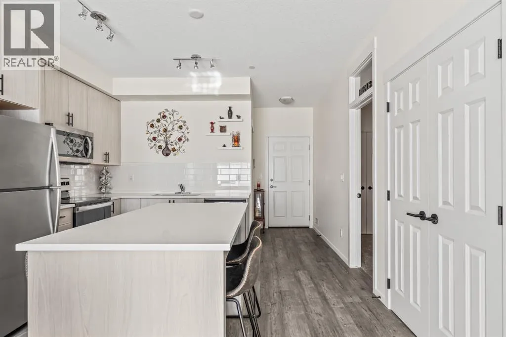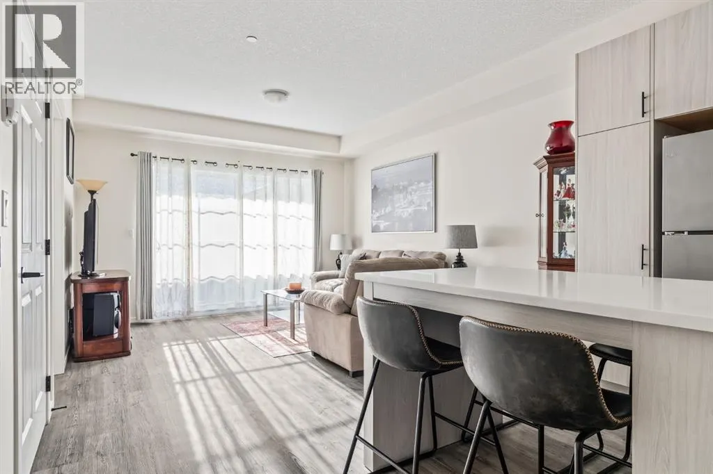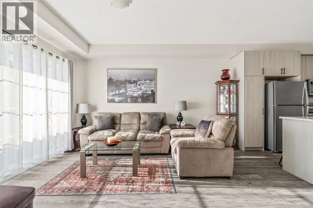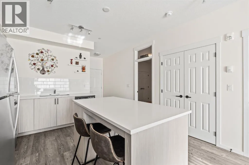 Welcome to this beautifully designed third floor condo in the sought-after community of Legacy. Boasting 752 square feet of modern, open-concept living space, this 2-bedroom, 2-bathroom unit blends style and functionality for comfortable everyday living. Step inside and be greeted by a bright and spacious front living room with oversized, south facing sliding patio doors that flood the space with natural light and lead to your private balcony the perfect spot to enjoy your morning coffee or unwind in the evening. At the heart of the home is a gorgeous kitchen that will inspire any home chef, featuring stainless steel appliances, quartz countertops, a designer tile backsplash and an abundance of cabinetry, all centred around a large central island ideal for casual dining and entertaining. The luxury vinyl plank flooring throughout the main living areas offers both durability and style. Retreat to the large primary bedroom, complete with a walkthrough closet and a private ensuite featuring a stand-up shower. The second bedroom is versatile and would make a fantastic home office, guest room, or workout space. Additional highlights include one titled parking stall, a separate storage locker and in-suite laundry for added convenience. Located in the vibrant and growing community of Legacy, youâll enjoy quick access to a variety of nearby amenities including shops, restaurants, walking paths, playgrounds, and transit options. Families will appreciate the close proximity to All Saints High School, while commuters will benefit from easy access to major roadways. Donât miss this opportunity to own a stunning top-floor unit in one of Calgaryâs most desirable neighbourhoods. (id:27476)