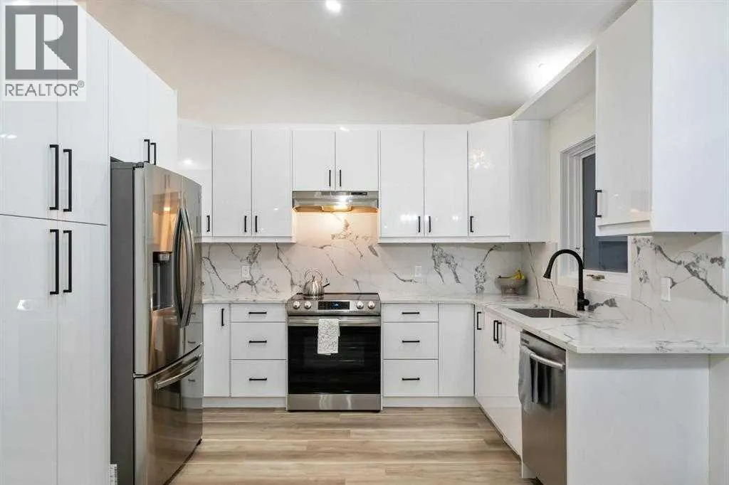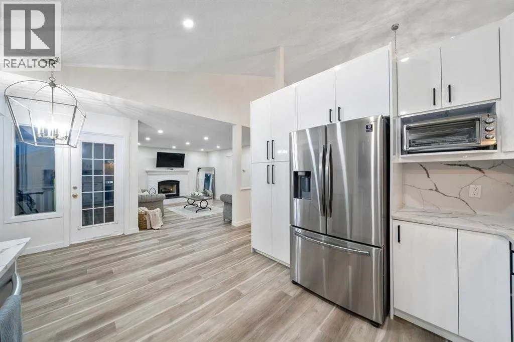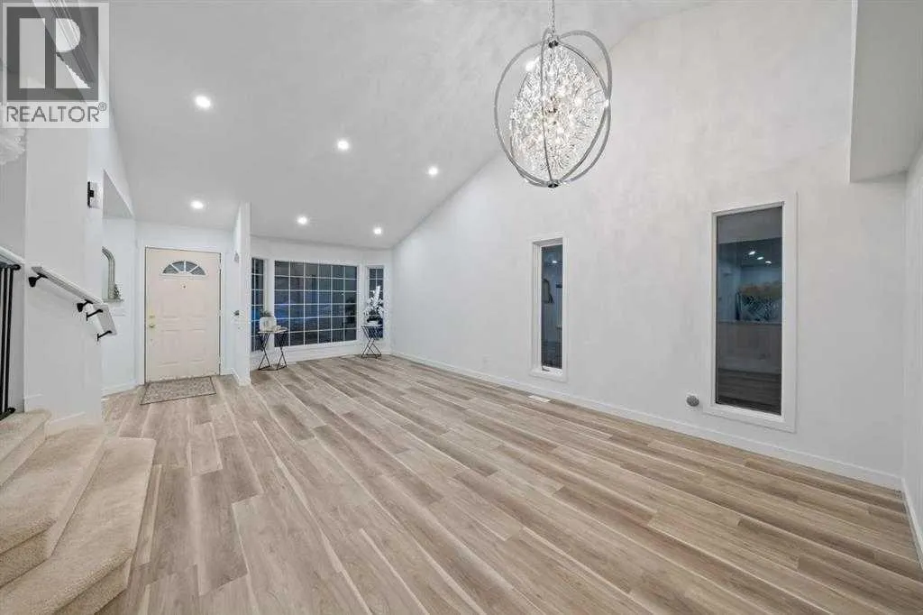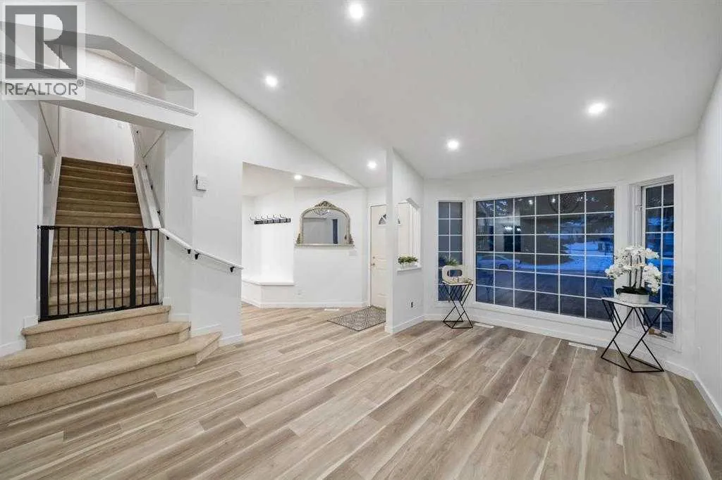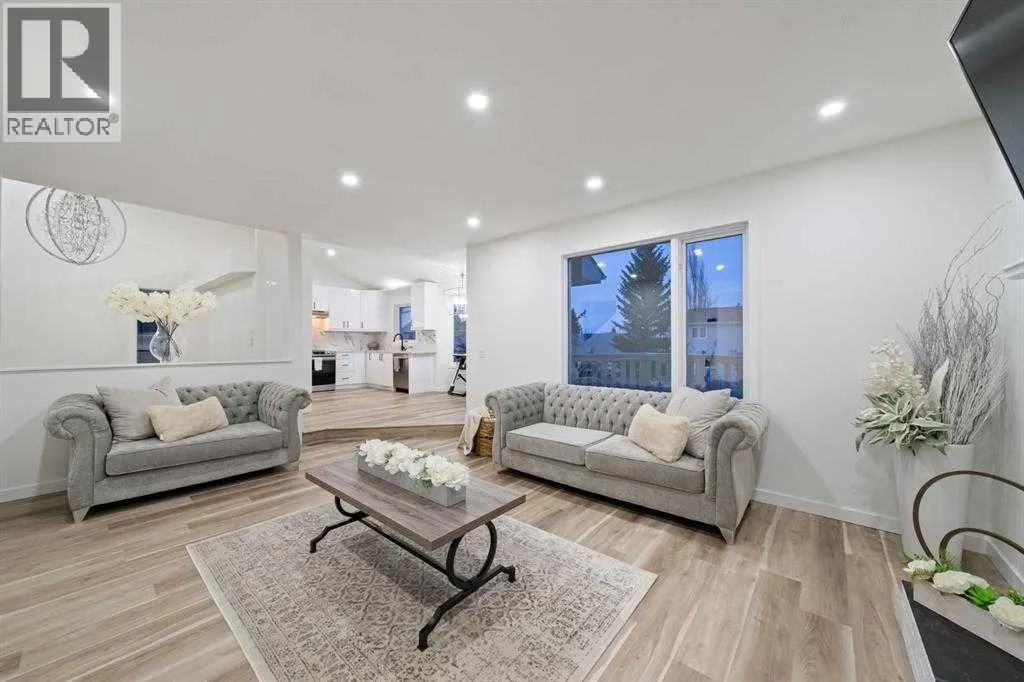 Prime location, southwest exposure, and directly across from greenspace â this beautifully maintained former Jayman BUILT showhome in Sandstone Valley presents an exceptional opportunity in one of NW Calgaryâs most family-oriented neighbourhoods. Offering over 2,500 sq.ft. of developed living space, this thoughtfully designed 2-storey split is highlighted by soaring vaulted ceilings and an impressive open-to-below family room that invites in abundant natural light while creating striking architectural presence. The well-planned multi-level layout delivers both openness and functional separation, making it ideal for refined everyday living and effortless entertaining. The main level features a beautifully updated kitchen with quartz countertops, modern cabinetry, stainless steel appliances, and ample storage, seamlessly connecting to a bright breakfast nook with direct access to the spacious deck. Extensive upgrades throughout the home elevate both comfort and style, including renovated bathrooms, updated flooring, contemporary lighting and plumbing fixtures. The fully developed city registered LEGAL walkout basement expands the living space, a well-appointed kitchen with dining space, a fourth bedroom, full bathroom, additional storage and a flex room â offering excellent flexibility for extended family living or valuable rental income potential. Surrounded by parks and pathways and just minutes from Nose Hill Park, this home is within walking distance to elementary schools and transit, with convenient access to Country Hills Boulevard and Stoney Trail. A rare chance to own a modern renovated, bright, greenspace-facing property with legal walkout basement suite in a mature, family-oriented community. Book your viewing today! (id:27476)
