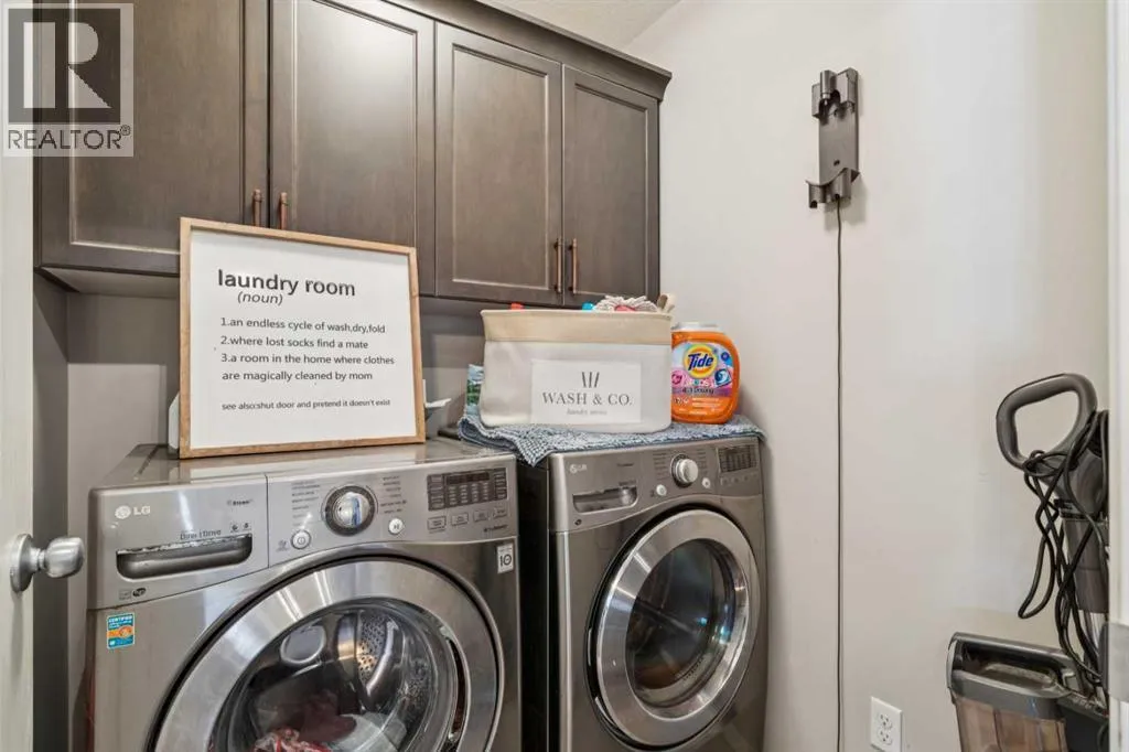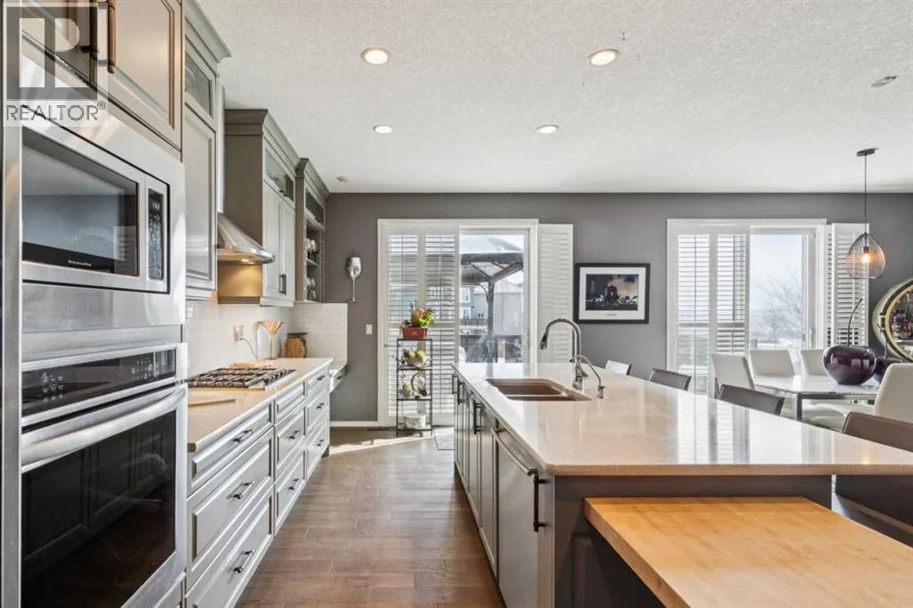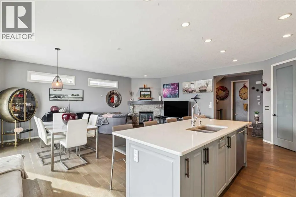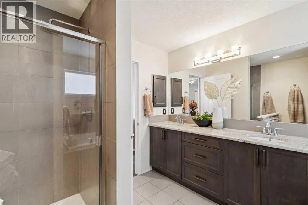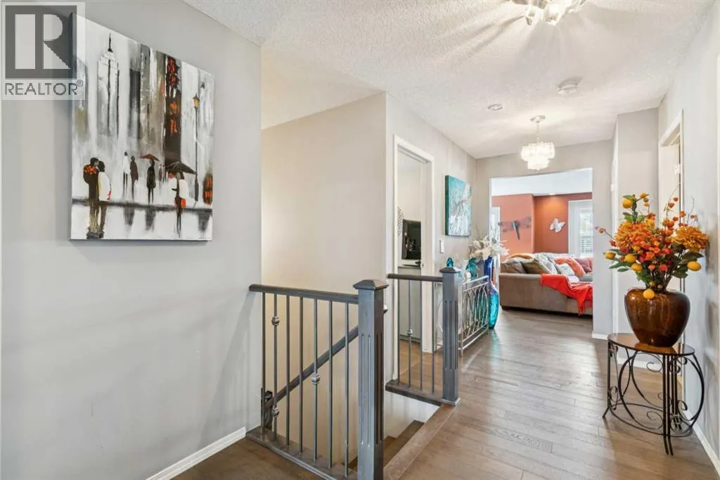 Located in the sought after community of Cranston! First time offered for sale, this 3-bedroom home offers over 2,100 sq ft of finished living space and is perfect for any family. The open floor plan of the main level provides for a perfect main living area. The kitchen, overlooking the dining and living room is complete with stainless steel appliances including gas cooktop, granite counter tops, oversized island with breakfast bar & bakers counter, walk-in pantry, and ceiling height cabinets. The living room overlooks the back yard and has a cozy corner gas fireplace. Also on this level is a 2-pc washroom & mudroom off the garage. The upper level offers 3 nice sized bedrooms, a 4-pc bathroom and laundry room. The large family room has vaulted ceilings and large windows making it nice and bright. The primary suite offers a large walk-in closet and a 5-pc ensuite that includes a soaker tub and walk-in shower. The basement is untouched and provides the perfect opportunity to add additional living spaces. Recessed lighting, hardwood floors, and vinyl window shutters are found throughout this well-maintained home. The landscaping is low maintenance with artificial turf in the backyard and rock in the front. The SE facing backyard is perfect for entertaining with a large dura deck off the kitchen that leads to a lower deck with hot tub and plenty of space for lounging and grilling. Walking distance to the amenities of Cranston Corner & Cranston Market. Perfectly situated steps to the Cranston Escarpment View Point & trails. Close to schools & the Calgary Health South Campus. Commuting is easy with quick access to Stoney Trail, Deerfoot Tr & MacLeod Tr. (id:27476)