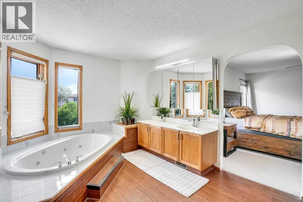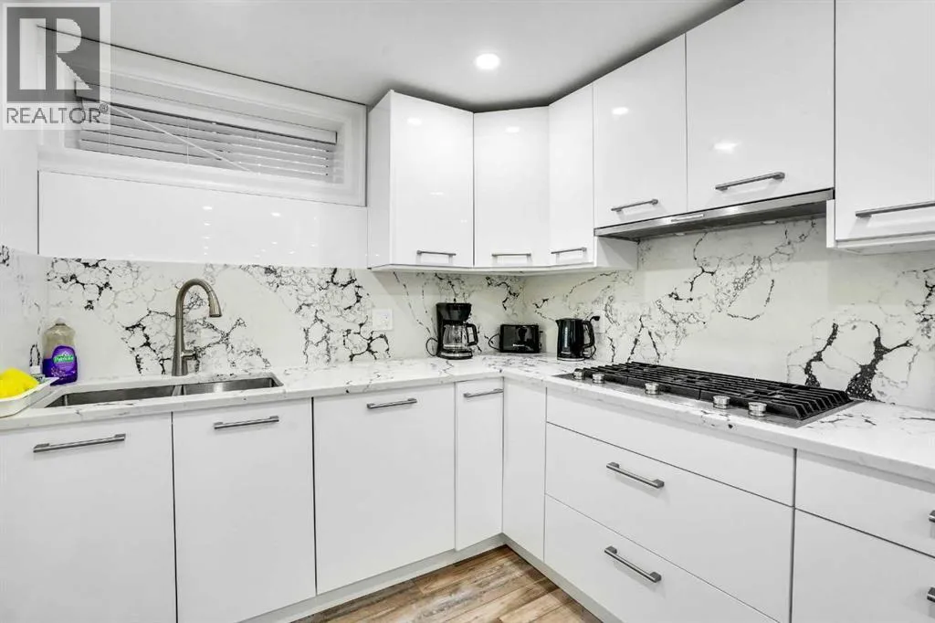 Quick Possession â VACANT! Beautifully maintained two-storey home offering 3,404 sq ft of developed living space (2,224 sq ft above grade), including a fully developed, high-end 2-bedroom, 1-bath illegal basement suite (up to the code with City Calgary) with a separate entrance and 9' ceilings. Backing onto green space with a sunny south-facing backyard.The main floor features a bright den, spacious formal dining room with breakfast nook, and an open-concept kitchen with large windows. The kitchen is equipped with a new stainless steel fridge and dishwasher, new hood fan, and a KitchenAid 6-burner gas stove â perfect for chefs and entertaining. The spacious living room offers a cozy gas fireplace, while the laundry room includes a new washer and dryer. A newly added sunroom with wide sliding doors provides excellent year-round living and entertaining space.A curved staircase leads to the upper level, where the massive primary suite features a luxurious ensuite with corner jacuzzi tub, separate shower, vanity, and a huge walk-in closet. Two additional generously sized bedrooms and a full bathroom complete the upper floor.The bright basement suite is freshly painted throughout and finished to a high standard, featuring large windows, granite countertops, in-floor bathroom heating, 1" plywood acoustic ceiling insulation, premium Miele stainless steel appliances, an independent heating system, and Navien on-demand hot water â offering excellent potential for investors or mortgage-helper income.Additional upgrades include four new exterior fibreglass doors, stamped concrete patios in the backyard and side yard, and an 11' x 11' reclaimed wood pergola. The home also features 220V outlets in the garage and basement, and rough-ins for an outdoor kitchen, BBQ, and hot tub. All major stainless steel appliances and the gas stove were purchased in 2025, providing a modern, energy-efficient living experience.Located just minutesâ walk to the Bow River pathway, bike trails, Carburn Park, Sue Higgins Off-Leash Dog Park, and a Kâ6 CBE elementary school, with nearby shops, restaurants, and quick access to Glenmore Trail for an easy commute. (id:27476)