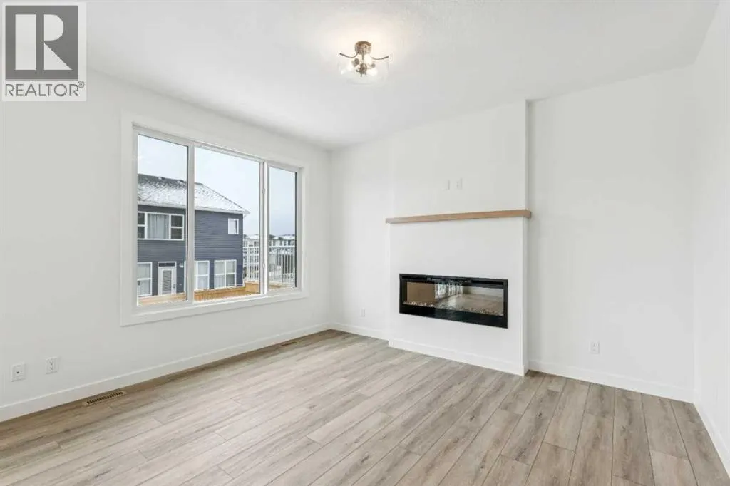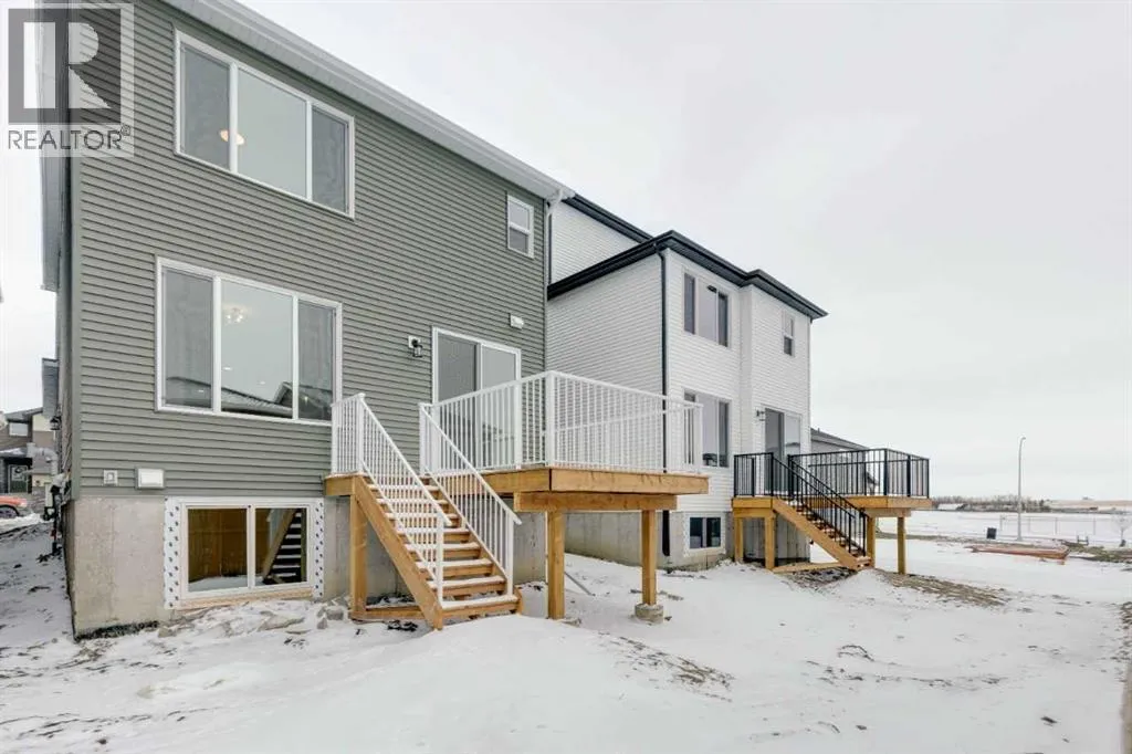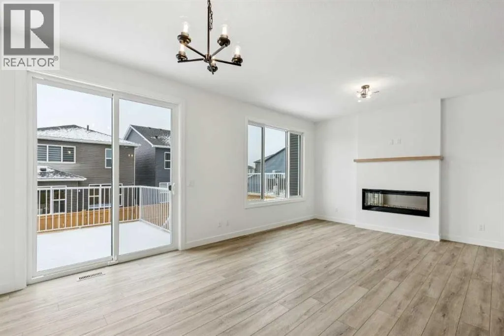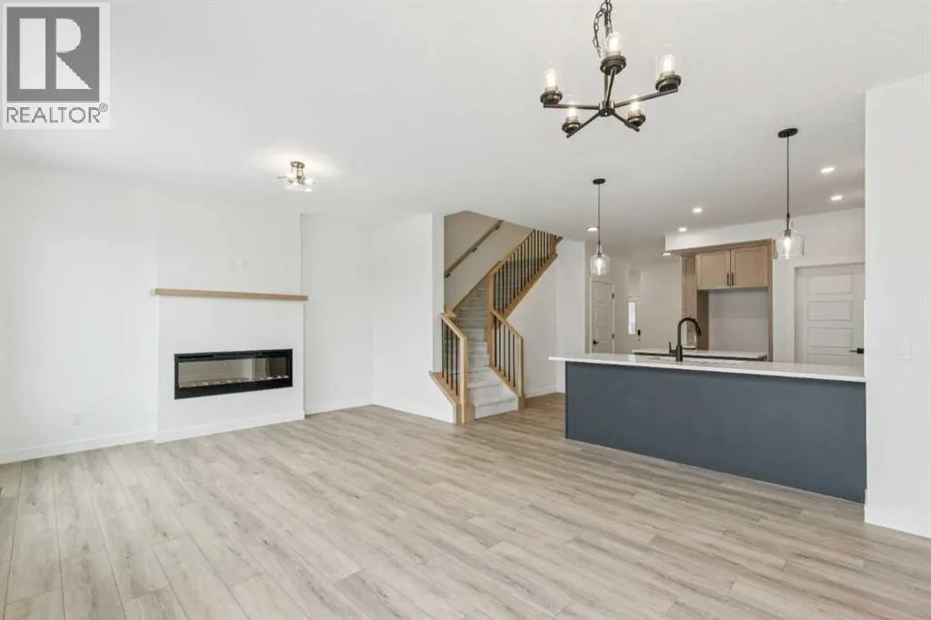 Welcome to the Birkley 3 by Sterling Homes Calgary! Built by a trusted builder with over 70 years of experience, this home showcases on-trend, designer-curated interior selections tailored for a home that feels personalized to you. Energy efficient and smart home features, plus moving concierge services included in each home.Welcome to this beautifully appointed 2025 specification home situated on a sunshine lot. The kitchen features a chimney hood fan with microwave wall unit, pendant lighting above the eating ledge, and a convenient walk-in pantry. The ensuite offers a fiberglass base shower with tiled walls, a tiled niche, and a bank of drawers for added storage. Fall in love with the maple railing with iron spindles that add the perfect finishing touch to this home. Photos are representative.Enjoy thoughtful upgrades throughout, including a side entrance, painted basement floor, larger basement windows, and added garage width. Relax by the electric fireplace with maple cap or step out onto the 10' x 12' rear deck complete with BBQ gas line. This energy-efficient home is Built Green certified and includes triple-pane windows, a high-efficiency furnace, and a solar chase for a solar-ready setup. With blower door testing, plus an electric car charger rough-in, itâs designed for sustainable, future-forward living. Featuring a full range of smart home technology, this home includes a programmable thermostat, ring camera doorbell, smart front door lock, smart and motion-activated switchesâall seamlessly controlled via an Amazon Alexa touchscreen hub. Spme photos are a representative. (id:27476)