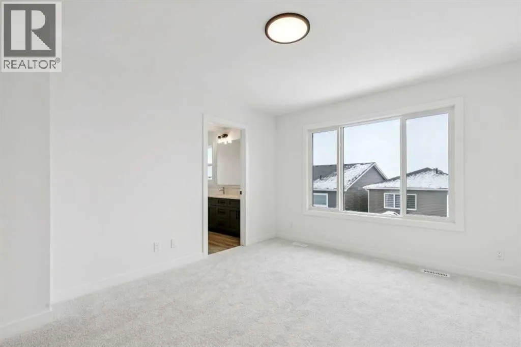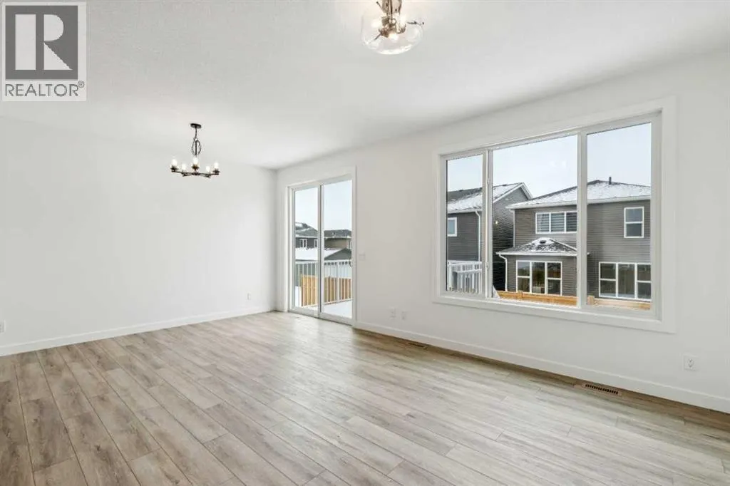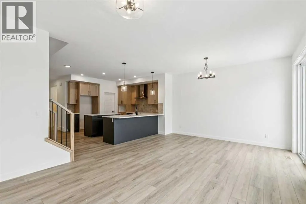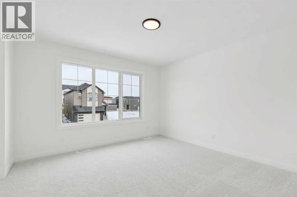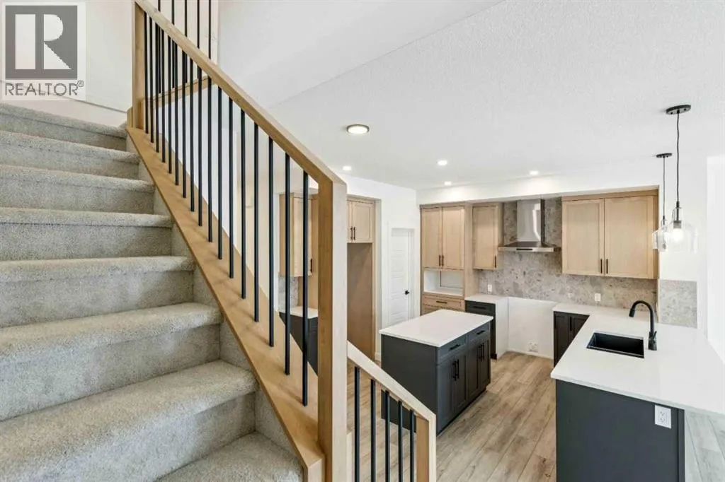 Welcome to the Birkley 3 by Sterling Homes Calgary! Built by a trusted builder with over 70 years of experience, this home showcases on-trend, designer-curated interior selections tailored for a home that feels personalized to you. Energy efficient and smart home features, plus moving concierge services included in each home.Welcome to this beautifully appointed 2025 specification home situated on a sunshine lot. The kitchen features a chimney hood fan with microwave wall unit, pendant lighting above the eating ledge, and a convenient walk-in pantry. The ensuite offers a fiberglass base shower with tiled walls, a tiled niche, and a bank of drawers for added storage. Fall in love with the maple railing with iron spindles that add the perfect finishing touch to this home. Photos are representative.Enjoy thoughtful upgrades throughout, including a side entrance, painted basement floor, larger basement windows, and added garage width. Relax by the electric fireplace with maple cap or step out onto the 10' x 12' rear deck complete with BBQ gas line. This energy-efficient home is Built Green certified and includes triple-pane windows, a high-efficiency furnace, and a solar chase for a solar-ready setup. With blower door testing, plus an electric car charger rough-in, itâs designed for sustainable, future-forward living. Featuring a full range of smart home technology, this home includes a programmable thermostat, ring camera doorbell, smart front door lock, smart and motion-activated switchesâall seamlessly controlled via an Amazon Alexa touchscreen hub. Spme photos are a representative. (id:27476)