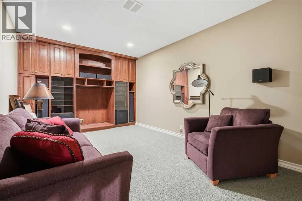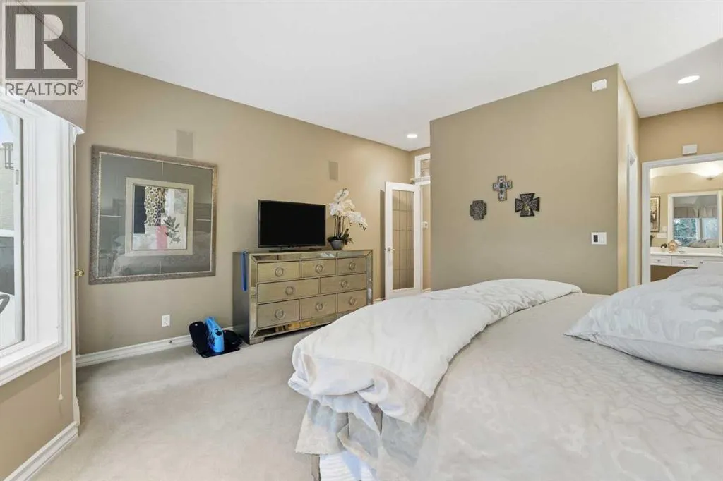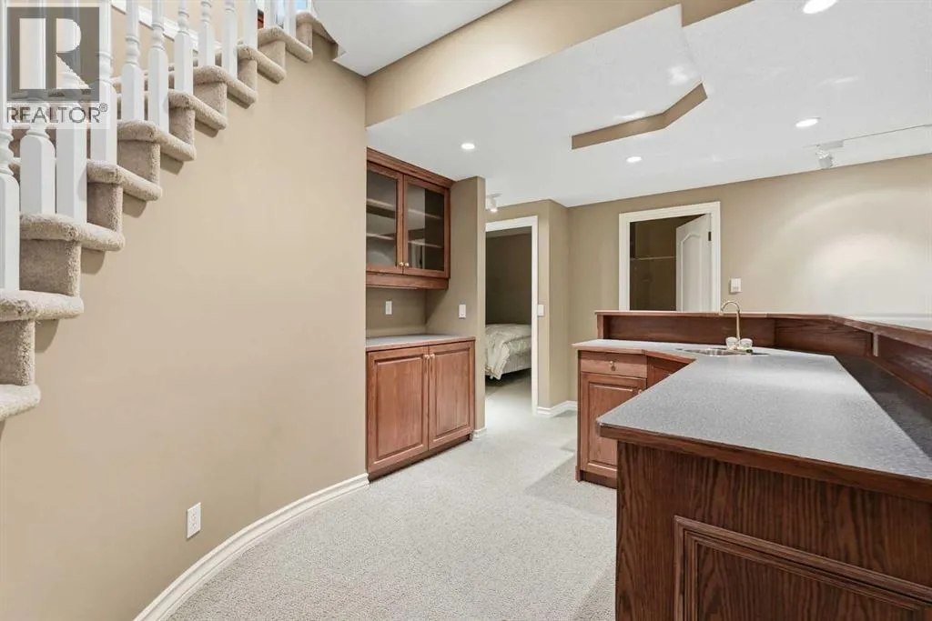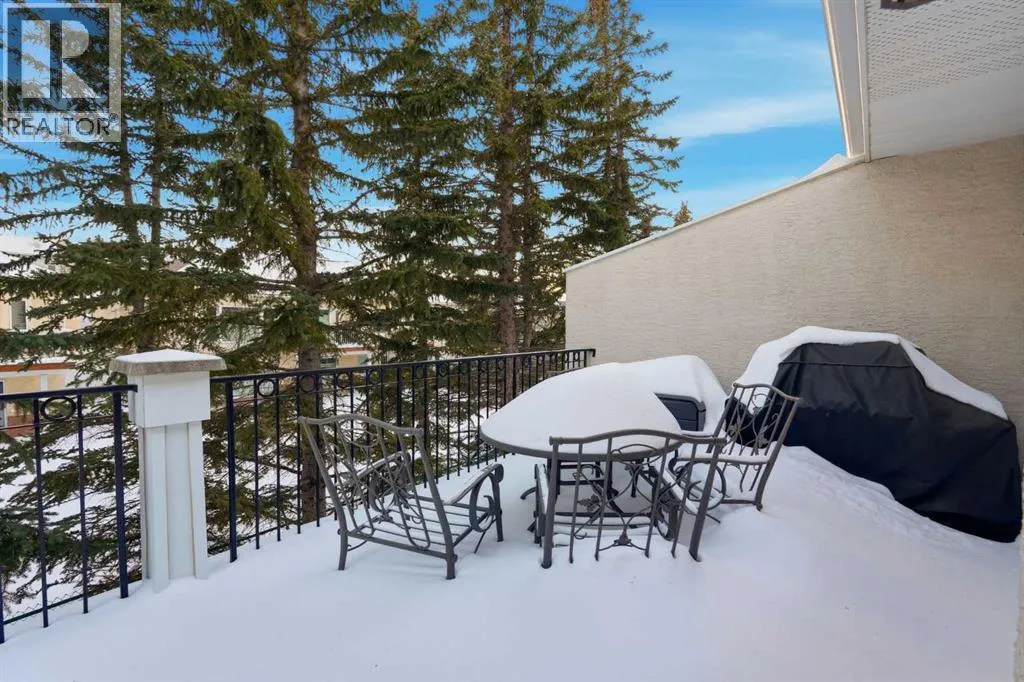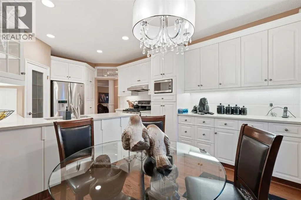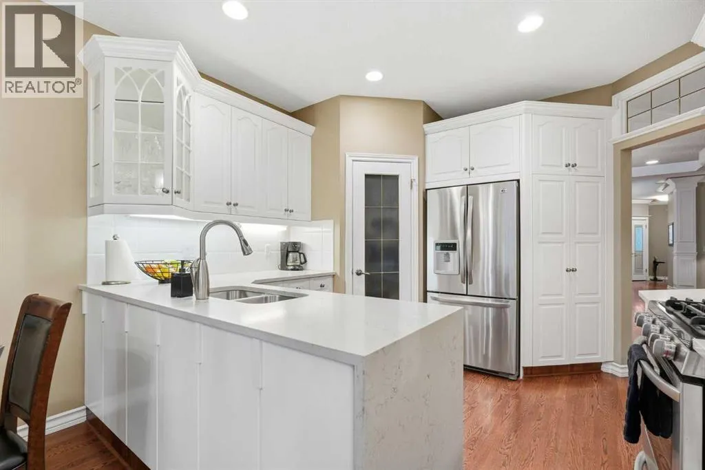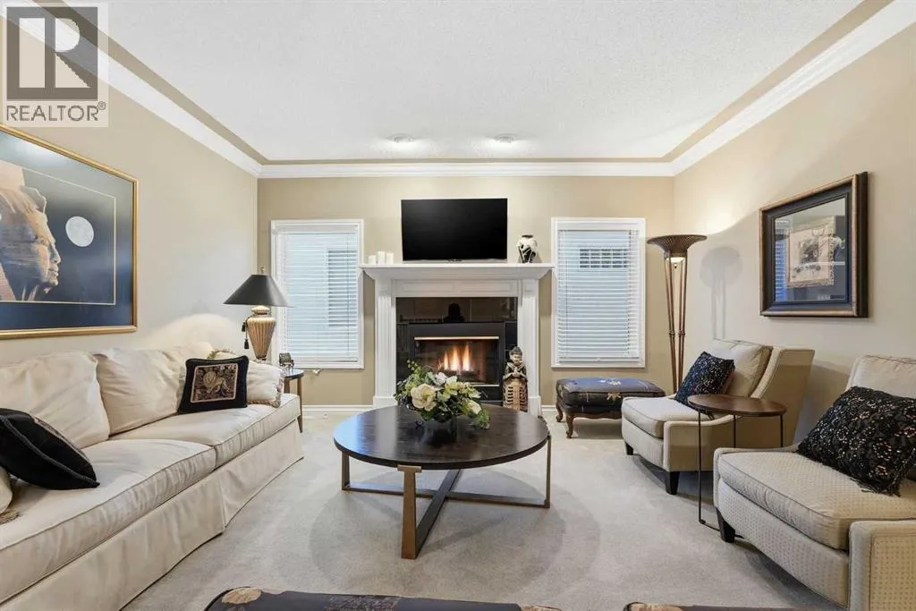 Inviting, fastidiously maintained and exceptionally spacious villa bungalow with a FULLY DEVELOPED WALK OUT BASEMENT, set within the exclusive gated community of The Brickburn in Patterson. Offering nearly 3,400 sq ft of beautifully maintained living space, this residence blends timeless elegance with thoughtful updates. The main level features rich hardwood floors, refined crown mouldings, and stylish lighting. A generous living room anchored by a classic feature fireplace flows seamlessly into the formal dining areaâan ideal setting for hosting family and friends. The tastefully updated and reconfigured kitchen is appointed with newer quartz countertops, abundant cabinetry including a pantry, newer stainless steel appliances, and a charming breakfast nook. The serene primary suite provides direct access to the south-facing deck and includes dual walk in closets along with a private 4 piece ensuite complete with double sinks and an oversized shower. A dedicated office with custom built ins is tucked just off the foyer, creating an ideal work from home retreat. A 2 piece powder room and well appointed laundry room with sink and storage complete the main level. The expansive walk out basement is designed for entertaining, offering a spacious family room with fireplace, a full wet bar, a large recreation area, a comfortable bedroom, a 4 piece bath, and exceptional storage. Additional highlights include built in speakers, all Poly B has been removed from the home and the AC will keep you cool in the hot summer months! A sunny south deck overlooking a tranquil greenspace, the convenience of a double attached garage, and the privacy and security of a beautifully maintained gated community. This lovely home is perfectly positioned near scenic Edworthy Park, shopping, schools, public transit, and provides effortless access to Bow Trail and Sarcee Trail. (id:27476)