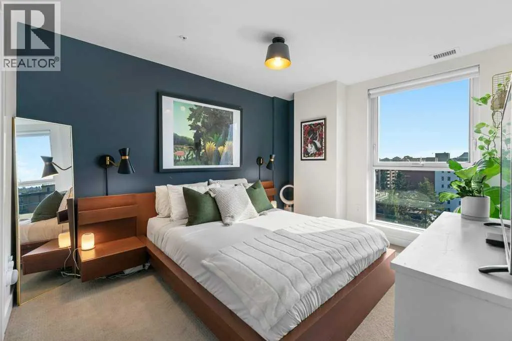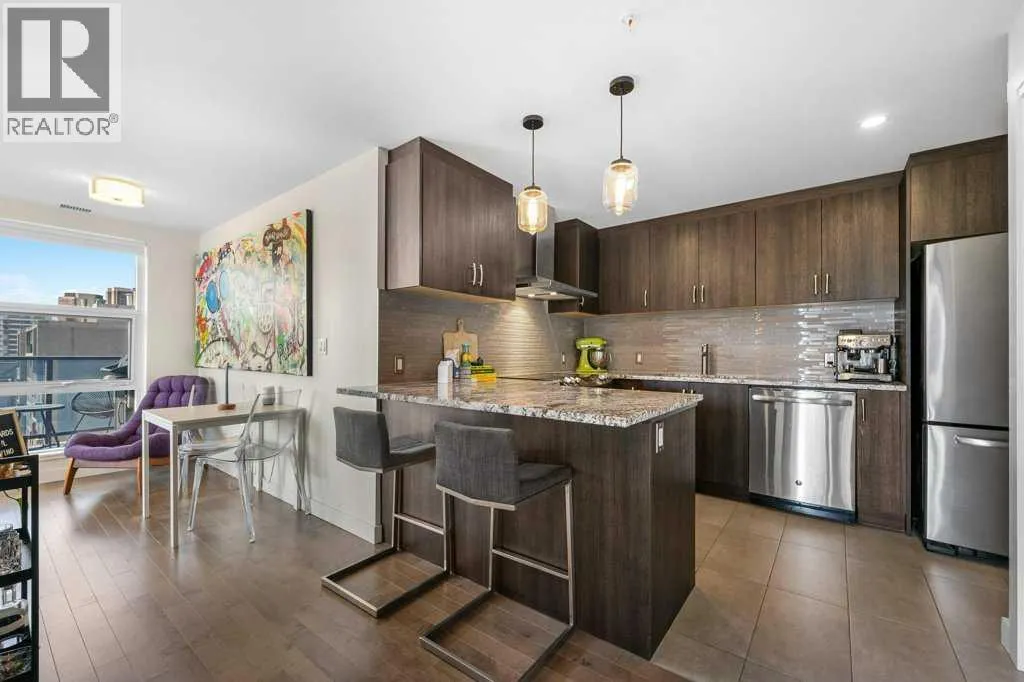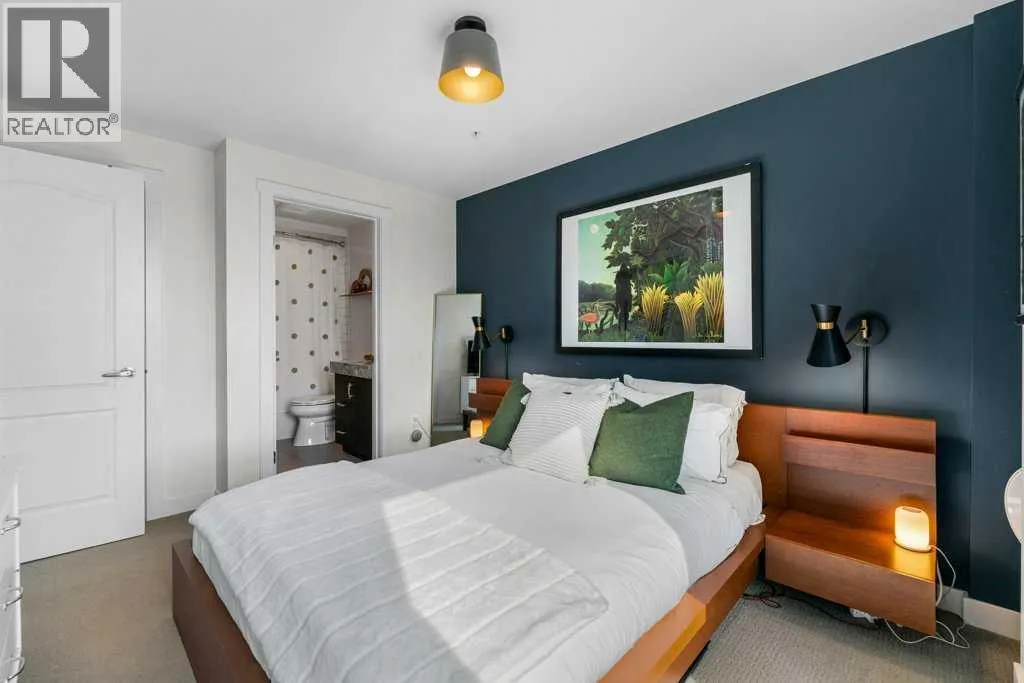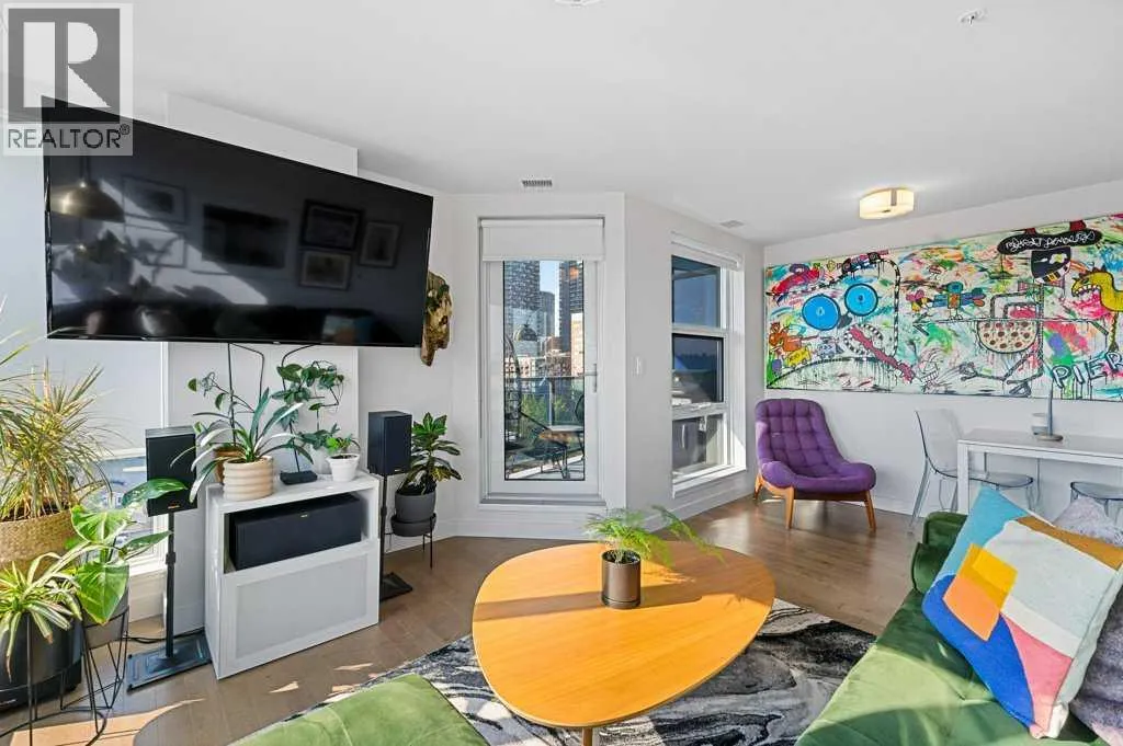 Welcome to a home where downtown living is redefined. Perfectly positioned in one of the Beltline's most coveted locations, this sophisticated corner unit offers a rare blend of city vibrancy and park-side tranquility. Built in 2015, this two-bedroom, two-bathroom residence showcases unobstructed city and stunning mountain views with a sun-drenched, southwest exposure that fills every room with natural light.Upon entry, youâre greeted by a sense of thoughtful design, from the generous storage to the secondary bath with its elegant, tiled shower and heated floors. The heart of this home is a beautifully appointed U-shaped kitchen, featuring full-sized GE stainless steel appliances, a sleek glass subway tile backsplash, and granite countertops. The oversized island offers ample seating, making it an ideal space for entertaining.The open living and dining areas are anchored by floor-to-ceiling windows and hardwood floors, creating a bright and expansive feel. A spacious primary bedroom is a true downtown rarityâeasily accommodating a king-sized bedâand includes a custom-designed walk-in closet from California Closets to maximize storage. The primary ensuite is a private retreat, complete with a large soaker tub and heated floors.Enjoy warm summer days and breathtaking sunsets from your private west-facing patio, which overlooks Central Memorial Park and includes a gas line for your barbecue. The home is complete with in-suite laundry, A/C, titled parking, and two additional storage lockers.The Park elevates living with its exceptional amenities, including a massive common patio with a community garden, a guest suite, a well-equipped gym, and visitor parking with EV charging. This prime address puts you moments from both the tourism-worthy restaurants of 1 St SW and the vibrant culture of the Beltline and 4 St SW, offering a truly walkable lifestyle. (id:27476)