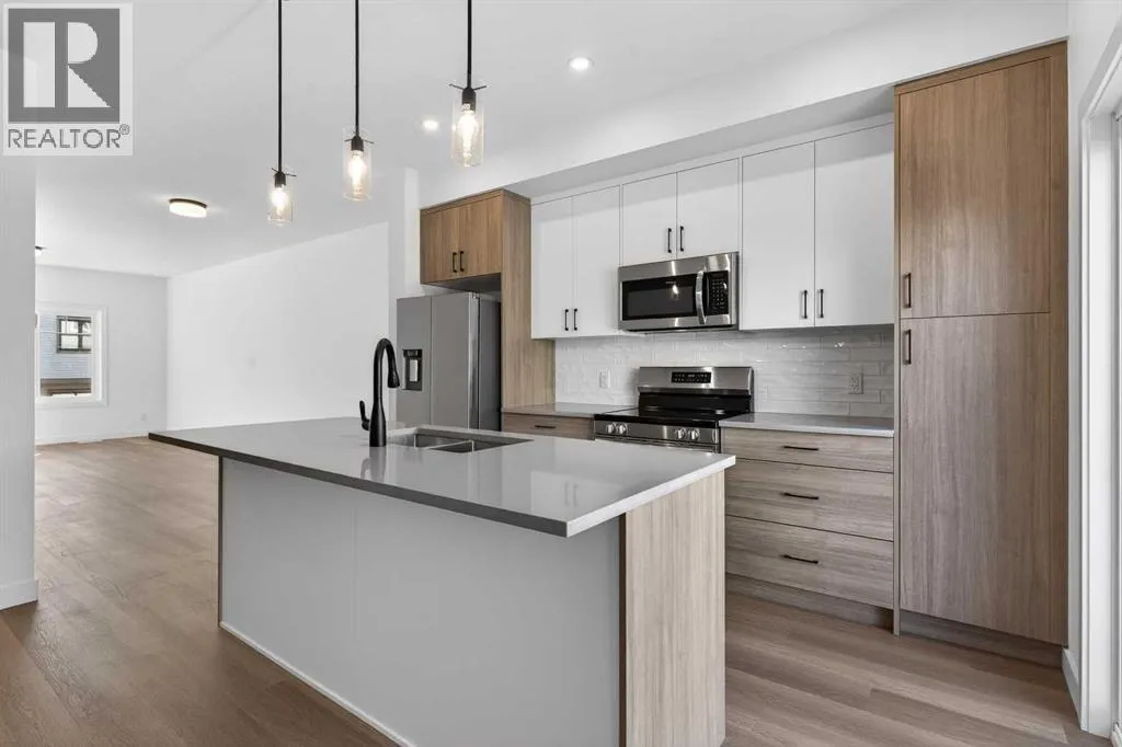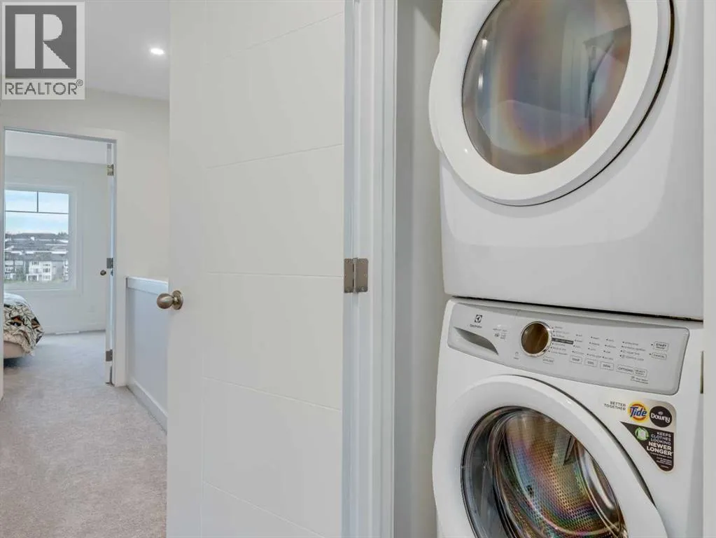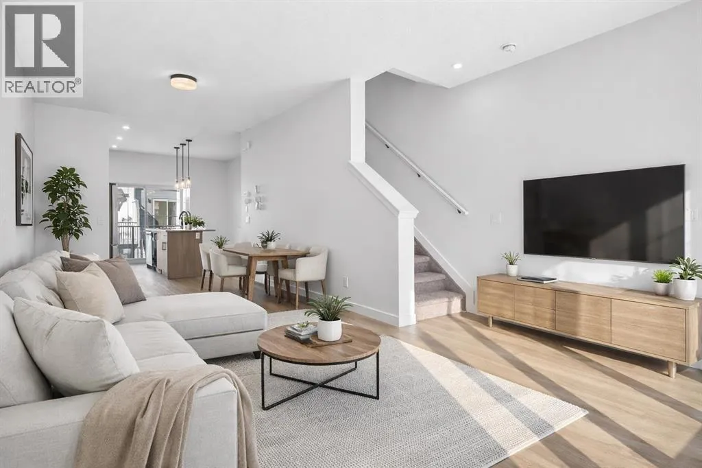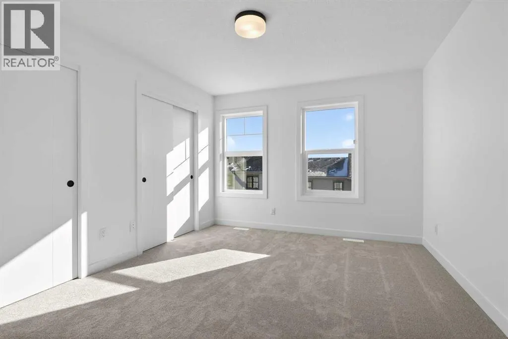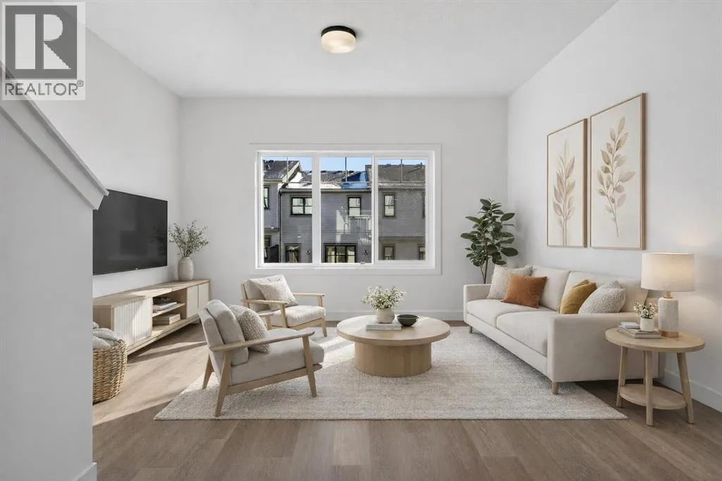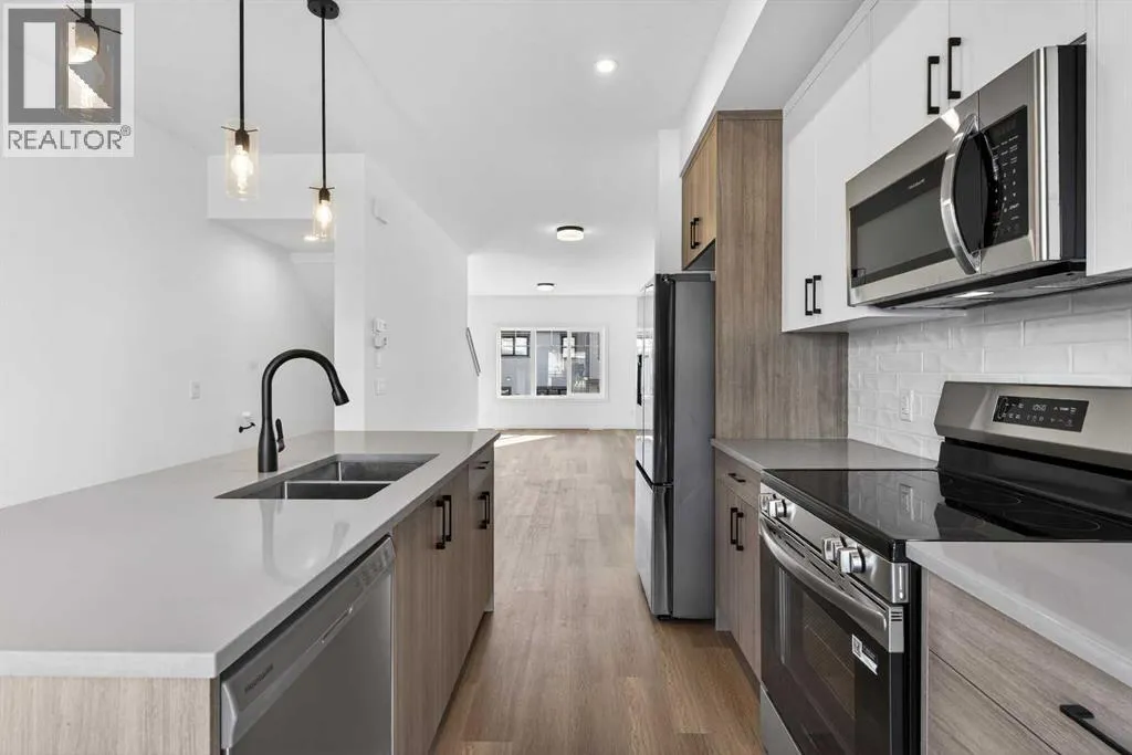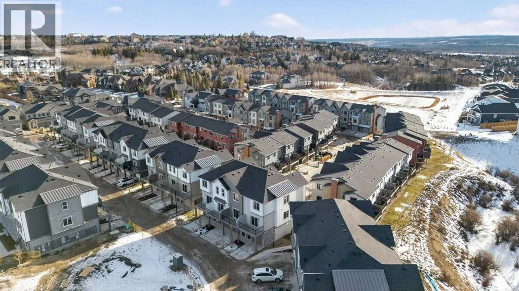 **Open House on Saturday : 1 pm-4 pm** Explore a series of stylish heritage-inspired row houses located near the center of our scenic Environment Reserve Park! This Heritage model A combines comfort and functionality, making it perfect for families and professionals. With 2 bedrooms, 2.5 bathrooms, and a flexible main-floor den, this expansive home is tailored for contemporary living. Upon entering, you will discover a bright ground-floor den or home office that includes a large window, a closet, and a handy powder room. Enjoy a beautifully landscaped front yard, a single attached garage, and additional parking in the driveway. The open-concept main floor features 9' ceilings and is bathed in natural light, creating a cozy and welcoming atmosphere for daily living or entertaining guests. The modern kitchen is equipped with quartz countertops, a breakfast bar, high-end stainless steel appliances, and a chimney-style range hood. Sliding doors lead to a full-sized balcony â perfect for unwinding or dining outside. On the upper level, there are two roomy bedrooms, including a primary suite that has a double access closet and a private ensuite with a stand-up shower and a sliding glass door. A second full 3-piece bathroom is available for the additional bedroom, which can also serve as a home office. The upper floor further includes a washer and dryer conveniently situated, a linen closet, and ample storage options throughout.This home is located in vibrant Springbank Hill and offers easy access to Aspen Landing, Rundle College, Griffith Woods, Ambrose University, restaurants, and senior care facilities.**The price includes GST. **All pictures are from show home #2225 81St SW. (id:27476)
