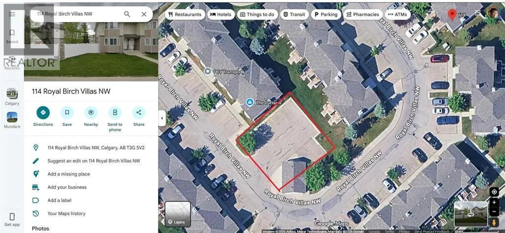 Welcome to 114 Royal Birch Villas NW, one of the best values currently available in Royal Oak. This well-maintained two-storey townhome offers 2 bedrooms, 1.5 bathrooms, and TWO assigned parking stalls directly behind the unit, providing everyday convenience and easy access.The bright, open-concept main floor features a spacious living room with a charming bay window and cozy corner gas fireplace. The functional kitchen includes ample cabinetry, pantry storage, and a dining area with access to your sunny deck â perfect for relaxing or entertaining. Mature hedges and fruit trees create added privacy and a welcoming outdoor setting.Upstairs, youâll find two generously sized bedrooms, both with walk-in closets, along with a clean and well-appointed 4-piece bathroom. The unfinished basement offers excellent storage today and strong future development potential to build additional equity.Tucked away on a quiet interior street within the complex, yet just minutes to Stoney Trail, LRT access, schools, the YMCA, grocery stores, major shopping, cafes, and restaurants, this home delivers outstanding lifestyle convenience in one of NW Calgaryâs most desirable communities.Whether youâre a first-time buyer, investor, or downsizer, opportunities like this in Royal Oak do not last. (id:27476)