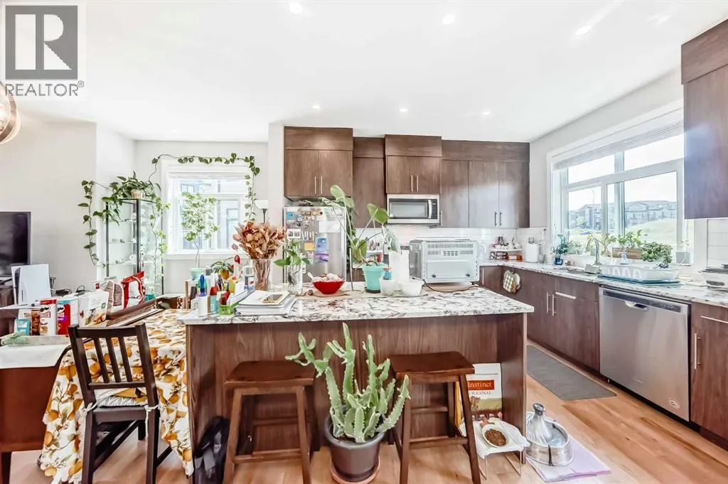 Welcome home to this bright and stylish end unit townhome in the heart of Sage Hill. With low condo fees, a playground just steps from your door. This home offers both comfort and convenience. As an end unit, you will enjoy additional side windows that fill the space with natural light, making it an absolute dream for plant lovers. Offering 1,269 square feet, this 3-bedroom, 2.5-bathroom home showcases a clean Scandinavian aesthetic with contemporary colours, quartz countertops throughout, and stainless steel Whirlpool appliances in a modern kitchen. The kitchen features full-height cabinetry, a spacious island, and a striking 4' x 16' subway tile backsplash. The open concept design flows easily to a sunny, partially fenced back patio that is perfect for relaxing or entertaining. Upstairs, the vaulted primary suite boasts beautiful windows, a large closet, and a private ensuite. Two additional bedrooms, a full main bathroom, and convenient second floor laundry complete the upper level. Built with quality and efficiency in mind, this Certified Built Green home includes a Quietwall system to minimize sound transfer, oversized triple-glazed low-E windows, a 96% high efficiency furnace, and tankless hot water. The basement is undeveloped with 571 square feet and two large windows, providing great potential for future development. A new Calgary Transit terminal with a park-and-ride facility is planned for Sage Hill as part of the Symons Valley Centre development. This convenient location will provide quick access to some of NW Calgaryâs most popular amenities, including Creekside, as well as nearby retail, shops, and services within the community. If you are looking for a bright, modern, and low maintenance home in a fantastic location, this one is ready to welcome you. (id:27476)