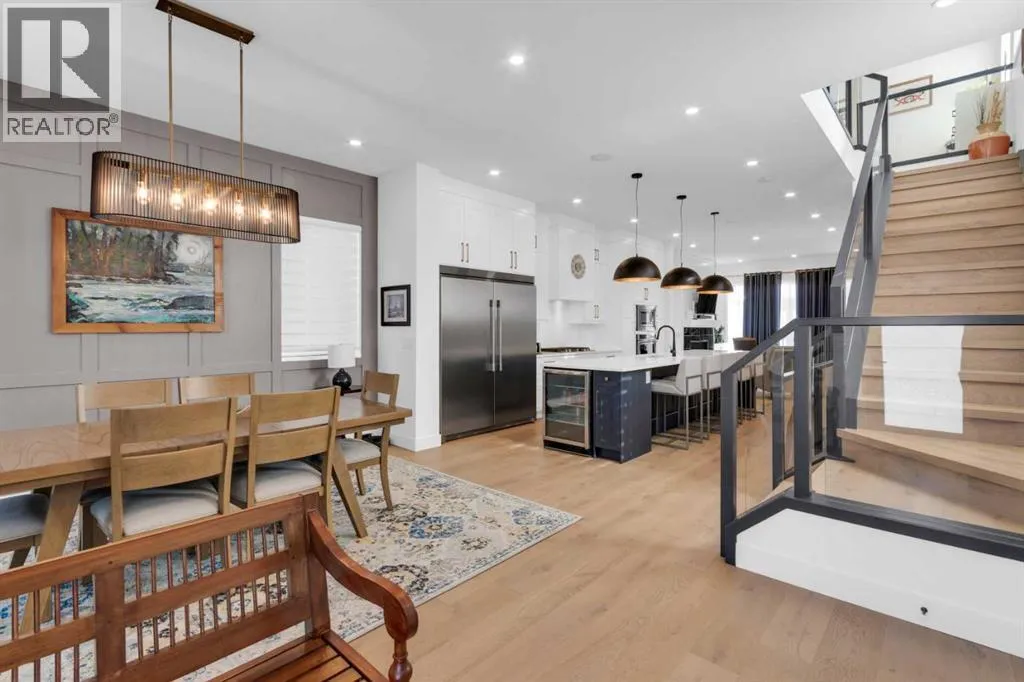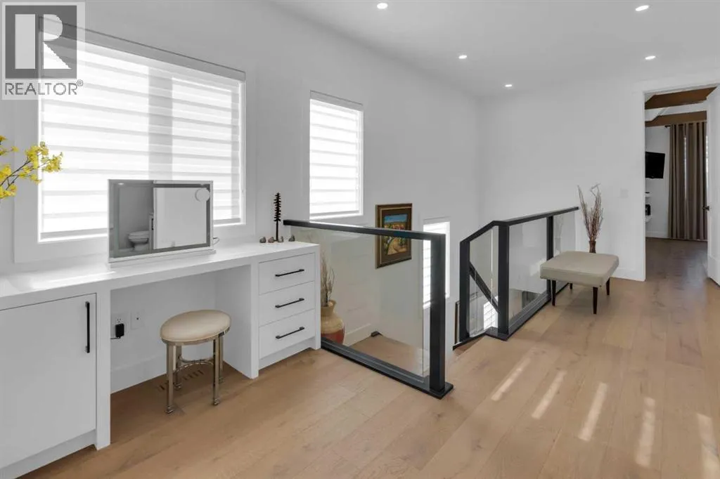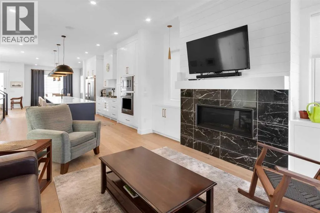 Welcome to this beautifully appointed two-storey home with a fully finished basement, in-floor heating, and air conditioning, ideally located in the highly sought-after community of Spruce Cliff close to schools, shopping, the LRT, Westbrook Mall, Calgary Public Library, Edworthy Park, and Shaganappi Golf Course offering golf and cross-country skiing, as well as an extensive pathway system connecting to Glenmore Park, Bowness Park, and downtown; this home is rich in upgrades and features a chefâs kitchen with a massive island and high-end appliance package, cozy fireplace, spacious dining room with a stylish feature wall, and an incredible primary retreat complete with a spa-like 5-piece ensuite offering a steam shower, heated floors, and walk-in closet, along with wide-plank hardwood and marble flooring, built-ins in every closet, custom window coverings, a functional mudroom, and abundant storage throughout, while the upper level offers an open bonus space ideal for a TV area, office, or study and the lower level includes a glass-walled soundproof room perfect for a music studio or home gym; the professionally landscaped and fully fenced exterior boasts mature trees, a private backyard with aggregate patio and rear landing/deck, security bars on lower windows, and a double detached garage that is drywalled and insulated, completing this exceptional homeâcall today for your private viewing. (id:27476)