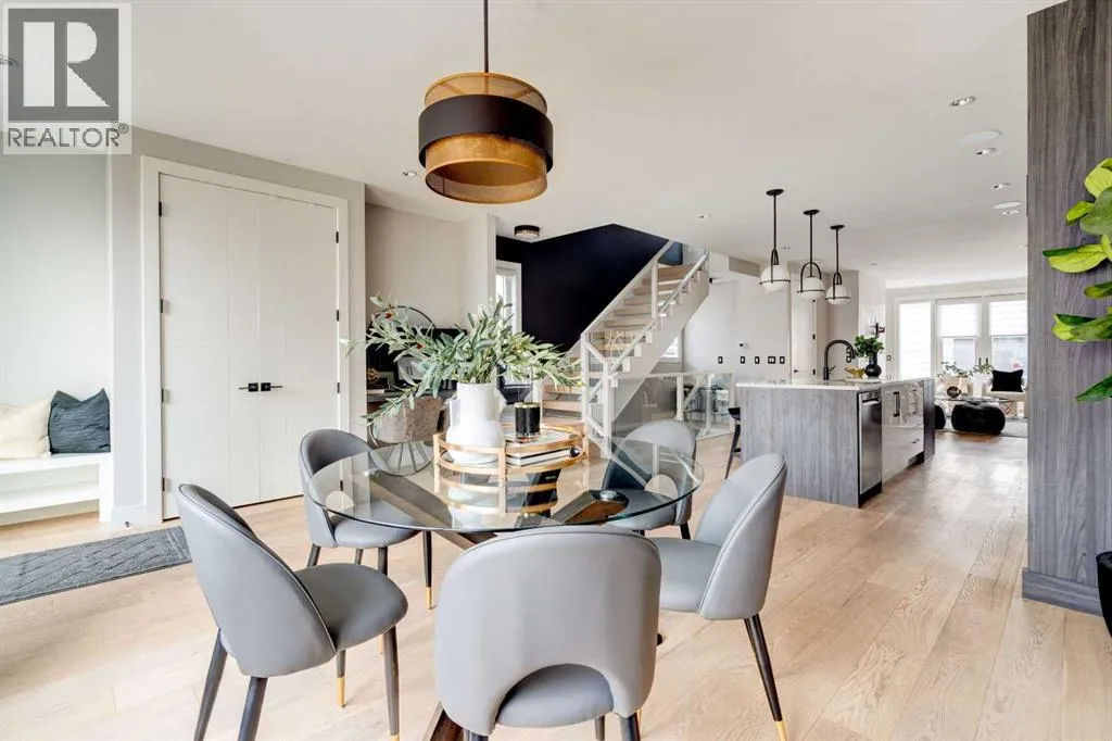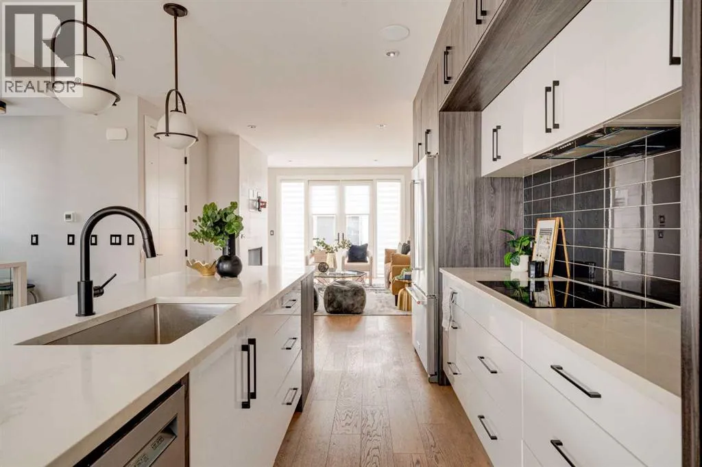 Just steps from vibrant Kensington and offering over 3,800 sq ft of custom finished living space, this exceptional 3-storey home combines luxury, functionality and an unbeatable inner-city location. Designed for comfortable everyday living and effortless entertaining, the home features 5 bedrooms, 5 bathrooms with heated floors, two steam showers, hardwood flooring throughout, two laundry rooms, two fireplaces, a convenient ELEVATOR and a striking open riser staircase.The bright main floor is ideal for hosting, centred around a chef-inspired kitchen with quartz countertops, induction cooktop, beverage fridge, extended cabinetry and a large island with seating. The spacious dining area and elegant living room with fireplace open seamlessly to the backyard, while a stylish powder room and practical mudroom complete the level.Upstairs offers two generous secondary bedrooms, a full bathroom, laundry and a beautifully appointed primary suite with walk-in closet and spa-style ensuite. The entire third floor functions as a private retreat, featuring a second primary bedroom with six-piece ensuite, walk-in closet, sunset balcony, laundry and a versatile lounge or office space with wet bar.The fully developed lower level adds excellent flexibility with a cozy family room and fireplace, wet bar, LARGE fifth bedroom and full bathroom, ideal for guests or teens.Notable upgrades include a double insulated garage with front and rear access, air conditioning, built-in closet organizers, custom blinds, built-in speakers, security system, 200-amp service and a low maintenance backyard. Exceptional access to schools, downtown, Bow River pathways, Foothills Hospital and the University of Calgary adds to the appeal of this remarkable property. (id:27476)