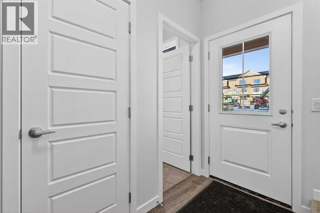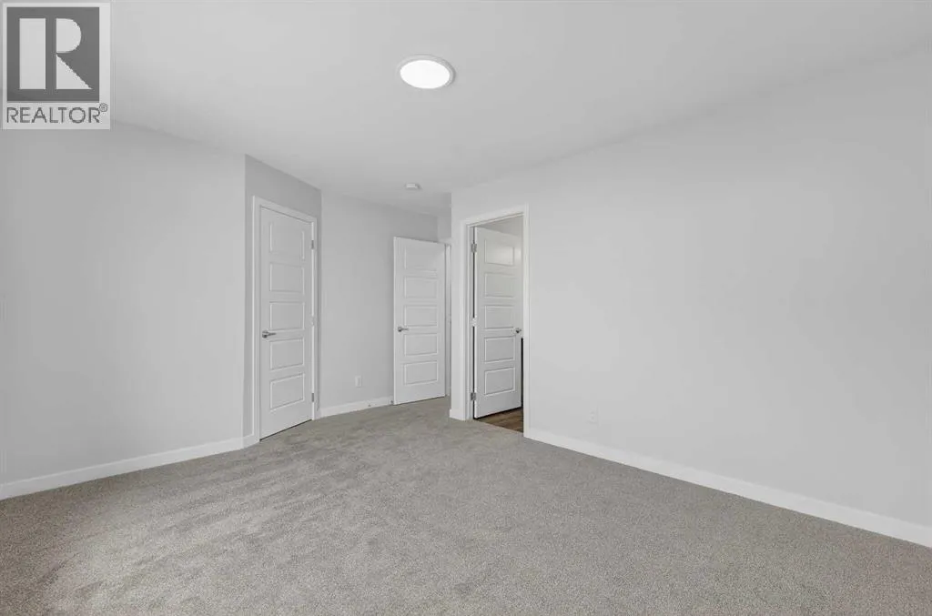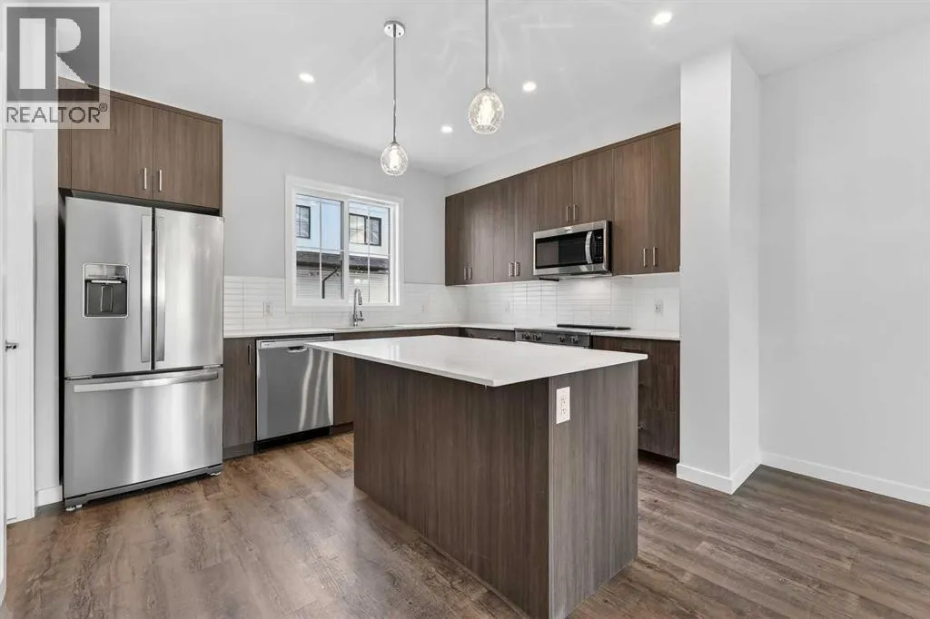 HOME IS UNDER CONSTRUCTION. StreetSide proudly presents this exceptionally popular interior-unit townhome, where expansive living areas meet modern comforts and sophisticated finishes. The thoughtfully designed floorplan features three spacious upper-level bedrooms and two and a half well appointed bathrooms, complemented by a versatile lower-level den perfect for a home office or quiet retreat. The heart of the home is an inviting open-concept main floor, anchored by a large gourmet kitchen featuring a functional breakfast bar for casual dining. This bright living space transitions seamlessly to a private balcony, offering a perfect setting for outdoor relaxation. The interior showcases high end craftsmanship, including modern dark slab-style cabinetry with a full bank of drawers for maximum storage. The kitchen is further elevated by polished white quartz countertops and a full suite of premium stainless steel appliances. Durable luxury vinyl flooring runs throughout the primary living areas, while the stairs and upper level are finished with plush carpet over an 8lb underlay for superior comfort. Additional conveniences include an attached double car garage and a lifestyle defined by maintenance free living and professionally maintained landscaping. Located in the vibrant community of Hotchkiss, where nature takes centre stage by boasting 80+ combined acres of green space and wetlands, providing a scenic backdrop for modern living. Enjoy proximity to Setonâs vibrant retail district, world-class healthcare, and easy highway access. As the community grows to include its own school and daycare, Hotchkiss remains the premier choice for those seeking a balanced, well-connected lifestyle. Please note that photos used are of another unit as this home is still being built. (id:27476)