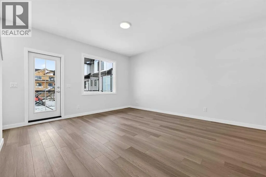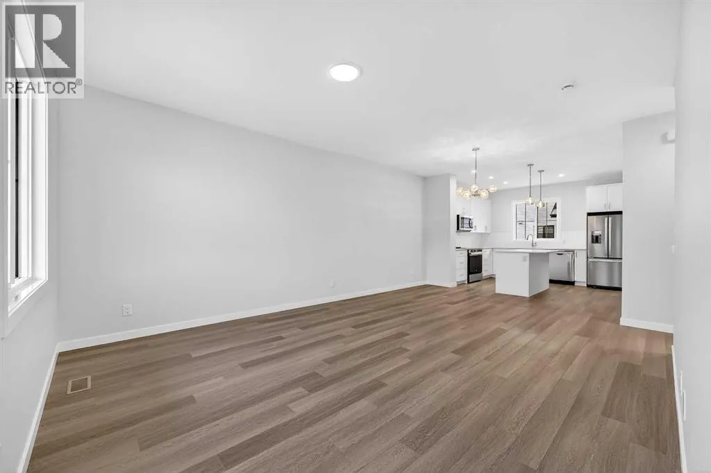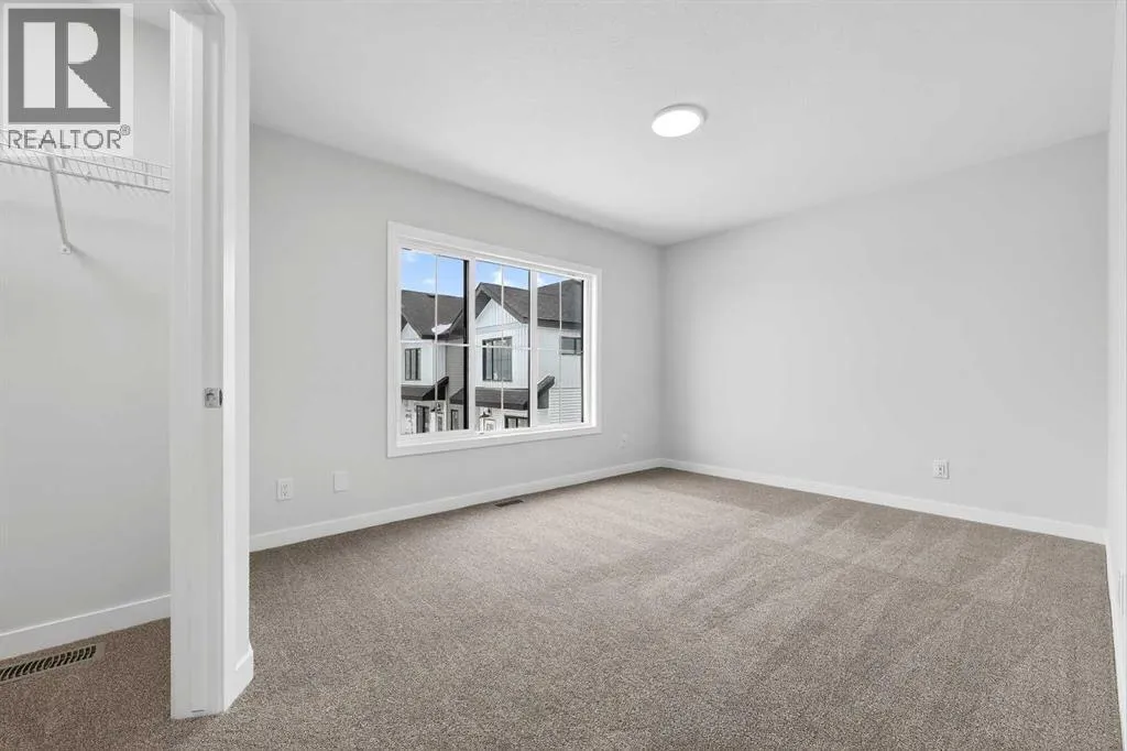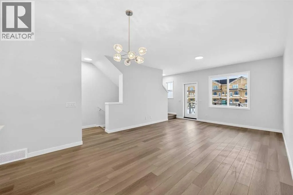 HOME IS UNDER CONSTRUCTION. StreetSide proudly presents this exceptionally popular interior-unit townhome, where expansive living areas meet modern comforts and sophisticated finishes. The thoughtfully designed floorplan features three spacious upper-level bedrooms and two and a half well appointed bathrooms, complemented by a versatile lower-level den perfect for a home office or quiet retreat. The heart of the home is an inviting open-concept main floor, anchored by a large gourmet kitchen featuring a functional breakfast bar for casual dining. This bright living space transitions seamlessly to a private balcony, offering a perfect setting for outdoor relaxation. The interior showcases high end craftsmanship, including modern white slab-style cabinetry with a full bank of drawers for maximum storage. The kitchen is further elevated by polished white quartz countertops and a full suite of premium stainless steel appliances. Durable luxury vinyl flooring runs throughout the primary living areas, while the stairs and upper level are finished with plush carpet over an 8lb underlay for superior comfort. This residence is a water meter unit, allowing for precise and efficient utility management. Additional conveniences include an attached double car garage and a lifestyle defined by maintenance free living and professionally maintained landscaping. Located in the vibrant community of Hotchkiss, where nature takes centre stage by boasting 80+ combined acres of green space and wetlands, providing a scenic backdrop for modern living. Enjoy proximity to Setonâs vibrant retail district, world-class healthcare, and easy highway access. As the community grows to include its own school and daycare, Hotchkiss remains the premier choice for those seeking a balanced, well-connected lifestyle. Please note that photos used are of another unit as this home is still being built. (id:27476)