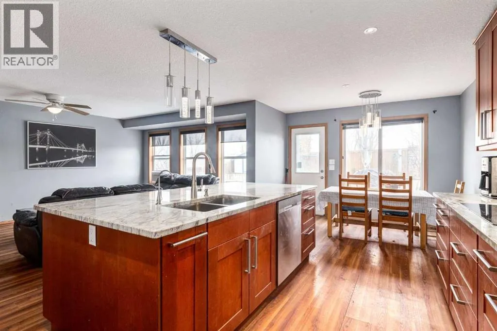 Located on a quiet street in Panorama Hills, this 2-storey home offers a functional layout with five bedrooms plus an upper office and a fully finished basement with a side entrance. The main floor stands out with a larger kitchen than many homes in this price range, featuring an induction cooktop, plenty of counter space, a pantry, and a dining area that opens directly to the backyard deck. The living area is open and comfortable with a fireplace, and the main floor also includes laundry and a half bathroom. Upstairs, the primary bedroom features a walk-in closet and 4-piece ensuite, along with three additional bedrooms, a full bathroom, and a dedicated office for work or study. The fully finished basement adds a large rec room, a fifth bedroom, a full bathroom, storage, and a convenient separate side entrance. Close to walking paths, schools, shopping, parks, and commuter routes, this home offers plenty of space, flexibility, and a layout that gives the next owner room to update, personalize, and build value over time. Come see the potential for yourself. (id:27476)