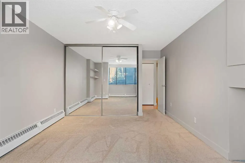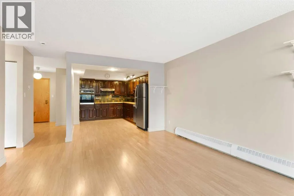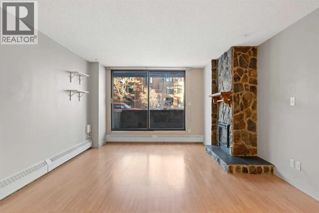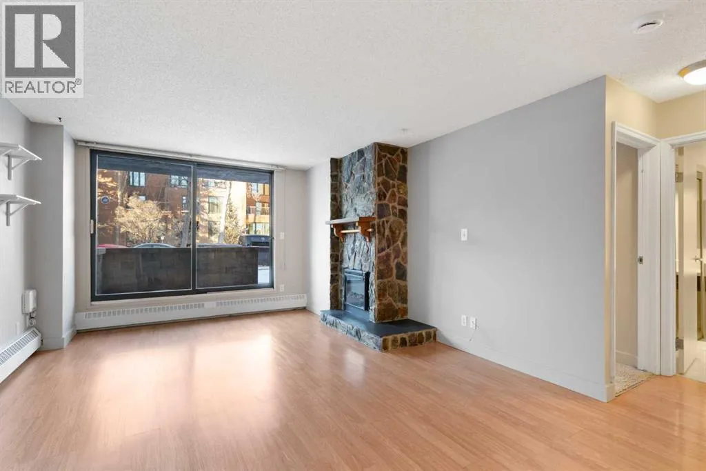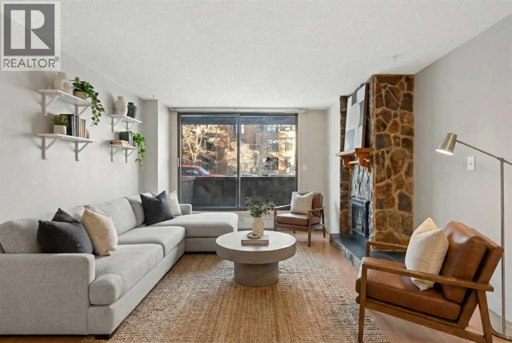 Larger than your typical one-bedroom, and it shows. Welcome to this spacious 783 sqft condo in the heart of Crescent Heights, offering a rare combination of size, comfort, and unbeatable inner-city walkability. From the moment you step inside, youâll appreciate the open-concept layout and natural light that fills the living space. The living room is anchored by a feature fireplace with an electric insert, creating a warm focal point, and opens directly onto your oversized private patio. Framed by a stone privacy wall and tucked along an exceptionally quiet street, this outdoor space feels more like an extension of your living room, with plenty of room for a BBQ, full patio furniture, and morning coffee. The kitchen is both functional and inviting, complete with granite countertops, generous cabinetry, and mostly updated appliances. (The wall oven isnât new, but itâs reliable, durable and works beautifully.) The layout flows seamlessly into the dining area, making the space ideal for entertaining or everyday comfort. The bedroom is truly oversized, offering enough room for a king-sized bed plus a desk, reading nook, or sitting area by the windows. This room is also equipped with a door to the patio. Even better? The windows are scheduled to be replaced in the coming months, adding additional value and efficiency for the future owner. A cleverly designed walk-through closet connects the bedroom to the spacious bathroom, offering convenient dual access and thoughtful functionality. Thereâs also room in the bathroom to personalize or upgrade over time if desired. Additional highlights include in-suite laundry with extra storage, modern laminate flooring, and an underground assigned parking stall with the ability to add a storage cage. And letâs talk about the main-floor advantage, no waiting for elevators, easy grocery drop-offs, simple pet access, and a seamless indoor-outdoor lifestyle. For many buyers, this is a major win. It is also important to note that the build ing is extremely secure and that the unit is soundproof - no noise transfer from other units! All of this just steps from downtown, the Bow River pathways, restaurants, cafés, and shops, in one of Calgaryâs most desirable inner-city communities. This isnât just a one-bedroom. Itâs a spacious, smart inner-city home. (id:27476)