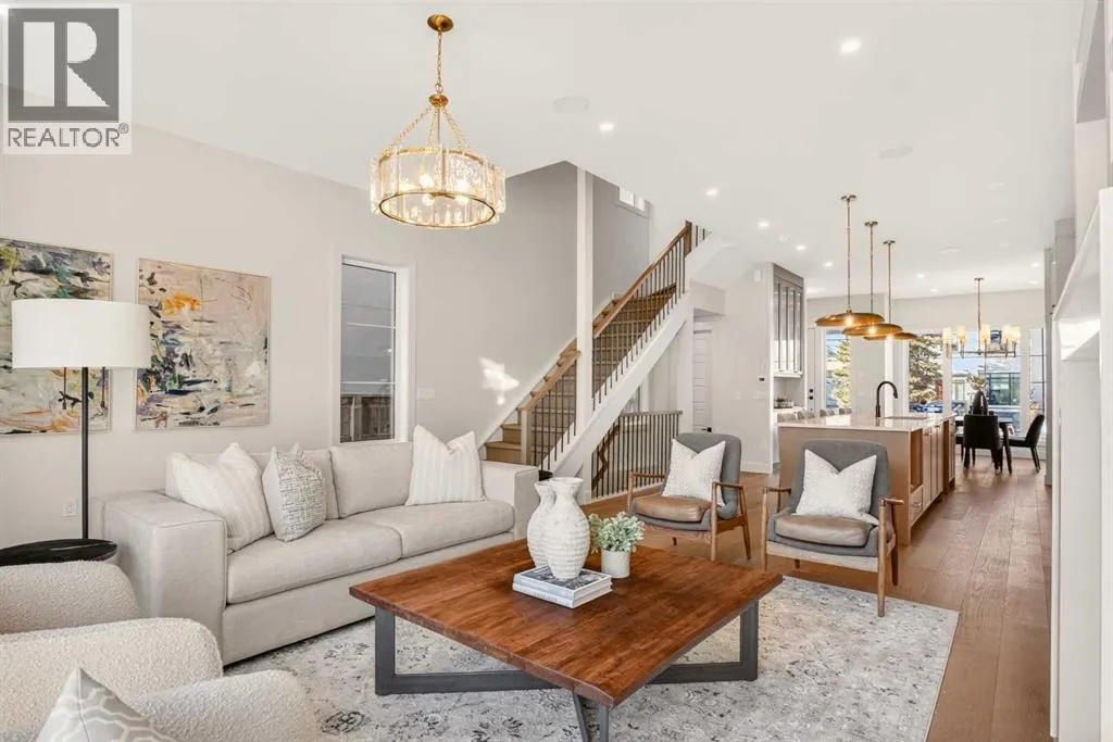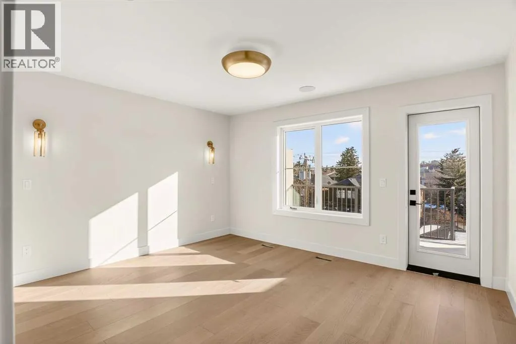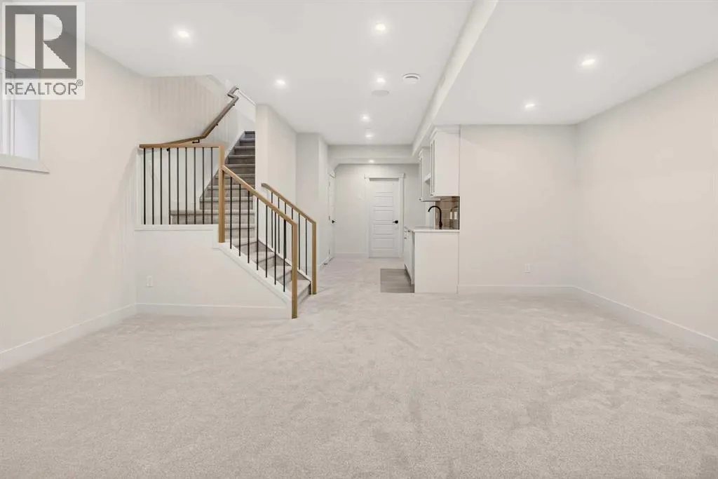 Experience refined inner-city living in WEST HILLHURST with this newly built 3-storey semi-detached infill offering over 3,500 sqft of professionally developed space. Positioned in a quiet cul-de-sac with a sunny south-facing backyard, this home delivers privacy, natural light, and thoughtful design across all 4 levels. A spacious dining area welcomes gatherings of any size, seamlessly connecting to a chef-inspired kitchen anchored by a large island designed for everyday living and entertaining. FULL HEIGHT CABINETRY maximizes storage while a dedicated wall pantry keeps essentials organized and out of sight. HIGH-END APPLIANCES including a gas stove support precision cooking, and carefully curated finishes elevate both style and function. A warm living area centers around a GAS FIREPLACE FRAMED BY BUILT-IN SHELVING and cabinetry, creating a natural focal point for relaxing evenings. Patio sliders extend living outdoors to the fully fenced SOUTH BACKYARD and ground-level patio, offering effortless indoor-outdoor flow. An enclosed mudroom provides practical storage for busy households, while a tucked-away powder room adds convenience without interrupting the main living space. Upper levels are designed for flexibility and comfort, featuring 4 bedrooms above grade including 2 primary retreats. A secondary primary suite on the 2nd level showcases wall paneling detail, a large walk-in closet, and a 5pc ensuite with in-floor heating and a dual vanity for everyday ease. Top-floor living is dedicated to a PRIVATE PRIMARY SANCTUARY complete with sitting area, dry bar for morning coffee or evening wind-down, balcony access, expansive walk-in closet, and a luxurious 5pc ensuite with dual vanity, freestanding tub, and glass shower. Access to an additional balcony enhances connection to the outdoors and captures elevated views. A FULLY DEVELOPED BASEMENT adds valuable living space with a large recreation room, wet bar for entertaining, 5th bedroom, 4pc bath, and generous storage options. UPGRADES include ROUGH-INS FOR AC, HYDRONIC IN-FLOOR HEATING in the basement, AND STEAM SHOWER, ALONG WITH CEILING SPEAKERS AND A DUAL-ZONE FURNACE system that separates the basement and main floor from the 2nd and 3rd levels for tailored comfort and efficiency. DOUBLE DETACHED GARAGE provides secure parking and additional storage flexibility. Located steps from the Bow River pathway system, parks, and playgrounds, and minutes to Kensingtonâs shops and dining, this address also offers quick access to downtown, Foothills Medical Centre, Alberta Childrenâs Hospital, and top-rated area schools including Queen Elizabeth School and Hillhurst School. Thoughtful layout, elevated design, and premium UPGRADES come together in one of Calgaryâs most desirable neighborhoods. (id:27476)