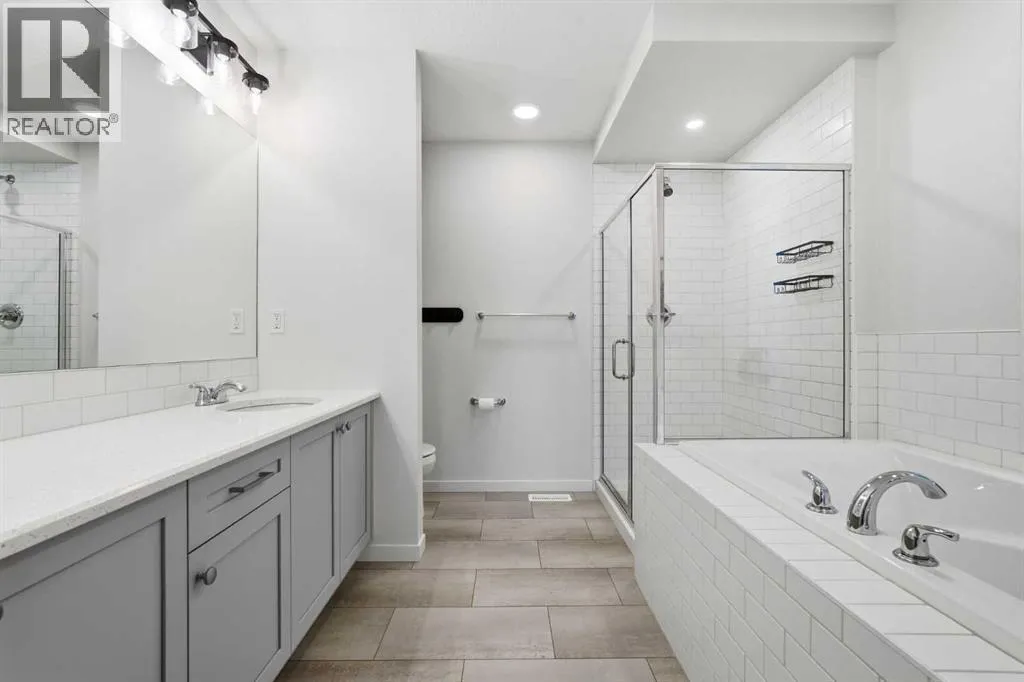 **OPEN HOUSE: Saturday and Sunday, March 7 & 8th from 12-2pm** Welcome to life at a higher level in Alpine Park.Located in one of Calgaryâs most elevated new communities with quick access to Stoney Trail, this rare THREE-STOREY HOME offers over 2700SF OF FINISHED LIVING SPACE, including a FULLY DEVELOPED BASEMENT and a PRIVATE ROOFTOP PATIO.The main floor features LUXURY VINYL PLANK flooring, STONE COUNTERTOPS, upgraded appliances including a GAS RANGE, and a seamless layout designed for both daily living and entertaining. Upstairs, the spacious primary retreat includes a FIVE-PIECE ENSUITE with DOUBLE VANITIES, a glass shower, and a separate SOAKER TUB. Two additional bedrooms, a full bathroom and thoughtfully placed laundry room complete the second level.The bright and airy THIRD-STOREY BONUS ROOM opens onto a PRIVATE ROOFTOP PATIO - a versatile space perfect for summer evenings, morning coffee, or entertaining above it all.The FULLY DEVELOPED BASEMENT adds a fourth bedroom, full bathroom, and flexible living space ideal for guests, a home office, or a media area.Outside, enjoy a fully landscaped and FENCED YARD with dual gates for convenience, concrete patio, and DOUBLE DETACHED GARAGE - a clean, low maintenance set-up that's ready to enjoy from day one.Additional upgrades like GEMSTONE ARCHITECTURAL LIGHTING, CENTRAL AIR CONDITIONING, and a RADON MITIGATION SYSTEM offer both comfort and peace of mind.This is not just another new-build, itâs a thoughtfully upgraded, move-in ready home with rare vertical living in one of Calgaryâs most exciting new communities. (id:27476)
