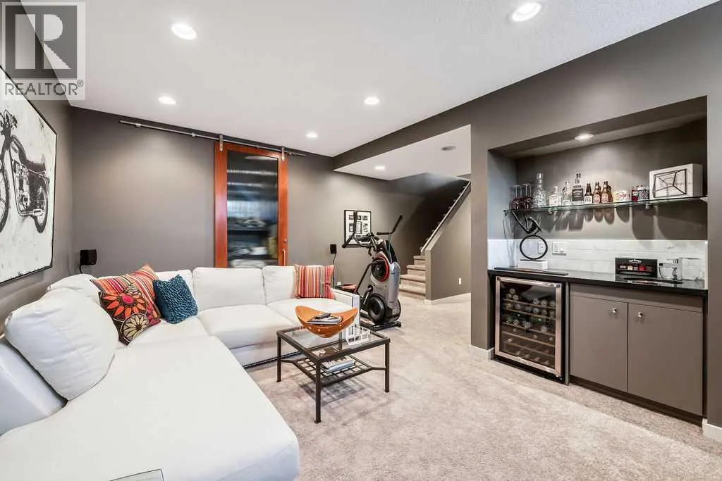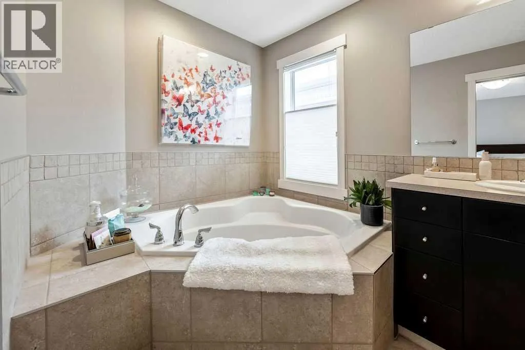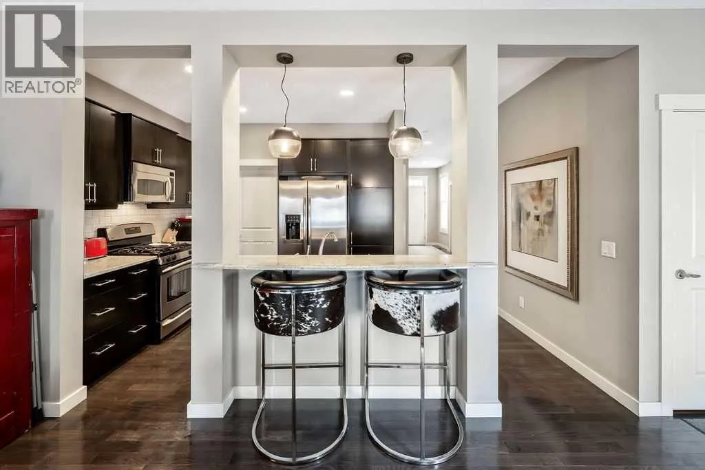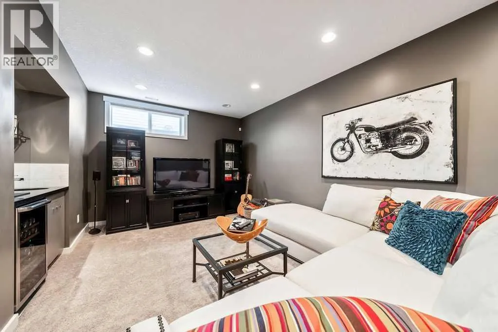 Discover this beautifully maintained 2-storey, 4-bedroom home on a quiet, tree-lined street, offering over 2,700 sq. ft. of living space. Built in 2004 by Homes by Avi, this property stands out with its charming west-facing backyard, classic full-width front veranda, stone and James Hardie exterior, and thoughtfully landscaped trees and flower beds.Step inside to soaring 9' ceilings, elegant hardwood floors, and a flexible main-floor layout that adapts to your lifestyle. The front room can serve as a home office, formal dining space, or relaxed sitting area. Just beyond the spacious powder room, the stylish kitchen features stainless steel appliances, quartz countertops, pantry cabinetry, and designer lighting over the raised breakfast bar â a perfect hub for hosting and gathering.A separate laundry area with additional pantry storage sits just off the kitchen. The rear living room is bright and inviting, with large windows overlooking the backyard and a striking gas fireplace. Use it as a cozy family room or an elegant dining space â the versatility is yours. The back entry includes a generous closet and access to the double detached garage, plus a large ground-level patio area with gas line for barbecuing and a deep, grassy yard ideal for kids and pets.Upstairs, the primary suite is a true retreat with space for king-sized furniture, a walk-in closet, and a luxurious ensuite complete with a deep soaker tub, separate shower, and private water closet. Two additional bedrooms are bright, well-sized, and located next to a 4-piece bathroom.The fully finished basement expands your living space with a rec room perfect for movies, games, or a home gym, along with a 4th bedroom, full bathroom, and three substantial storage areas.Perfectly positioned for lifestyle and convenience, this home is walking distance to top-rated schools â Lycée Louis-Pasteur and Masters Academy â plus all the trendy shops, cafés, and award-winning restaurants of Marda Loop. A tranquil pathw ay leads directly to Safeway and Starbucks, emphasizing the highly walkable, pedestrian-friendly nature of this exceptional neighbourhood. Additional features include central A/C and a new hot water tank (2022). Available for quick possession. (id:27476)