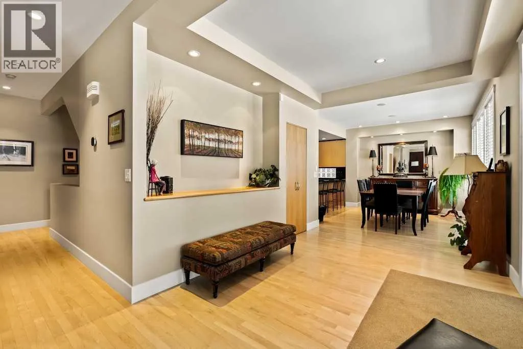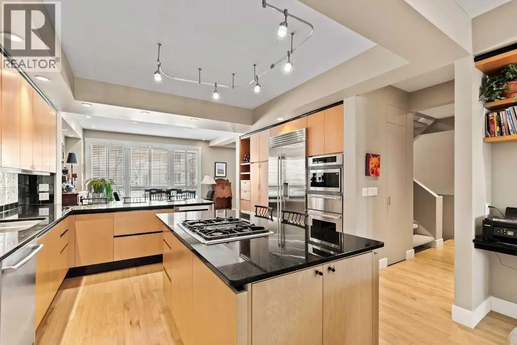 From the front veranda, step inside to a space defined by quiet sophistication, clean contemporary lines, warm maple hardwood, and an abundance of natural light filtering through expansive windows in this fantastic bungalow style living property. From the front entry, the home opens into the living room where a wood-burning fireplace creates a striking focal point, complemented by upgraded built-in speakers and a cleverly concealed âpeek-a-booâ TV door that keeps the space polished when youâre entertaining. Just beyond, the dining room is perfectly positioned for hosted evenings and holiday gatherings, flowing seamlessly into the beautifully updated kitchen, designed for both style and function with generous cabinetry, ample prep space, and a new Sub-Zero fridge anchoring the stainless-steel appliance package. Continue through to the family room, an inviting space to unwind with its own fireplace and an effortless connection outdoors through garden doors leading to the covered deck with heat lamps, ideal for outdoor dinners, morning coffee, and evenings spent under the lush canopy of mature trees and the stars. Tucked nearby, the den offers a cozy, elevated space, perfect as a reading room, home office, or intimate sitting area. The primary bedroom is a true sanctuary, complete with a recently renovated ensuite featuring a luxurious steam shower. A second main-floor bedroom offers excellent flexibility for guests or family, paired with the convenience of additional bathroom access that makes everyday living feel effortless. Upstairs, loft unfolds with peaked ceilings and dormer windows, creating a private bedroom suite with a full bath, an ideal space for teens, visitors, creative work, or a quiet escape that feels entirely its own. Downstairs, the basement expands your lifestyle options with a spacious family/rec room anchored by a gas fireplace, plus a Murphy bed setup for comfortable overnight guests. A large storage room keeps everything organized and out of sig ht. There is a total of 4,145 sqft of space across the three levels. A few standout upgrades from the homeâs extensive list include a new high-efficiency furnace, a new A/C unit, a new hot water tank, a soft water system, insulation (2024), new loft window glass, and freshly painted fencing, all delivering modern comfort, energy efficiency, and true peace of mind. And with the rare luxury of a triple attached garage in this location, this is a truly special, high-end Rosedale home, beautifully curated, exceptionally maintained, and designed to be lived in with ease. (id:27476)