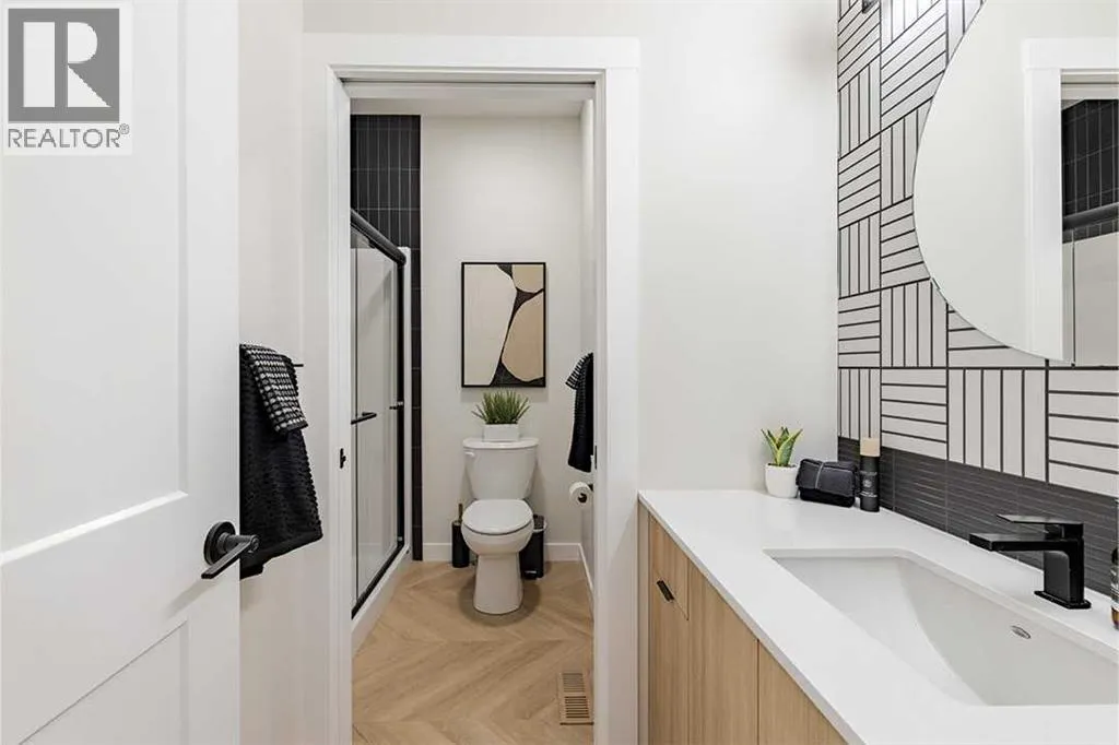 Welcome to the Katalina by Shane Homes, a pre construction home with a tentative 10-12 month possession timeframe. This front-drive home with a double attached garage is located in the community of Rose Ranch. The main floor features a full bedroom and full bathroom with shower, ideal for guests. The open-concept layout includes a living room with electric fireplace, dining nook, and a kitchen with island seating and a walk-in pantry. Upstairs offers three bedrooms, including the primary bedroom with dual vanity ensuite, soaker tub, separate shower, and walk-in closet. All upstairs bedrooms include walk-in closets, along with a full laundry room and an additional full bathroom. The undeveloped basement is ready for potential future development and includes rough-ins. This home can be customized to suit buyer needs. Photos are illustrative and for representative purposes only. (id:27476)