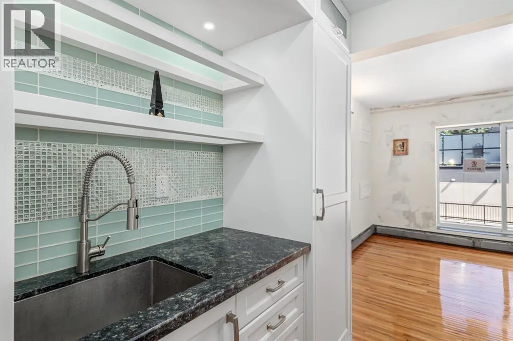Stunning upgraded condo in the heart of Mission with views of the Elbow River! This one bedroom condo has been completely renovated and interior designed with luxury finishes and features refinished oak hardwood flooring, gorgeous marble tiled walls in the entry, beautiful new custom galley kitchen with leathered granite counter tops, built-in appliance package and tiled backsplash, absolutely incredible bathroom with floor to ceiling marble tile, new washing machine, an open bedroom and an amazing view of the Elbow River from the balcony. Assigned outdoor parking stall and just steps to the river paths and all the great amenities Mission has to offer! Truly a one of a kind unit in a fantastic location. Call today for your private showing! (id:27476)