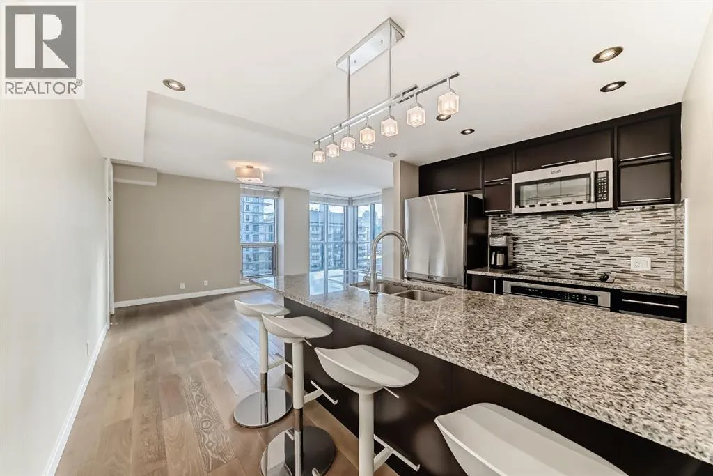 Welcome to this 2 beds, 2 baths condo perfectly located in the vibrant Kensington district. A large corner unit with a well-planned layout(facing to South and East). The living room, dining room, and kitchen area are flooded with natural light, the large windows also provide an amazing view of the downtown skyline. The kitchen boasts granite countertops and stainless steel appliances. The master bedroom is your personal haven, complete with its own three-piece ensuite bathroom and walk-in closet. The second bedroom is spacious and perfect for guests & family. Kitchen with stainless steel appliances, & granite counter tops, laundry in the unit, engineered hardwood floors. The building is secured and well-maintained, featuring titled underground heated parking, secure entry, storage and additional guest parkingâeverything you need for peace of mind and day-to-day convenience. Walking distance to the Bow River pathways, Riley Park, and endless options for restaurants, bars, grocery shops and boutique shops in Kensington. With easy access to SAIT, the University of Calgary, downtown, and several nearby parks and playgrounds, this is the ideal home for professionals, students, or young families who want to live in the heart of it all. Donât miss this rare opportunity! (id:27476)