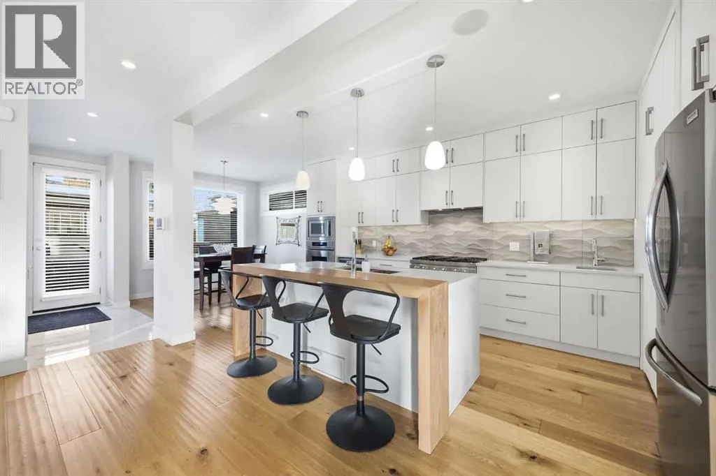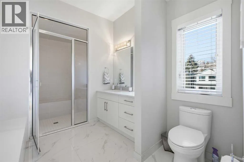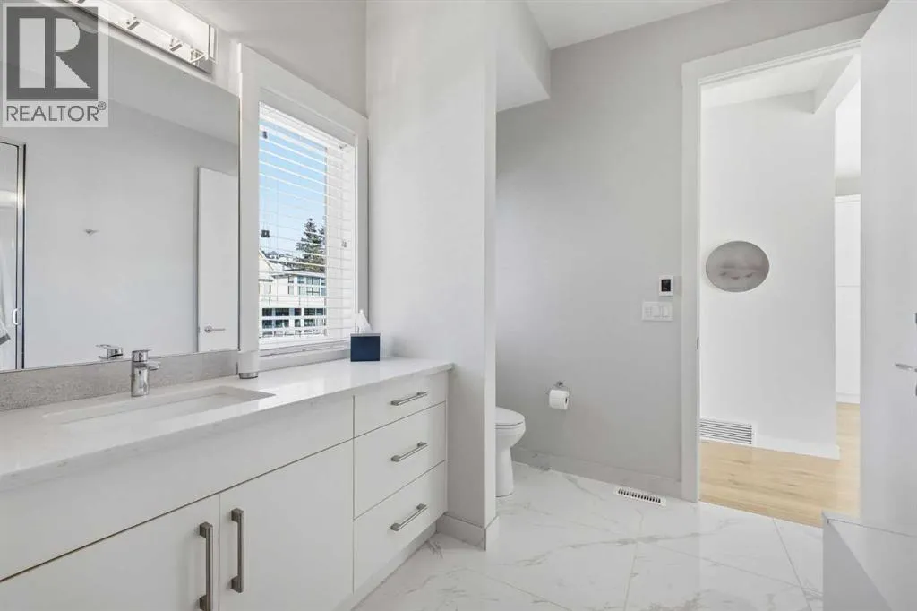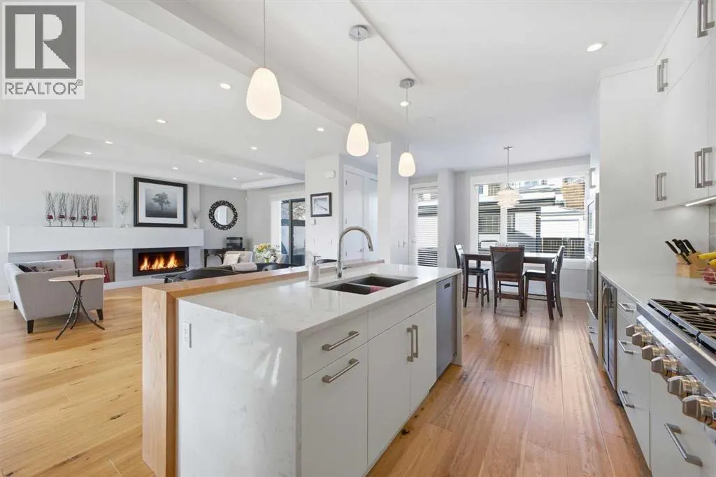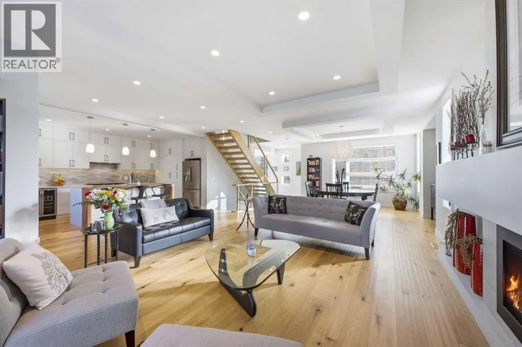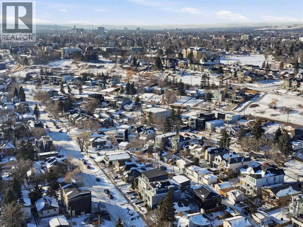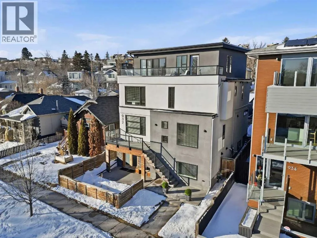 OPEN HOUSE SATURDAY, MARCH 14TH FROM NOON - 2 PM & SUNDAY, MARCH 15TH FROM 2-4 PM. PANORAMIC CITY AND DOWNTOWN VIEWS define this contemporary 4 bedroom residence in historic Bridgeland, offering over 4,600 sq ft of beautifully designed living space, including a fully developed walk out basement. Thoughtfully crafted for both everyday comfort and elevated entertaining, the home blends modern finishes with exceptional functionality. The open, airy main level features hardwood floors and soaring ceilings. A spacious dining area easily accommodates large gatherings, while the living roomâanchored by a remote controlled feature fireplaceâcreates a warm, inviting focal point. The kitchen is tastefully appointed with quartz countertops, an island with eating bar, abundant cabinetry including a walk in pantry, stainless steel appliances, and a bright breakfast nook. A mudroom and 2 piece powder room complete this level. The second floor hosts three well proportioned bedrooms, a 5 piece bath, and a laundry room equipped with a sink and storage. The private primary retreat enjoys its own balcony, a generous walk in closet, and a secluded 5 piece ensuite featuring in-floor heat, dual sinks, a relaxing soaker tub, and an oversized shower. The third level is an exceptional entertaining space, offering a large loft with in-floor heat, wet bar and access to a spectacular rooftop patio showcasing sweeping skyline views. A fourth bedroom and a 3 piece bath with rejuvenating steam shower complete this upper level. The fully developed walk out basement, warmed with in floor heat, includes a spacious recreation/media room with wet bar, a dedicated office, and a 3 piece bath. Additional highlights include new hardwood flooring in the loft and bedrooms, built in speakers, a south facing front patio, and a private backyard with deck, swim spa, and access to the heated triple detached garage. This exceptional property enjoys an enviable location close to Bridgelandâs charming shops, cafés, and restaurants, the Calgary Zoo, Bow River pathways, schools, public transit, and offers effortless access to the downtown core. (id:27476)