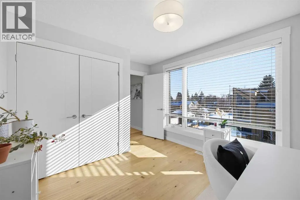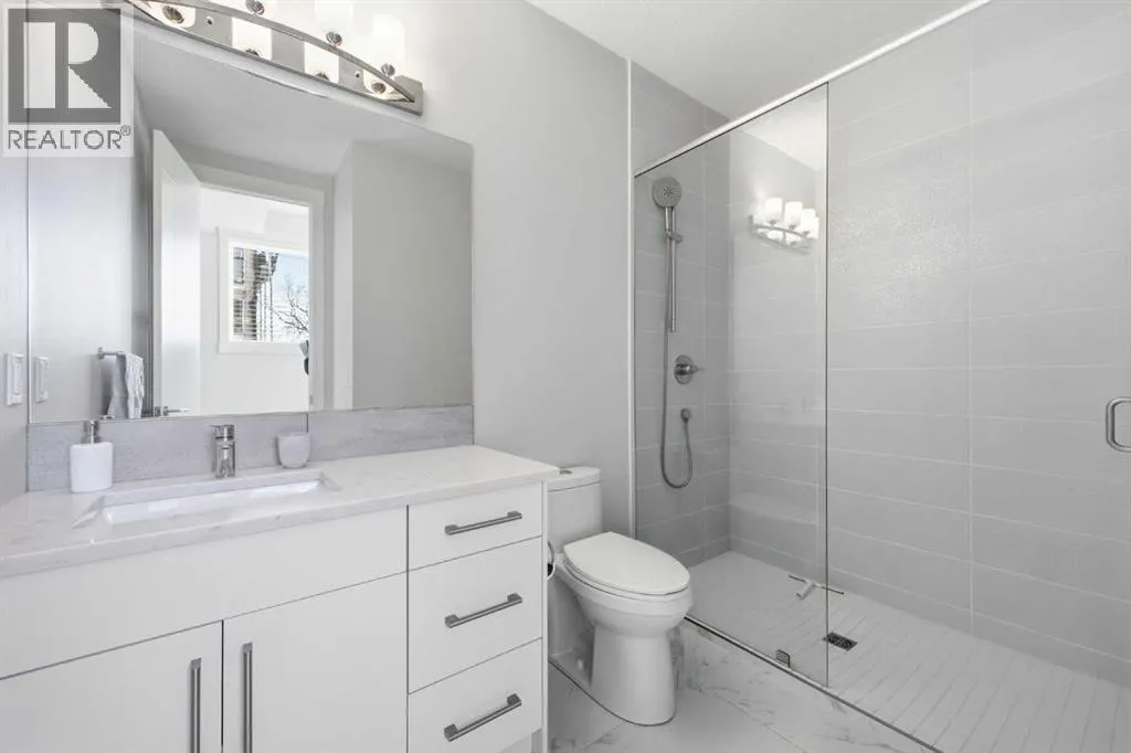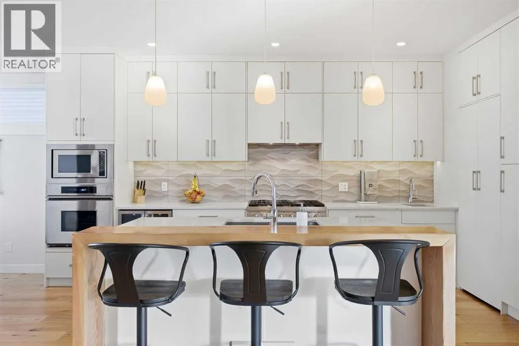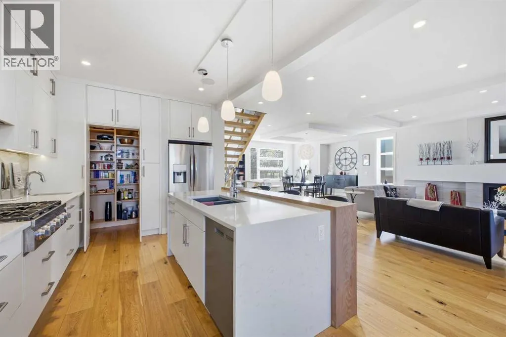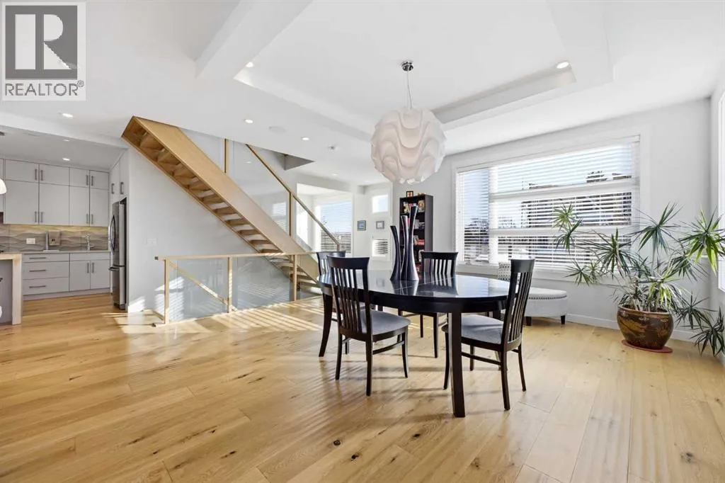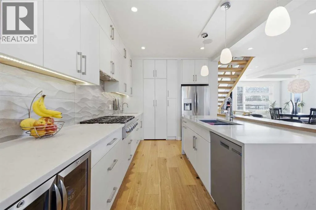 OPEN HOUSE SATURDAY, MARCH 14TH FROM NOON - 2 PM & SUNDAY, MARCH 15TH FROM 2-4 PM. PANORAMIC CITY AND DOWNTOWN VIEWS define this contemporary 4 bedroom residence in historic Bridgeland, offering over 4,600 sq ft of beautifully designed living space, including a fully developed walk out basement. Thoughtfully crafted for both everyday comfort and elevated entertaining, the home blends modern finishes with exceptional functionality. The open, airy main level features hardwood floors and soaring ceilings. A spacious dining area easily accommodates large gatherings, while the living roomâanchored by a remote controlled feature fireplaceâcreates a warm, inviting focal point. The kitchen is tastefully appointed with quartz countertops, an island with eating bar, abundant cabinetry including a walk in pantry, stainless steel appliances, and a bright breakfast nook. A mudroom and 2 piece powder room complete this level. The second floor hosts three well proportioned bedrooms, a 5 piece bath, and a laundry room equipped with a sink and storage. The private primary retreat enjoys its own balcony, a generous walk in closet, and a secluded 5 piece ensuite featuring in-floor heat, dual sinks, a relaxing soaker tub, and an oversized shower. The third level is an exceptional entertaining space, offering a large loft with in-floor heat, wet bar and access to a spectacular rooftop patio showcasing sweeping skyline views. A fourth bedroom and a 3 piece bath with rejuvenating steam shower complete this upper level. The fully developed walk out basement, warmed with in floor heat, includes a spacious recreation/media room with wet bar, a dedicated office, and a 3 piece bath. Additional highlights include new hardwood flooring in the loft and bedrooms, built in speakers, a south facing front patio, and a private backyard with deck, swim spa, and access to the heated triple detached garage. This exceptional property enjoys an enviable location close to Bridgelandâs charming shops, cafés, and restaurants, the Calgary Zoo, Bow River pathways, schools, public transit, and offers effortless access to the downtown core. (id:27476)