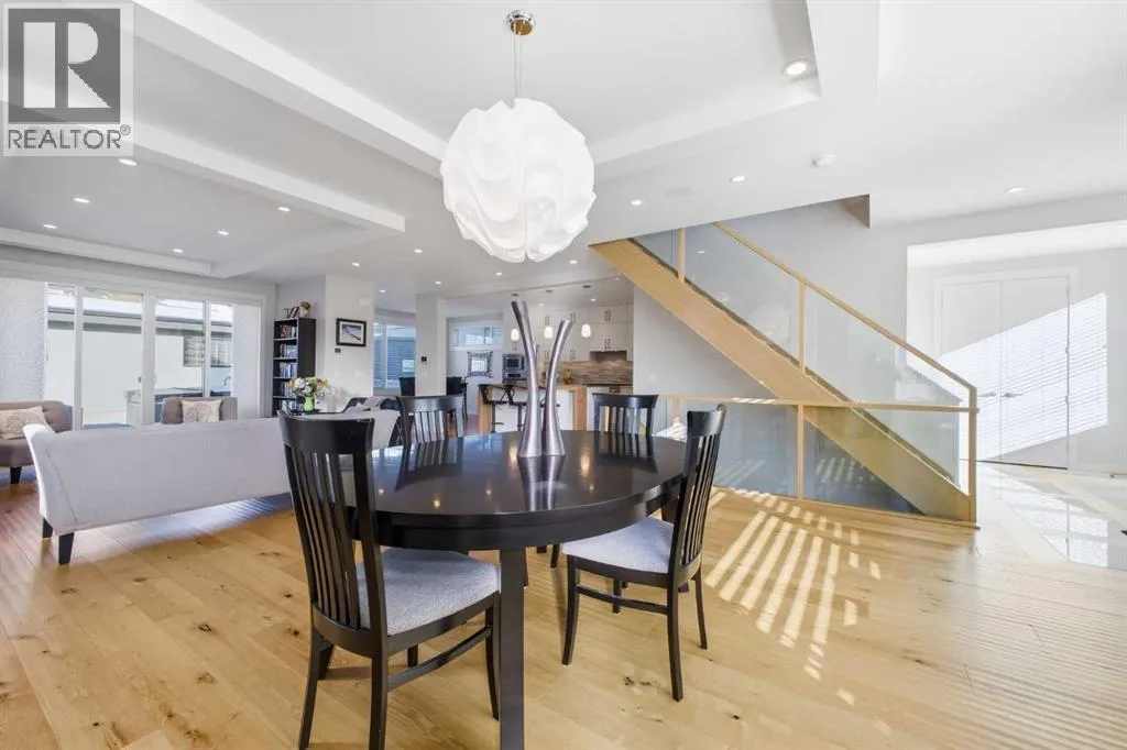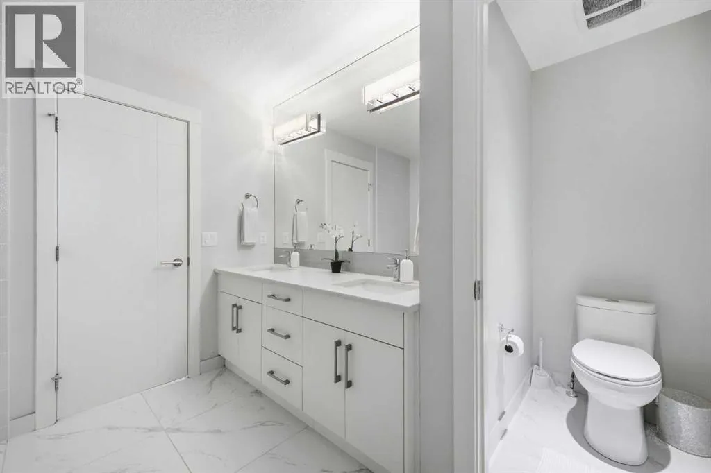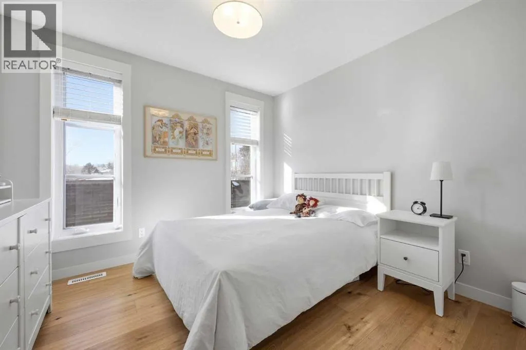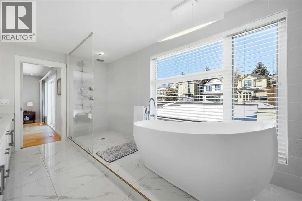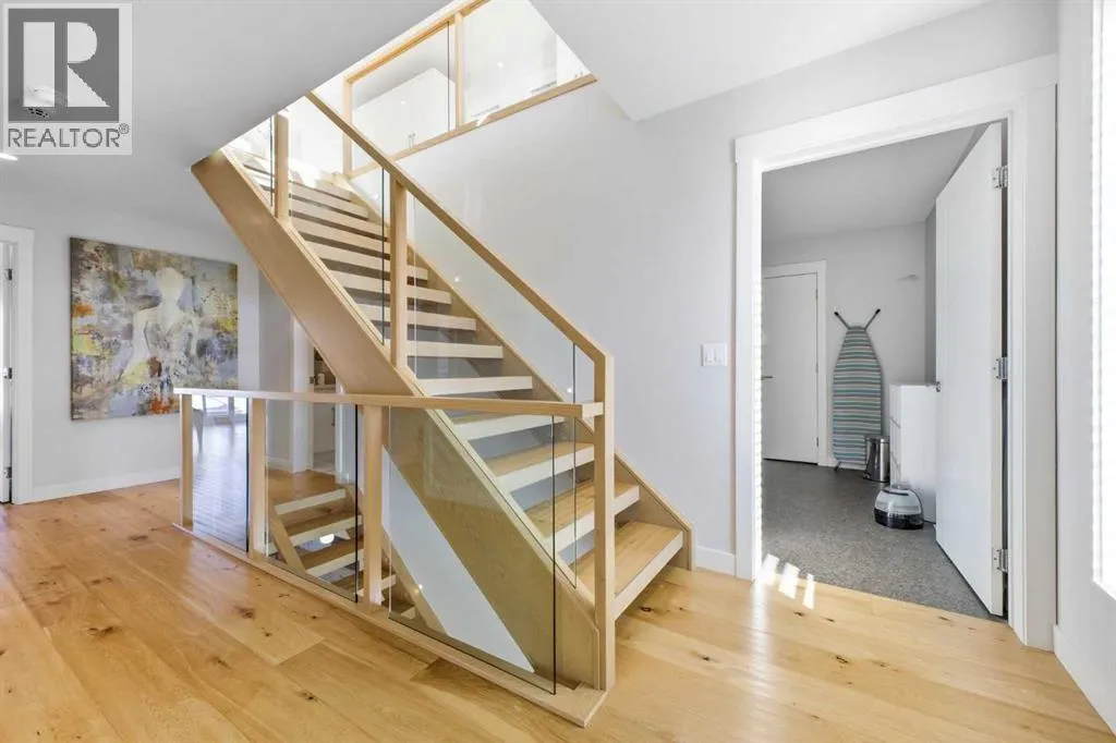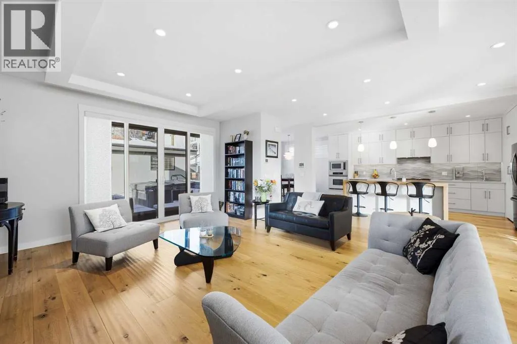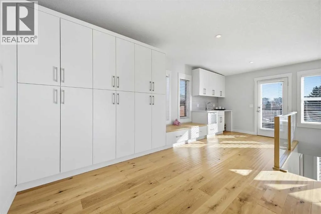 OPEN HOUSE SATURDAY, MARCH 14TH FROM NOON - 2 PM & SUNDAY, MARCH 15TH FROM 2-4 PM. PANORAMIC CITY AND DOWNTOWN VIEWS define this contemporary 4 bedroom residence in historic Bridgeland, offering over 4,600 sq ft of beautifully designed living space, including a fully developed walk out basement. Thoughtfully crafted for both everyday comfort and elevated entertaining, the home blends modern finishes with exceptional functionality. The open, airy main level features hardwood floors and soaring ceilings. A spacious dining area easily accommodates large gatherings, while the living roomâanchored by a remote controlled feature fireplaceâcreates a warm, inviting focal point. The kitchen is tastefully appointed with quartz countertops, an island with eating bar, abundant cabinetry including a walk in pantry, stainless steel appliances, and a bright breakfast nook. A mudroom and 2 piece powder room complete this level. The second floor hosts three well proportioned bedrooms, a 5 piece bath, and a laundry room equipped with a sink and storage. The private primary retreat enjoys its own balcony, a generous walk in closet, and a secluded 5 piece ensuite featuring in-floor heat, dual sinks, a relaxing soaker tub, and an oversized shower. The third level is an exceptional entertaining space, offering a large loft with in-floor heat, wet bar and access to a spectacular rooftop patio showcasing sweeping skyline views. A fourth bedroom and a 3 piece bath with rejuvenating steam shower complete this upper level. The fully developed walk out basement, warmed with in floor heat, includes a spacious recreation/media room with wet bar, a dedicated office, and a 3 piece bath. Additional highlights include new hardwood flooring in the loft and bedrooms, built in speakers, a south facing front patio, and a private backyard with deck, swim spa, and access to the heated triple detached garage. This exceptional property enjoys an enviable location close to Bridgelandâs charming shops, cafés, and restaurants, the Calgary Zoo, Bow River pathways, schools, public transit, and offers effortless access to the downtown core. (id:27476)