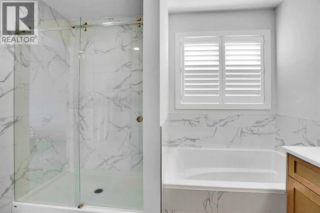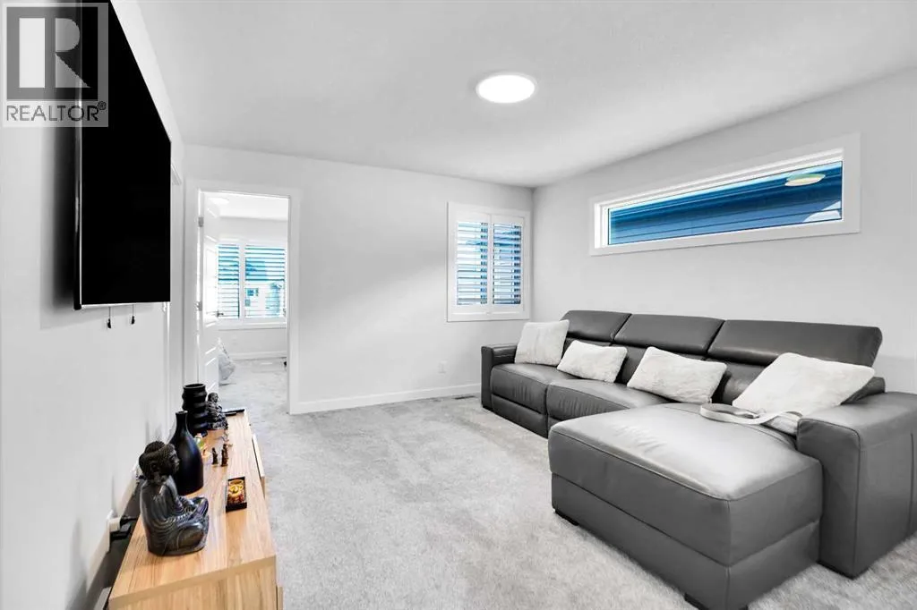 Welcome to this beautifully upgraded and thoughtfully designed home in the vibrant and fast-growing community of Ambleton NW. Built by Sterling Homes Calgary, a respected builder known for quality craftsmanship and modern finishes, this residence offers exceptional functionality, comfort, and style in a prime location near parks, green spaces, and walking pathways.The main floor features a bright Open-concept layout designed for both everyday living and entertaining. The upgraded kitchen showcases premium appliances, ample cabinetry, and seamless flow into the dining and living areas. Large windows fill the space with natural light, while luxury vinyl plank flooring throughout the main level enhances durability and complements the modern aesthetic. A convenient half bathroom is positioned for guests and daily use, and elegant wooden shutter blinds add both sophistication and privacy. Upstairs, youâll find three spacious bedrooms centered around a versatile bonus room ideal as a family lounge, media area, or home office. The primary bedroom serves as a private retreat, complete with a walk-in closet and a beautifully appointed ensuite featuring a walk-in shower, soaker tub, elegant vanity, and contemporary finishes. Two additional bedrooms are serviced by a full bathroom, and the upper-level laundry adds everyday practicality.The professionally finished basement extends the homeâs living space with a fourth bedroom, an additional full bathroom with shower, and a comfortable recreation area perfect for guests, extended family, or flexible use.Step outside to a fully completed backyard designed for enjoyment and low maintenance. Professionally installed landscaping with premium green turf and a concrete pad ideal for a gazebo or outdoor seating offers year-round usability. The double front-attached garage features epoxy flooring, providing a clean, durable, and polished finish.Located in one of NW Calgaryâs most desirable emerging communities, this move-in-read y home combines upgraded finishes, thoughtful design, and modern outdoor living an excellent opportunity in todayâs market. (id:27476)