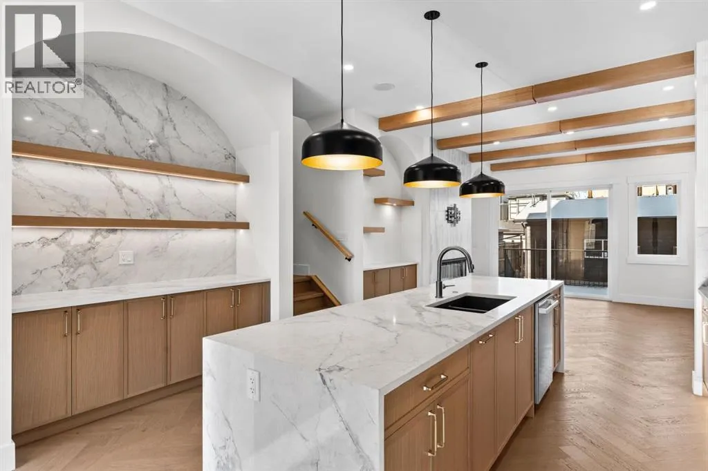 Welcome to this impeccably crafted 3-STOREY DETACHED home in the heart of Parkdale, offering OVER 3,400+ SQFT OF DEVELOPED LIVING SPACE by the reputable ACE HOMES. Featuring 5 BEDROOMS, multiple PRIVATE ENSUITES, a fully developed basement, and a DOUBLE DETACHED REAR GARAGE, this home perfectly blends luxury craftsmanship with thoughtful family functionality in one of Calgaryâs most desirable inner-city communities. The main level welcomes you through a FRONT CONCRETE PORCH into a beautifully designed foyer complete with CUSTOM BUILT-INS. The front-facing dining room is complimented by OVERSIZED WINDOWS, filling the space with natural light. At the heart of the home, the chef-inspired kitchen showcases a full STAINLESS STEEL APPLIANCE PACKAGE, luxury finishes, and an impressive 15-FOOT OVERSIZED ISLANDâideal for hosting gatherings or casual family meals. Tucked discreetly to the side, the mudroom features additional CUSTOM BUILT-IN STORAGE. The rear living room offers warmth and comfort, with large patio doors opening onto the REAR CONCRETE PATIO, creating seamless indoor-outdoor living. The second level features a primary suite , complete with a spacious WALK-IN CLOSET and a luxurious 5-PIECE ENSUITE featuring upscale finishes and a spa-inspired atmosphere. Two additional bedrooms each boast their own PRIVATE 3-PIECE ENSUITEâan exceptional feature for growing families or guests. A conveniently located laundry room completes this floor. The third level adds a unique layer of lifestyle flexibility. A spacious BONUS ROOM with WET BAR opens onto a PRIVATE BALCONYâperfect for entertaining, relaxing, or creating a dedicated lounge space. This level also features an additional bedroom with its own WALK-IN CLOSET and access to a JACK & JILL STYLE WASHROOM, along with a thoughtfully placed POCKET OFFICE, ideal for working from home without sacrificing living space. The fully developed basement extends the homeâs versatility with a large REC ROOM, and WET BAR, creating the perfect setting for movie nights or hosting. A dedicated GYM area provides space for wellness at home, while a 5th bedroom and 3-PIECE BATHROOM make this level ideal for guests or extended family. Located in the highly sought-after community of Parkdale, this home offers the perfect balance of riverside tranquility and urban convenience. Enjoy easy access to the Bow River Pathway system, nearby parks, and quick connections to Crowchild Trail for seamless commuting. Minutes from the Foothills Medical Centre, Alberta Childrenâs Hospital, and the University of Calgary. Parkdale is known for its strong sense of community, tree-lined streets, and proximity to local cafes and boutique amenities. Whether youâre searching for a forever family home or a premium inner-city investment, this property delivers unmatched space, elevated design, and an exceptional location. ACT NOW to take advantage of PRE-COMPLETION CUSTOMIZED FINISHING OPTIONS and secure SUMMER 2026 POSSESSION. (id:27476)