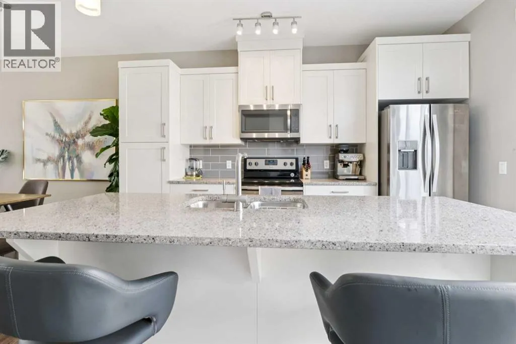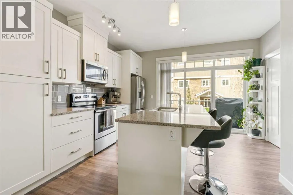 Welcome to 645 Evanston Manor NW. Stylish Living in the Heart of Evanston. Pride of ownership shines throughout this beautifully maintained 2-storey townhome offering over 1,500 sq. ft. of thoughtfully designed living space. Featuring 2 spacious bedrooms, 2.5 bathrooms, a versatile flex room, double attached garage, and central A/C, this home delivers the perfect balance of comfort, style, and functionality. The main floor welcomes you with 9-foot ceilings and an open-concept layout ideal for everyday living and entertaining. The bright living room flows seamlessly into the dining area and a stunning kitchen complete with stainless steel appliances, quartz countertops, pantry, and a large central island. Step through the double sliding doors onto your large balcony...perfect for summer BBQs and relaxing evenings. Upstairs, youâll find two oversized bedrooms, each with its own ensuite bathroom. The primary suite is a true retreat featuring vaulted ceilings, dual closets, and plenty of room for a king-sized bed. Large windows throughout the home fill the space with natural light, enhancing its warm and inviting atmosphere. The lower level offers a flexible bonus space ideal for a home office, gym, rec room, or guest area, along with laundry, additional storage, and direct access to the double attached garage. Located in the family-friendly community of Evanston, youâre surrounded by parks, playgrounds, schools, and scenic walking paths. Enjoy close proximity to FreshCo, Sobeys, Creekside Shopping Centre, Evanston Towne Centre, The Shops of Carrington Green, restaurants, medical clinics, and quick access to Stoney Trail for an easy commute anywhere in the city. This is more than just a home; itâs a lifestyle opportunity in one of NW Calgaryâs most desirable communities. Donât miss your chance to view this exceptional property. Book to view today! (id:27476)