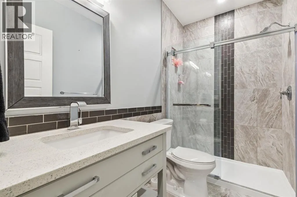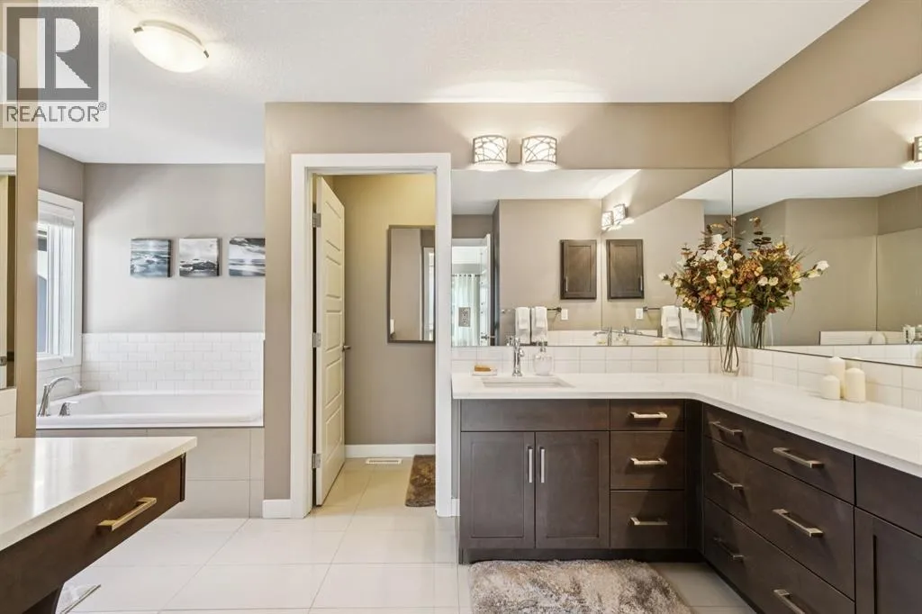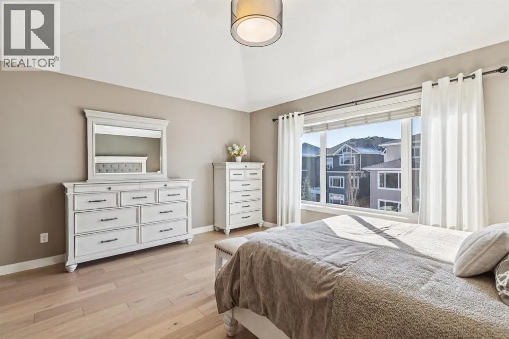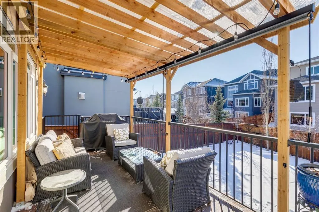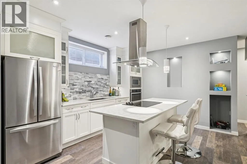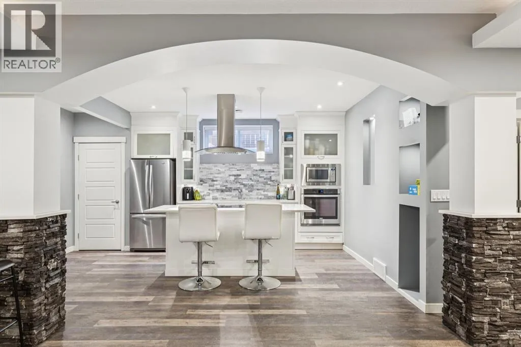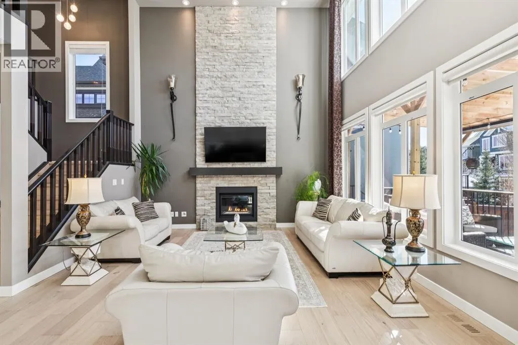 Located in the highly sought after community of Aspen Woods, this stunning family home sits on a quiet street just steps from scenic walking paths, playgrounds, and parks, offering the perfect blend of nature and convenience with quick access to top rated schools, Aspen Landing Shopping Centre, and an easy downtown commute. Showcasing beautiful curb appeal and a west exposed backyard for warm afternoon and evening light, this thoughtfully designed home boasts over 4,000 sq ft of developed living space and features a full walk-out legal basement suite; ideal for extended family or additional income. The main floor welcomes you with a spacious entry and elegant wide plank white hardwood flooring, creating a bright and airy atmosphere throughout. A formal dining room or den offers flexibility for growing families, while the open concept living space is anchored by a dramatic 2-storey window wall and Crestal gas fireplace. The modern kitchen is both stylish and functional with white shaker cabinetry, a striking quartz waterfall eat-up island, induction cooktop, built-in oven and microwave, and a walk-through pantry leading to the mudroom and triple car garage, with a convenient main floor laundry room. A sunny breakfast nook opens onto a pergola-covered raised balcony, perfect for year round enjoyment. Upstairs, hardwood flooring continues throughout, and a spacious bonus room overlooks the living area below, enhancing the homeâs open design. The primary retreat features vaulted ceilings, a custom walk-in closet, and a luxurious 5pc ensuite complete with a deep soaker tub, glass enclosed shower, his/her sinks, and separate make-up vanity, while two additional bedrooms with walk-in closets and a full bath complete the upper level. The fully finished legal basement suite offers vinyl plank flooring, two bedrooms (one with stacked washer and dryer), a 3pc bathroom, built-in appliances including an electric cooktop, large windows for abundant natural light, its own furnace, and a cozy gas fireplace flanked by built-in shelving and storage. Additional highlights of the home include a water softener system and radon gas vacuum system, along with recent upgrades such as three new windows, new shingles and gutters, fresh interior paint, new kitchen sink, new bathroom sinks, and new countertops in the kitchen and two bathrooms. The beautifully landscaped west backyard features apple and cherry trees creating an exceptional outdoor setting for family living in one of Calgaryâs most desirable communities. (id:27476)