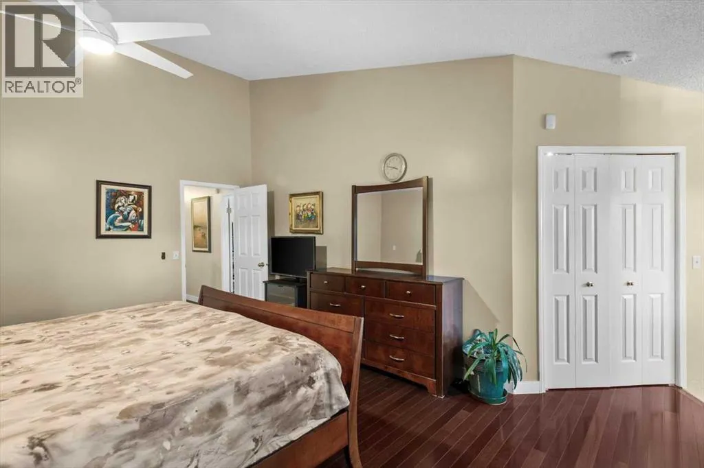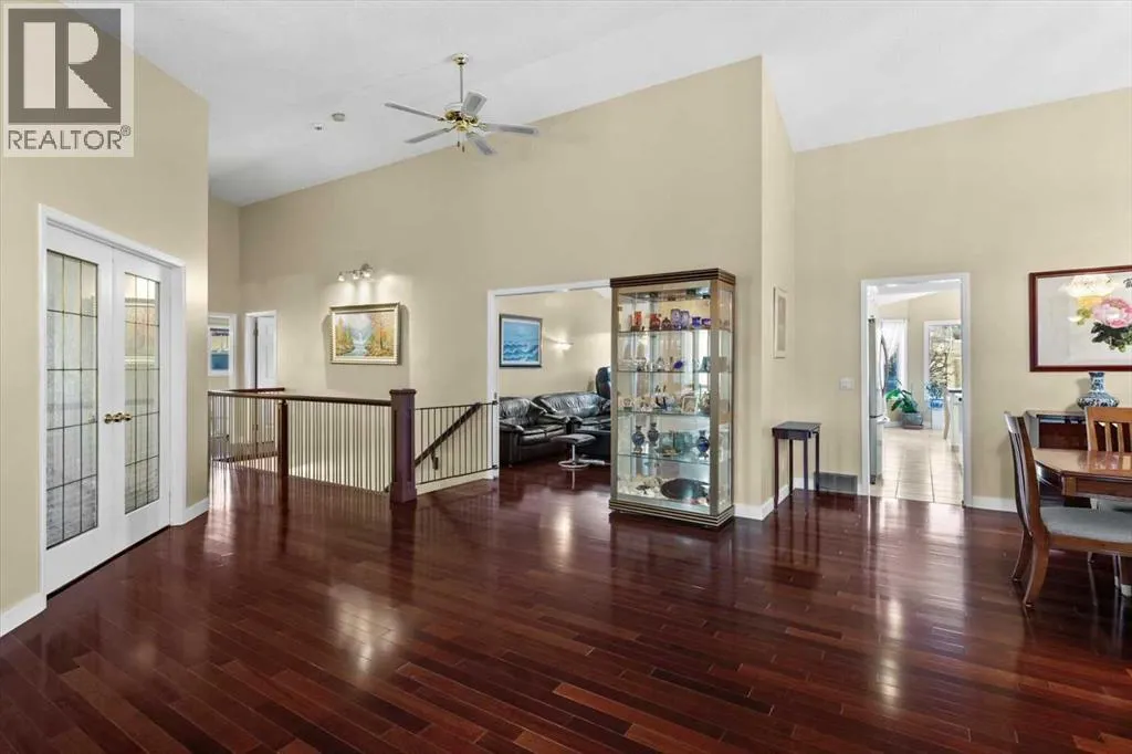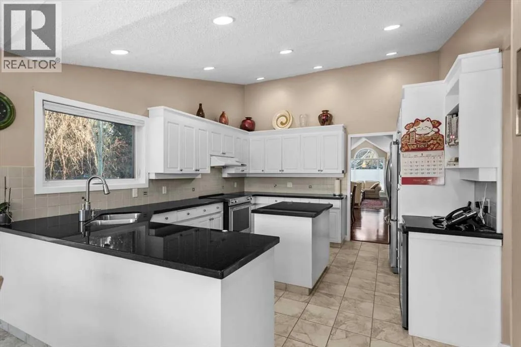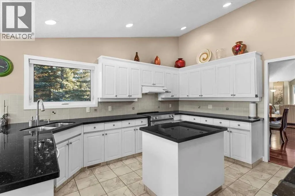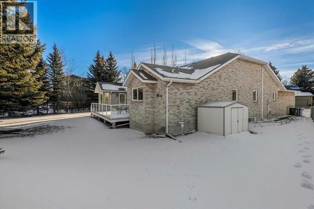 Located on a quiet crescent in Varsity Estates, this classic all-brick 2,480 sq ft executive bungalow with 5 bedrooms and 3 full bathrooms reflects years of thoughtful ownership and steady investment.Vaulted ceilings and architectural lines create an immediate sense of openness, while rich Brazilian hardwood floors add warmth and continuity throughout the main living areas. The formal living and dining rooms are bright and inviting, and the family room offers a comfortable gathering space centered around a brick gas fireplace.The kitchen features updated cabinetry, countertops, flooring, and appliances, and flows naturally into a sun-filled breakfast nook framed by large windows overlooking the spacious backyard. Morning coffee here feels private and peaceful, surrounded by mature trees and established landscaping.The main floor includes a spacious Master bedroom complete with a large walk-in closet and ensuite featuring a soaker tub and separate shower, a generously sized second bedroom with access to the main floor 4pc bath, the home office with French doors can also be used as a bed room, and a laundry room.The fully developed lower level adds two additional bedrooms, a 4 pc bath, and expansive space for recreation, media, or extended family living, with a rough-in for a future wet bar offering flexibility for customization.Over the years, the sellers have made substantial upgrades to ensure long-term comfort and reliability. All bathrooms and the laundry area have been updated. Triple-pane windows and exterior doors were installed in 2022, Poly-B plumbing was fully replaced in 2021, and two high-efficiency furnaces, complemented by a high-efficiency tankless hot water system in December 2025.The oversized pie lot boasts an underground sprinkler system that is maintained annually. The security system has been updated with outside camera.This is a well-cared-for home in one of Calgaryâs most established communities. Located close to highly regarded schools , parks, pathways, transit, Market Mall, the University of Calgary and Foothills Medical Centre, this home offers both everyday convenience and long-term desirability. (id:27476)