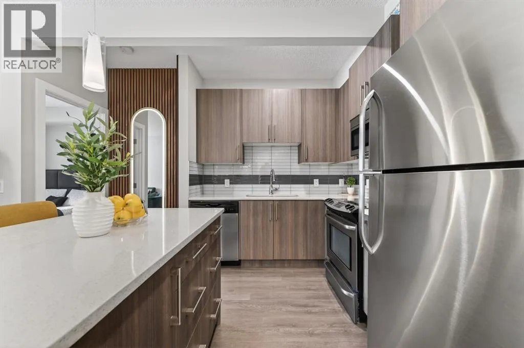 OPEN HOUSE Sunday March 29th 2-4 pm | Welcome to Unit 111 at 4 Sage Hill Terrace NW, a bright, owner occupied, clean, modern 2 bedroom, 2 bathroom ground-floor condo in the heart of Sage Hill.The open-concept kitchen and living area feels welcoming and functional, with unique feature walls that add just the right amount of personality. Itâs move-in ready and shows beautifully.The in-floor heating is a feature youâll truly appreciate, keeping the entire home feeling warm and comfortable year-round. The primary bedroom is a great size and features walk-through his and her closets leading into the private 4-piece ensuite. The second bedroom and full bath are thoughtfully positioned, making it ideal for guests, a roommate, or a home office. In-suite laundry keeps everything convenient and contained.One of the standout features is the ground-floor private entrance facing the pet relief area and visitor parking. If you have a dog, this is incredibly convenient. No elevators, no long hallways, just easy access in and out.There is also a titled parking stall in the heated underground parkade plus bicycle storage for those who like to take advantage of the nearby pathways.Youâre steps from walking paths and parks, close to all the shopping and amenities Sage Hill has to offer, and within proximity to the future Sage Hill school sites (K-5 and 6-9).If youâve been looking for something stylish, low-maintenance, and well-located in NW Calgary, this home offers a wonderful opportunity. (id:27476)