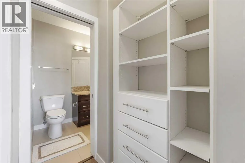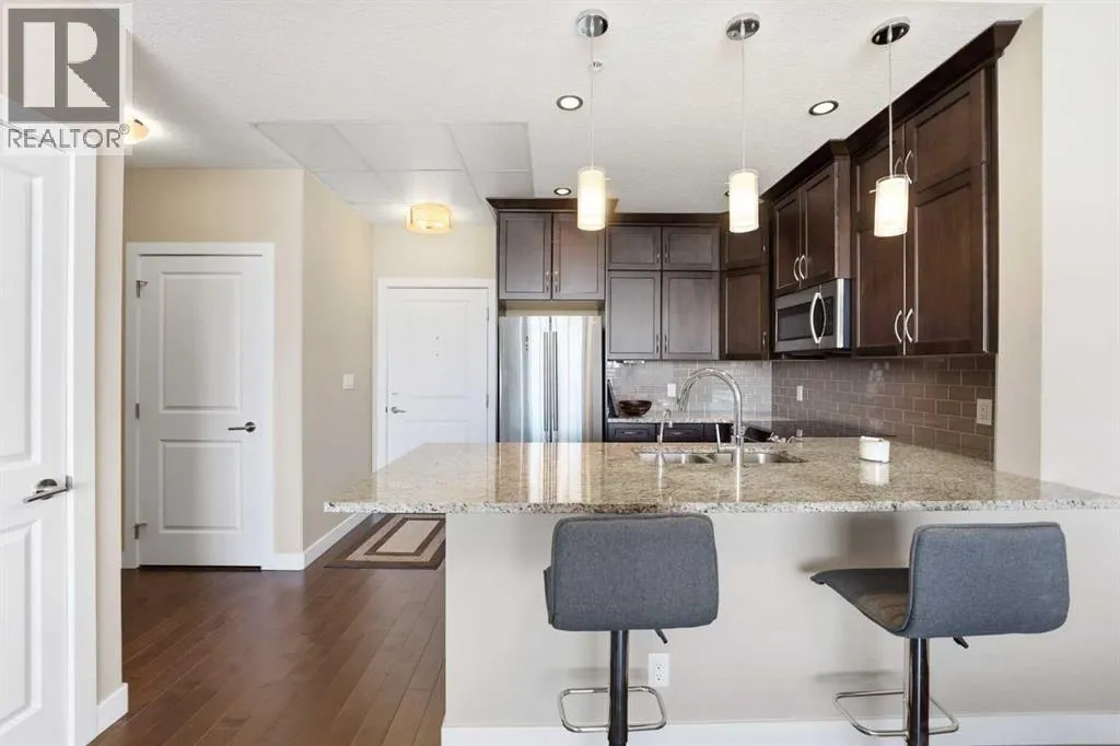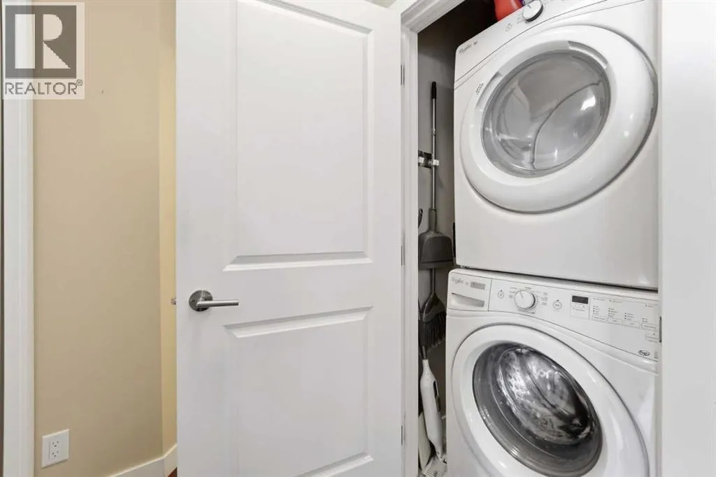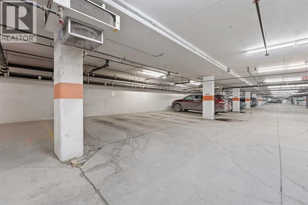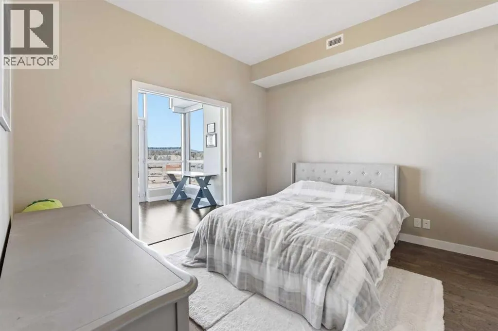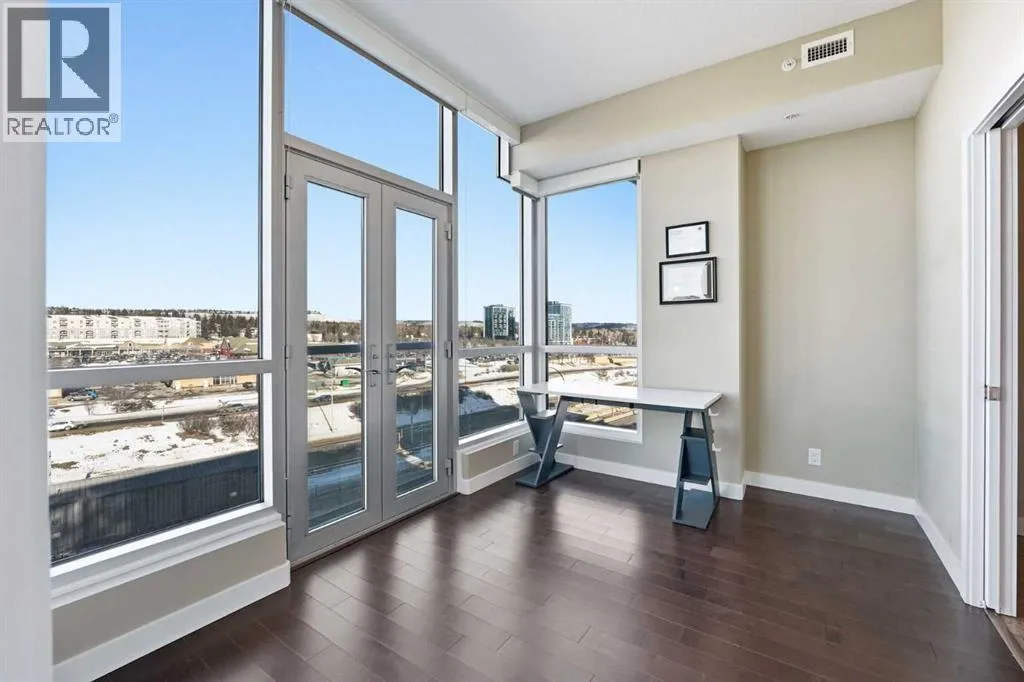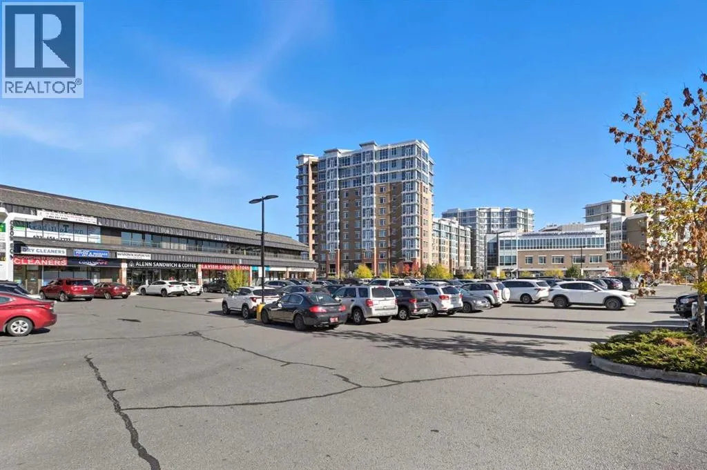 Perched on an upper floor in the highly sought-after community of Varsity Estates, this modern 1 bedroom plus den condo offers an open-concept layout in a CONCRETE BUILDING, providing excellent soundproofing and long-term durability. The space is enhanced by impressive 10-FOOT CEILINGS and FLOOR-TO-CEILING WINDOWS, allowing natural light to fill the home throughout the day. The spacious kitchen is designed for both everyday living and entertaining, featuring QUARTZ COUNTERTOPS, FULL-HEIGHT CABINETRY, STAINLESS STEEL APPLIANCES, and a generous breakfast bar that flows seamlessly into the living and dining areas. A versatile den with a pocket door provides the perfect HOME OFFICE or flex space for todayâs lifestyle. The primary bedroom includes a walk-through closet with custom organizers and access to a spa-inspired bathroom complete with an OVERSIZED GLASS SHOWER and built-in bench. Comfort is elevated with CENTRAL AIR CONDITIONING, IN-SUITE LAUNDRY, TITLED UNDERGROUND PARKING, and an ASSIGNED STORAGE LOCKER. Residents also enjoy access to exceptional rooftop amenities, including a ROOFTOP FITNESS CENTER, STEAM ROOMS, OWNERâS LOUNGE, and an outdoor terrace with BBQs and mountain views. The location is incredibly convenient â just steps to cafes, restaurants, shops, and everyday amenities, with DALHOUSIE LRT, UNIVERSITY OF CALGARY, and MARKET MALL nearby. An excellent opportunity for first-time buyers, professionals, investors, or those looking to downsize without compromise while owning in a well-built concrete building in one of Calgaryâs most desirable communities. (id:27476)