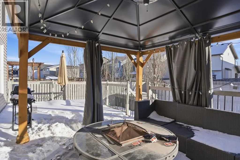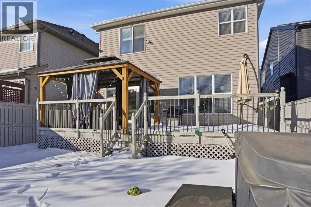 ** OPEN HOUSE SATURDAY FEB 28, 2-4PM & SUNDAY MARCH 1, 12-4PM ** Located in the desirable community of Copperfield, this fully developed two storey home offers over 2,700 sq ft of comfortable developed living space designed for growing families. With 4 bedrooms, 3.5 bathrooms, a double attached garage, and air conditioning, this property delivers space, functionality, and convenience with easy access to both Stoney Trail and Deerfoot Trail.Step inside to a bright and welcoming entry with an open to above design that creates an immediate sense of space. Hardwood flooring runs throughout the main level, leading into a spacious living room centered around a gas fireplace and large windows that bring in plenty of natural light. The kitchen is thoughtfully laid out with full height cabinetry, a statement island with stone accents, modern lighting, and a walk through pantry that connects directly to the mudroom and garage. The dining area overlooks the backyard, and a 2 piece bath completes the main floor.Upstairs, the primary bedroom serves as a private retreat with a walk in closet and a 5 piece ensuite featuring dual sinks, a soaker tub, and separate shower. Two additional bedrooms, a versatile bonus room, a full bathroom, and a dedicated upper level laundry room provide both comfort and practicality.The fully finished basement adds even more flexibility with a large recreation area, an additional flex space ideal for a home gym or media setup, a fourth bedroom, and another full bathroom. All bathrooms have been updated with new ceramic tile, and the roof and siding were replaced in 2022.Outside, enjoy a private backyard complete with a large deck, gazebo, and hot tub, perfect for relaxing or hosting family and friends. Surrounded by parks, ponds, pathways, schools, and everyday amenities, this Copperfield home presents a fantastic opportunity to settle into a well established southeast community. (id:27476)