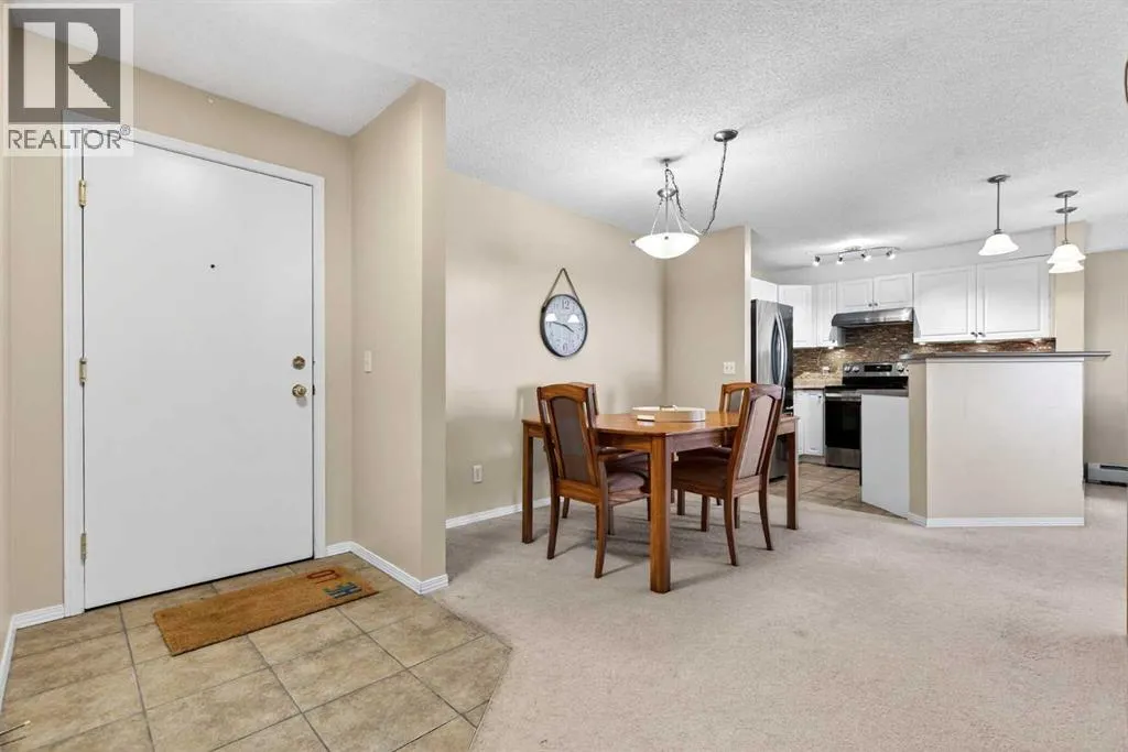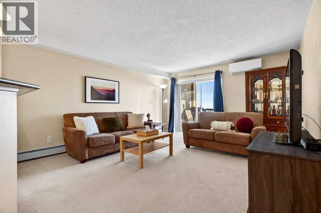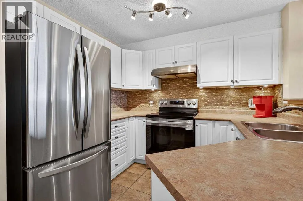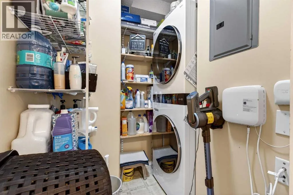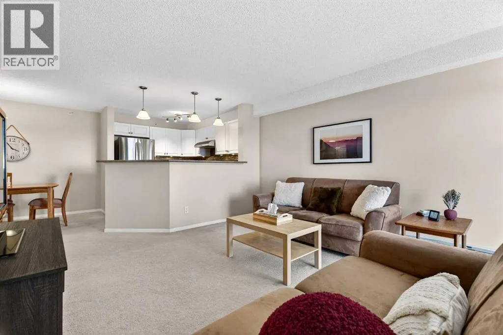 Welcome home to this bright and well-maintained 2-bedroom condo in Royal Oak Pointe. This top-floor unit offers an open-concept layout filled with natural light and a functional design throughout.The kitchen features white cabinetry, stainless appliances, and tiled flooring â with all appliances replaced in 2022 for added peace of mind. The bathroom has been completely renovated and includes a tiled bathtub, a modern vanity with plenty of drawers, a wide mirror, and a convenient medicine cabinet.Both bedrooms are generously sized with large closets, and thereâs additional storage space in the in-suite laundry room. Stay comfortable year-round with air conditioning, added in 2023.Step outside to your spacious private deck with beautiful mountain views â the perfect place to relax. Youâll also enjoy titled underground parking with an assigned storage locker. Condo fees include all utilities, making budgeting simple. (id:27476)