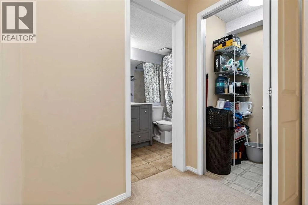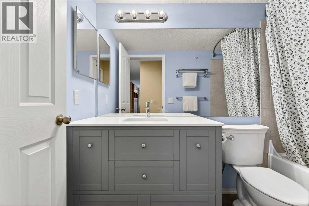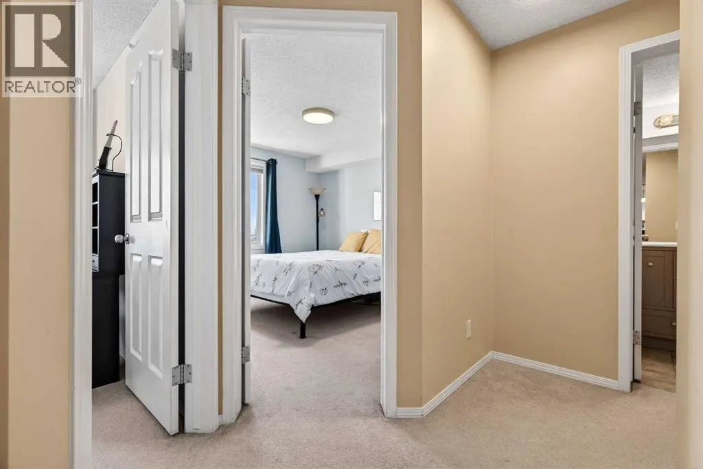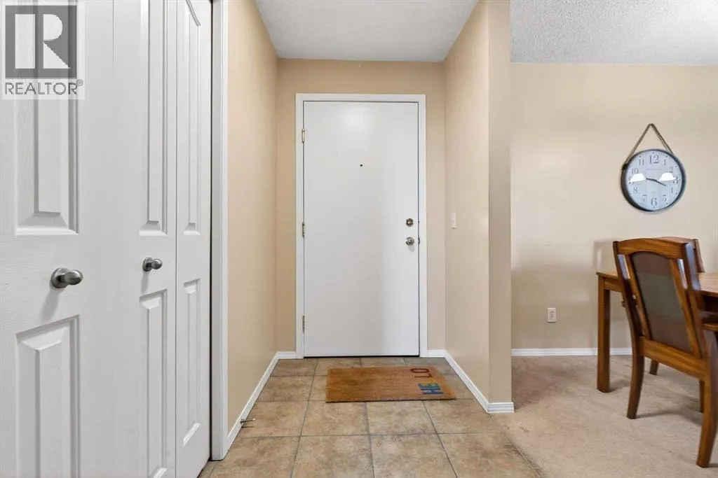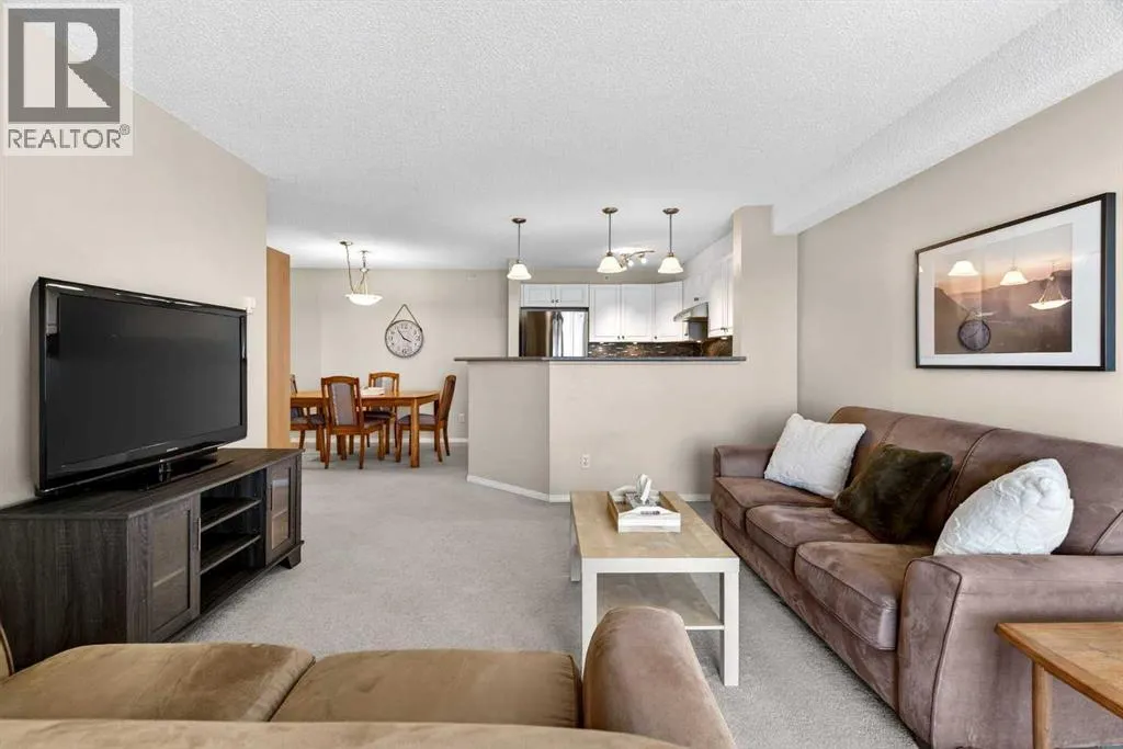 Welcome home to this bright and well-maintained 2-bedroom condo in Royal Oak Pointe. This top-floor unit offers an open-concept layout filled with natural light and a functional design throughout.The kitchen features white cabinetry, stainless appliances, and tiled flooring â with all appliances replaced in 2022 for added peace of mind. The bathroom has been completely renovated and includes a tiled bathtub, a modern vanity with plenty of drawers, a wide mirror, and a convenient medicine cabinet.Both bedrooms are generously sized with large closets, and thereâs additional storage space in the in-suite laundry room. Stay comfortable year-round with air conditioning, added in 2023.Step outside to your spacious private deck with beautiful mountain views â the perfect place to relax. Youâll also enjoy titled underground parking with an assigned storage locker. Condo fees include all utilities, making budgeting simple. (id:27476)