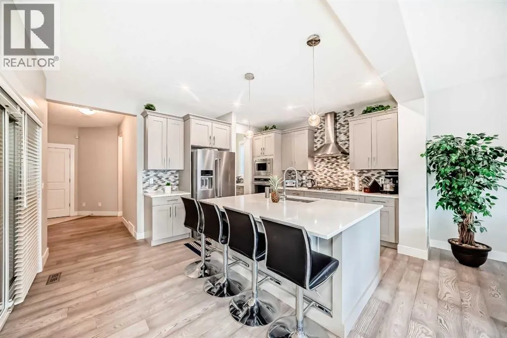 Welcome to 477 Legacy Boulevard SE, built by award-winning Morrison Homes and quietly tucked away in the heart of Legacy, one of Calgaryâs most desirable master-planned communities. This 4-bedroom, 3-bathroom, two-storey home with a double front-attached garage offers the perfect blend of functionality, design, location, and uniqueness youâve been waiting for. Donât be deceived by the âBoulevardâ in the nameâthis home sits within a peaceful enclave, set well back from main traffic and surrounded by quiet greenspace pathways and nearby parks, offering a calm and private setting. The main floor is designed for both everyday living and entertaining and is thoughtfully laid out for modern family life. The living room is warm and inviting, highlighted by a beautiful fireplace, while the beautifully appointed kitchen features a large quartz island with seating for four and sink convenience, an elegant multi-tonal leaf mosaic tile backsplash, built-in gas range, built-in wall microwave and oven, and a stainless steel French-door refrigerator with bottom-mount freezer. A butlerâs pantry area off the kitchen provides additional counter spaceâideal for infrequently used countertop appliancesâalong with an additional walk-in pantry for exceptional storage. Just off the kitchen, sliding patio doors open to a private courtyard-style patio, perfect for BBQs and outdoor entertaining, while the living room also features a gas fireplace and offers sliding doors leading to a rear deck, extending your living space outdoors. Completing the main level is a front-attached double garage with a convenient mudroom entry, featuring built-in seating and coat storage for effortless organization. Upstairs is an exceptional family-friendly layout with four spacious bedrooms plus a bright bonus room, ideal for a media area, kidsâ space, or home office. The primary bedroom comes complete with its own cozy electric fireplace, a large walk-through closet with built-in shelving, and a stunning quartz and tile ensuite featuring a double vanity, separate free-standing soaker tub, and a glass-enclosed shower with built-in bench and niche. A convenient upper-level washer and dryer laundry area completes the level. The unfinished basement is ready for the new ownerâs finishing touches, already equipped with egress windows and roughed-in plumbing for a future downstairs bathroom, offering excellent potential to expand your living space and add long-term value. Enjoy year-round comfort with the central A/C! With parks, pathways, schools, and amenities just minutes awayâand easy access throughout the cityâthis home delivers an outstanding balance of privacy, comfort, and community. A rare opportunity to enjoy quiet, refined living in the very heart of Legacy. (id:27476)