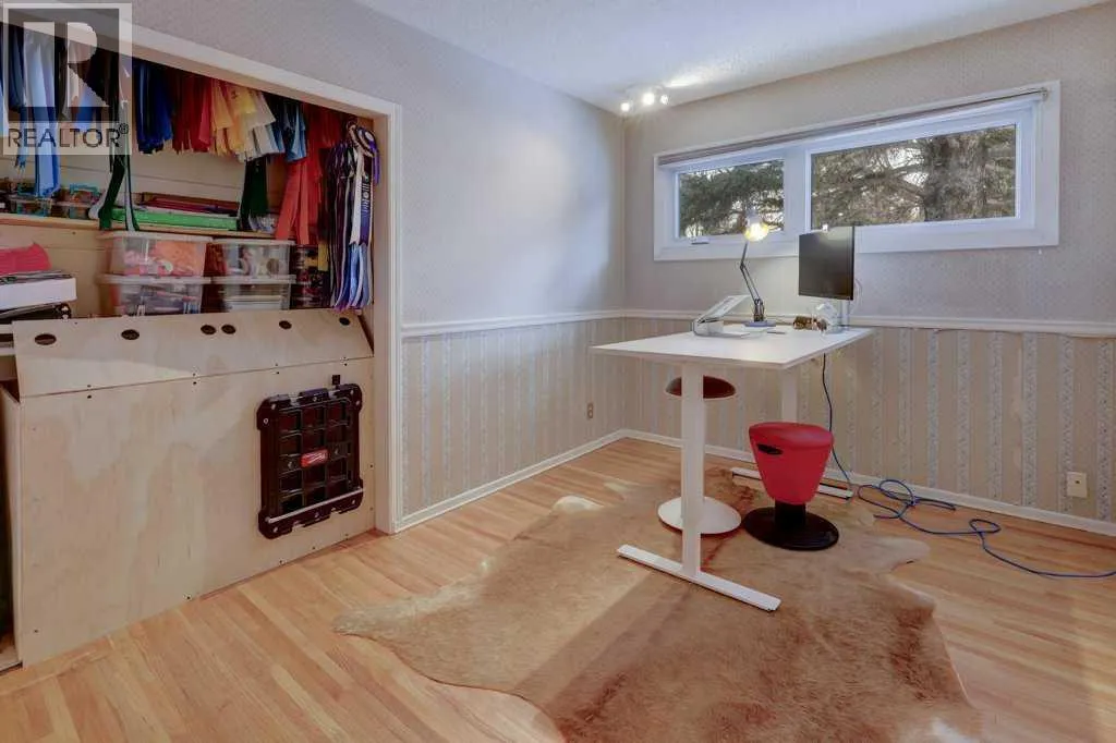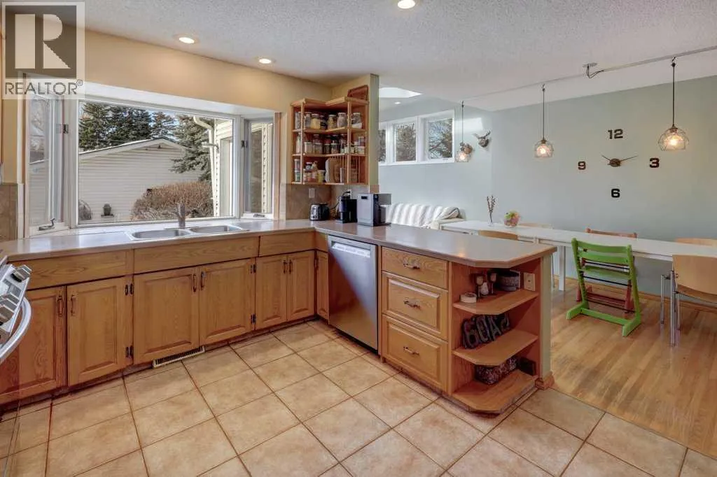 Welcome to this beautiful, sun-filled bungalow in the heart of Varsity, offering over 1,300 sq ft above grade, and extra 1000 sq ft below, and an incredible south-facing backyard.From the moment you step inside, youâll appreciate the warmth of the hardwood floors and the inviting living room, complete with extensive built-in shelving. Perfect for book lovers or showcasing your favorite pieces. The dining area connects easily to the spacious kitchen, where youâll find generous cabinetry, built-in features, ample counter space, and views out to the backyard.One of the true highlights of this home is the bright sunroom/solarium. With skylights overhead and windows on all sides, itâs a cheerful retreat year-round and an absolute dream space for plant enthusiasts or anyone who enjoys a quiet morning coffee surrounded by natural light.The main floor offers three bedrooms, including a comfortable primary bedroom, along with a well-appointed 4-piece bath. Downstairs, the basement expands your living space with a large rec room anchored by a freestanding wood-burning stove, a fourth bedroom, 2-piece bath, and plenty of storage and utility space.Out back, the south-facing yard is ready to impress. Raised garden beds, mature trees, and a large deck create the perfect setting for summer evenings and weekend gatherings. Previous owners cultivated a stunning garden here, and the potential is yours to enjoy. The oversized detached double garage and back lane access add everyday convenience.Located in one of Calgaryâs most established and desirable communities, Varsity is known for its mature trees, excellent schools, and easy access to amenities. Youâre just a 5-minute drive to the Bow River, where walking and biking trails await.This is a wonderful opportunity to own a sunny, character-filled home in a truly exceptional neighborhood. Book your private showing today and see what life in Varsity has to offer! (id:27476)