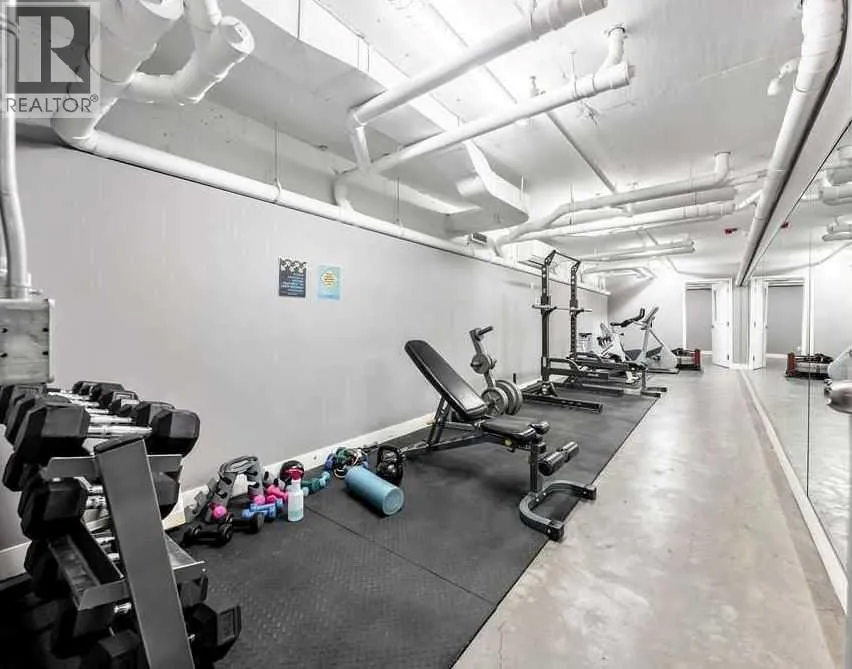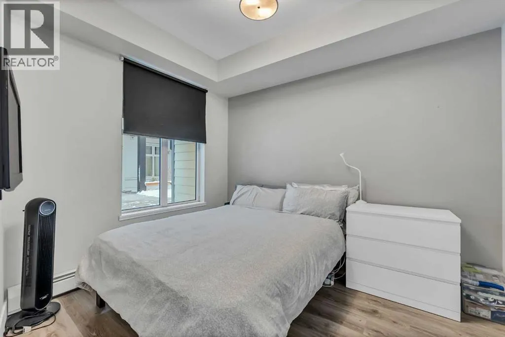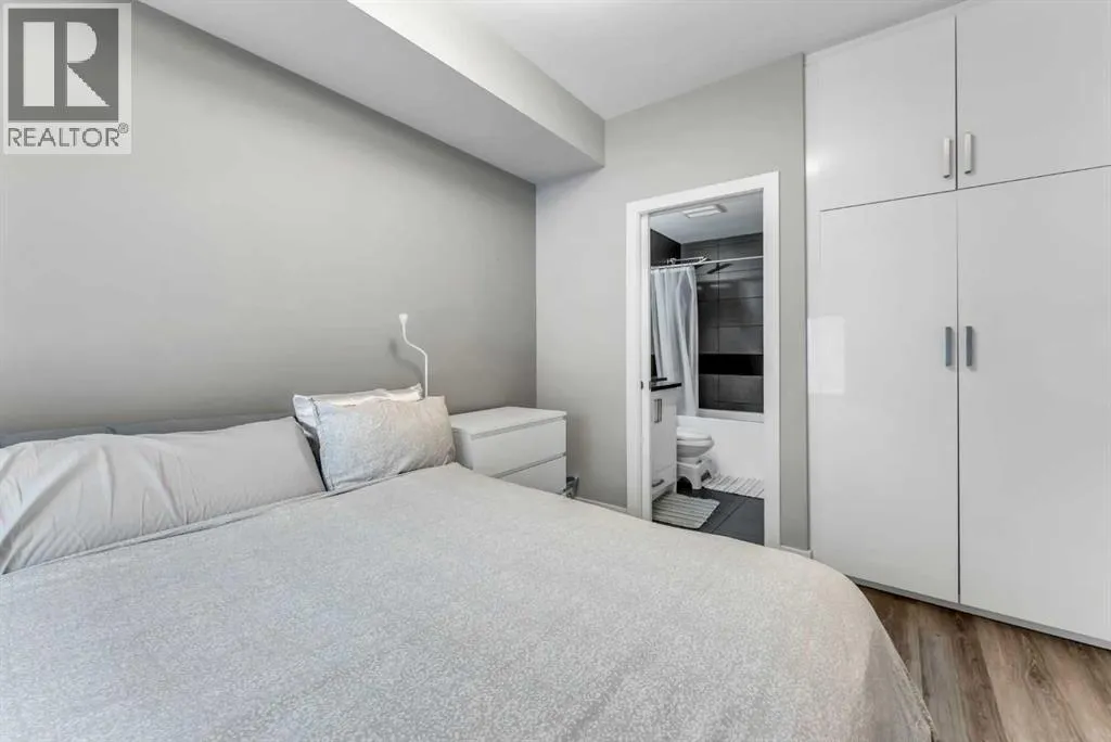 ~UPGRADED WITH AIR CONDITIONING~, LOCATION, PROXIMITY, and AFFORDABILITY awaits! Fantastic opportunity to own as an investor, a first-time home buyer, or a downsizer in the trendy and sought-after inner-city community of BRIDGELAND. This cozy 2-bedroom, 2-bathroom, with 1- titled underground parking & assigned storage space is all you need! Offering custom built-in appliances, two-tone kitchen cabinetry, Quartz countertops, and laminate flooring seen throughout! This unit delivers with an open-concept layout, modern finishes featuring a blend of urban convenience, and a twist of European flair! Primary bedroom with a private 4pc-ensuite, and secondary bedroom well-appointed in size can double up as an office, both rooms come with built-in wardrobes and located opposite of floor plan which makes for optional roommate living enjoyable and practical. This unit is quiet & south-facing, with a private patio entrance/door via the exterior building (southside), allowing for quick/easy access to your unit. Take advantage of the building's unique amenities, including a PET-WASH station, a boutique style fitness/yoga area, and a RARE rooftop patio/terrace with communal spaces, for get-togethers, shared experiences, and BBQ mealtimes - all while enjoying unobstructed views of Calgaryâs downtown skyline! Features: INSUITE laundry | Private patio/balcony with gas hook-up for all your fresh-air and BBQ needs. Electric Mounted fireplace | GAS Cook-top |building elevator to access all floors | Wheel-chair accessibility if needed | An UNBEATABLE location, with shops, cafes, playgrounds, schools, convenient public transit, paved walkway/pathway systems, and award winning restaurants-all within a 1km radius! Don't delay and book your private showing today! (id:27476)