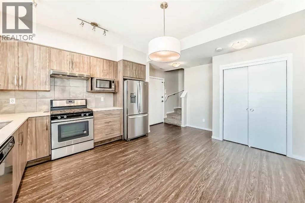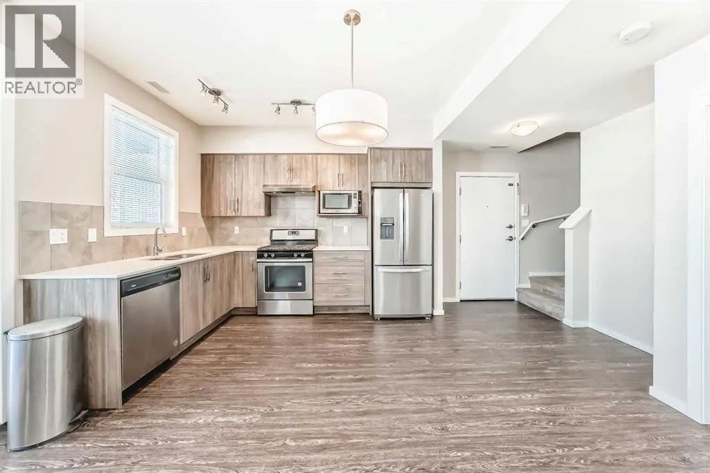Rare 3 bedroom**** AIR CONDITIONING** Townhome built by Jayman, located in the âGRANITEâ complex. Combining a unique design, a highly functional layout and affordability, #204 135 Redstone Walk is a fantastic option. Upon entry this upgraded home boasts an open concept main floor with UPGRADED SS APPLIANCES including a GAS STOVE, vinyl flooring and QUARTZ COUNTERTOPS. The main floor has a private deck and loads of windows for the much needed natural sunlight. Upstairs this unit has 3 bedrooms and a 4/piece bath as well as a conveniently located TOP FLOOR LAUNDRY. Keep cool on those hot summer days with CENTRAL AIR CONDITIONING! Parking is not a problem with both a HEATED ATTACHED GARAGE and front private parking pad. There is also an AMAZING PLAYGROUND within the complex. This location provides quick access to Stoney Trail, Deerfoot Trail, YYC, Costco and Crossiron Mills. Redstone is also slated to be the location of the future LRT expansion. Call to book a private showing! (id:27476)