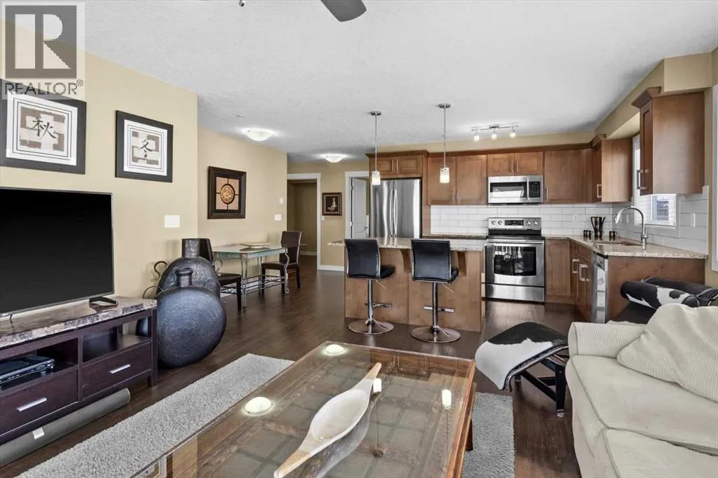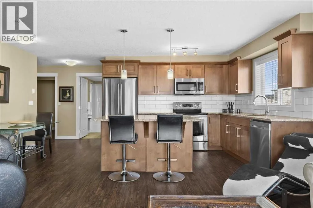 Welcome to Sage Place, nestled in the heart of Sage Hill, one of NW Calgary's most sought-after communities, where comfort, convenience, and a true sense of neighbourhood effortlessly come together. This is your opportunity to own one of the larger floorplans in the complex, a bright, beautifully appointed corner unit designed for both everyday living and relaxed entertaining. From the moment you step into the private foyer, the thoughtful layout and elevated finishes make an impression. As a corner unit, this home is bathed in natural light, with expansive windows that create an open, airy atmosphere throughout the main living spaces. Premium laminate flooring runs through the principal areas, offering lasting durability and understated style, while the bedrooms provide a warm and cozy retreat underfoot. The kitchen is the heart of this home, featuring granite countertops, full-height cabinetry, and a premium stainless steel appliance package that blends functionality with sophistication. Whether you are hosting friends for a dinner party or savouring a quiet morning coffee, the oversized dining area & generous living room offer the perfect setting to gather, relax, and connect. Step through the sliding doors onto your large private deck, complete with natural gas for the BBQ, an ideal extension of your living space, perfect for summer evenings, weekend grilling, or simply unwinding after a long day with a glass of wine in hand. The floorplan includes two spacious bedrooms plus a versatile den. The primary retreat features a private 3-piece ensuite and dual his & hers closets, delivering both comfort and practical everyday storage. The second bedroom is thoughtfully positioned adjacent to the full 4-piece bathroom, making it ideal for guests, family. The spacious den adds exceptional flexibility, whether you envision a home office, a personal workout space, or occasional guest accommodations, it easily adapts to your lifestyle needs. Rounding out this exceptional p ackage is titled underground heated parking and assigned storage in a secure parkade, offering year-round comfort and genuine peace of mind. Living at Sage Place means embracing a lifestyle of convenience. Just steps from your door you will find grocery stores, banking, fitness studios, restaurants, pubs, and all the everyday amenities you need, making daily errands seamless and evenings out a breeze. Quick access to major roadways means commuting anywhere in the city is simple & stress-free. Sage Hill delivers, scenic pathways, beautiful green spaces, and a warm, welcoming community that residents are proud to call home. Whether you are a young professional seeking a stylish, low-maintenance base in a well-connected neighbourhood, a first-time buyer stepping, a downsizer seeking a relaxed lifestyle, or an investor adding a quality asset to your portfolio, this immaculate professionally managed condo offers the space, the light, and the lifestyle you have been searching for. (id:27476)
