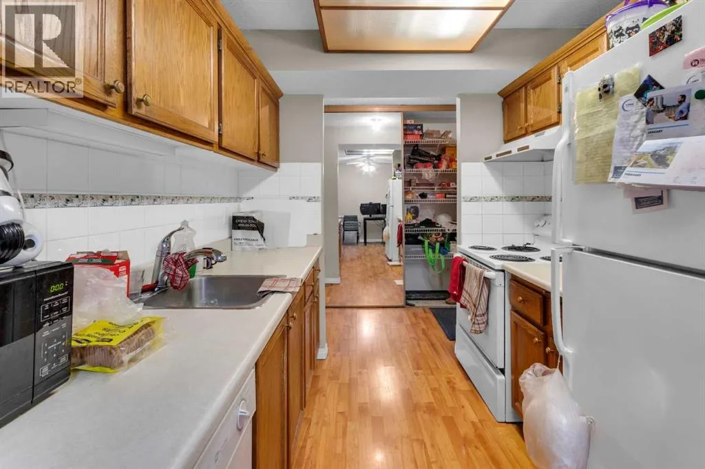 Discover unbeatable value in this 2-bedroom condo, located in a desirable, well-managed, and immaculately kept 18+ adult building in the sought-after community of Haysboro. Thoughtfully designed for comfortable everyday living, this home offers a functional layout with storage throughoutâincluding a foyer closet complete with an organizer, currently used as a pantry. The large kitchen features an abundance of cabinet and counter space, making meal prep and entertaining a breeze. A separate dining areaârare in apartment-style livingâadds warmth and versatility to the space.Step outside to the spacious south-east facing balcony, perfectly sized to relax and unwind or enjoy time with family and friends. Additional highlights include in-suite laundry with some space for storage, plus the added convenience of common laundry and a garbage chute on every floor. Condo fees provide exceptional value and true peace of mind by covering all utilitiesâheat, water, and even electricityâan increasingly uncommon feature in comparable buildings. Heated underground parking ensures comfort year-round. Residents also enjoy excellent amenities, including a fitness centre on the third floor and a welcoming main-floor social room complete with a kitchen, bathrooms, comfortable seating, TV, and vending machines.The location is hard to beat: transit, grocery stores, restaurants, and shops are all within walking distance. Youâre just minutes from Southcentre Mall and Chinook Centre, with quick access to Deerfoot Trail for easy commuting or the ring road for weekend escapes to Banff and Canmore. Whether youâre a first-time buyer or an investor, 2-bedroom properties like thisâespecially under $200,000âare increasingly hard to find. Donât miss your chance to view this incredible opportunity. Come see it for yourself! (id:27476)