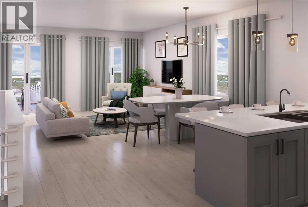 Welcome to The Chelsea at Greenwich Crossing by Akash Homes â a thoughtfully designed second-level condo suite offering modern urban living in sought-after Northwest Calgary. With approximately 1,093 sq. ft., this 2 bedroom, 2 bathroom layout delivers an ideal blend of style, functionality, and comfort.The open-concept floor plan showcases a contemporary kitchen that flows seamlessly into the dining and living areas, creating a bright and inviting space perfect for everyday living or entertaining. The primary bedroom features a walk-in closet and private ensuite, while the second bedroom and full bathroom provide flexibility for guests, roommates, or a home office. Enjoy the added convenience of in-suite laundry with pantry space and a private balcony for outdoor relaxation.Set within the vibrant community of Greenwich Crossing, residents enjoy easy access to boutique shopping, cafés, green spaces, and major commuter routes, all just minutes from Calgaryâs river valley and mountain views. Whether youâre a first-time buyer, downsizer, or investor, The Chelsea offers low-maintenance living with timeless design and urban appeal. (id:27476)