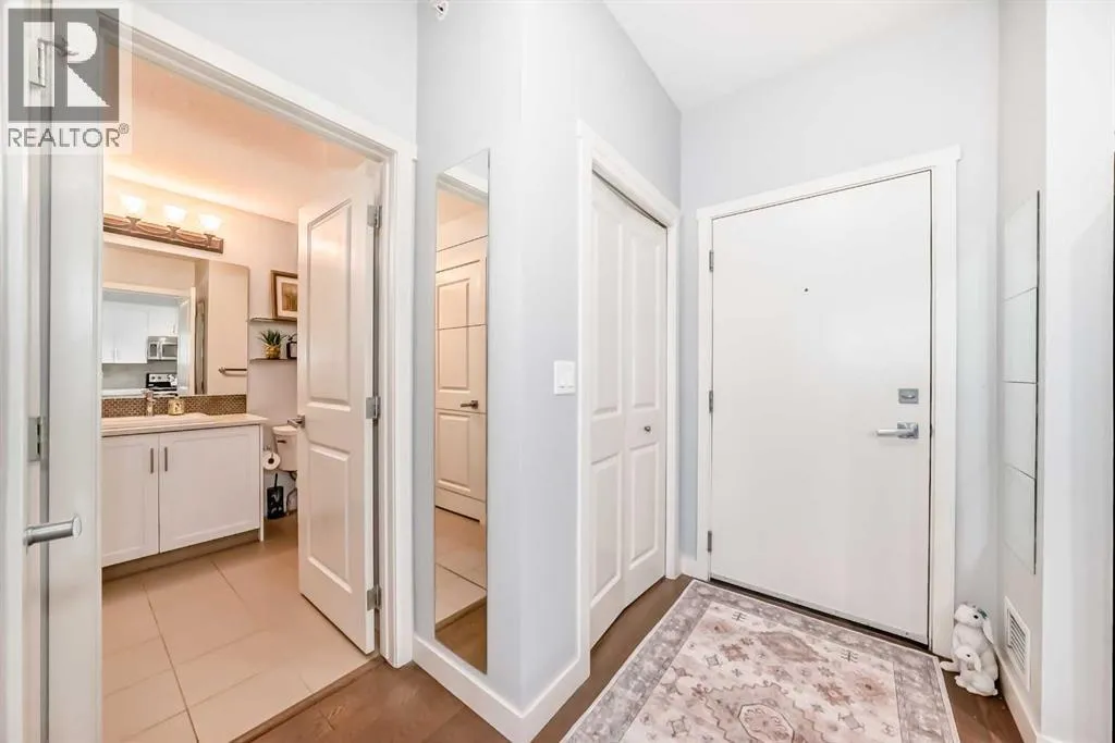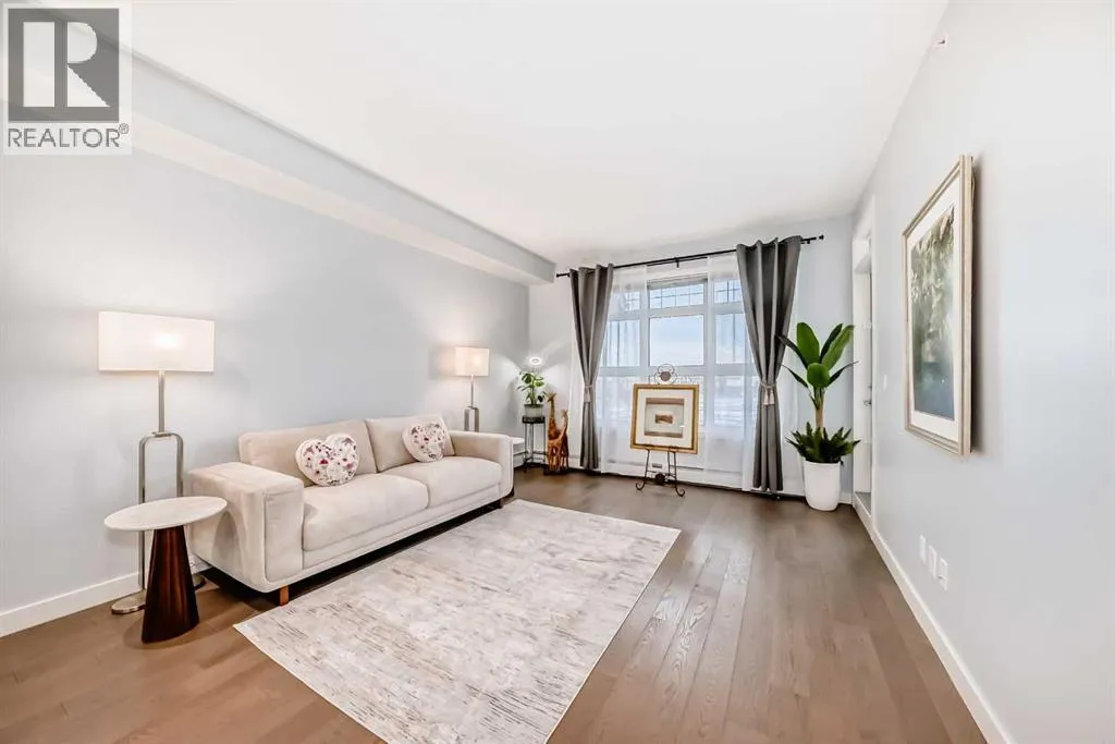 Welcome to this stunning top-floor residence in The Canoe at Auburn Bay, where style, comfort, and natural light come together beautifully. Soaring 9-foot ceilings, engineered hardwood flooring, and sleek quartz countertops set the tone for a modern, refined living space, while the east-facing covered balcony invites you to enjoy peaceful mornings and abundant sunshine.Perfectly positioned, this home is just steps from local shopping, a 13-acre community park with a skating rink, and convenient transit with direct access to downtown. The complexâs elegant central courtyard adds an extra touch of charm and community appeal.Inside, the thoughtfully designed one-bedroom layout features a freshly painted interior, a bright white kitchen, an open-concept living and dining area, and a spacious bedroom with a walk-through closet leading to a full 4-piece bath.Complete with in-suite laundry, a titled parking stall, a separate storage locker, and the privacy and quiet of a top-floor location, this home offers exceptional value and lifestyle in one of Auburn Bayâs most sought-after buildings. (id:27476)