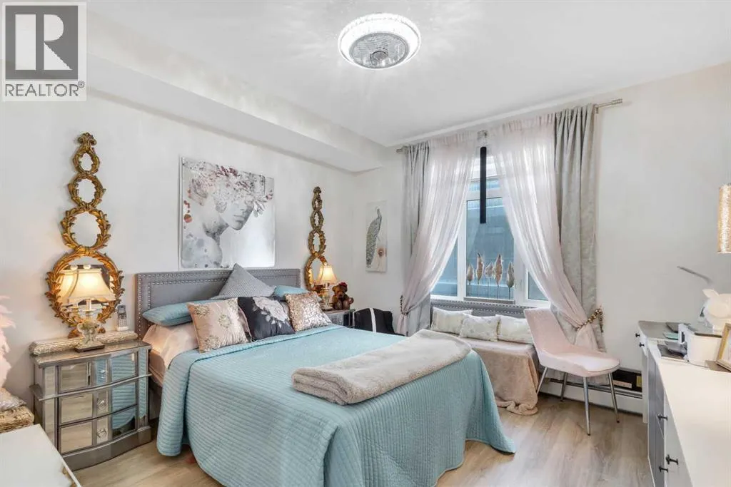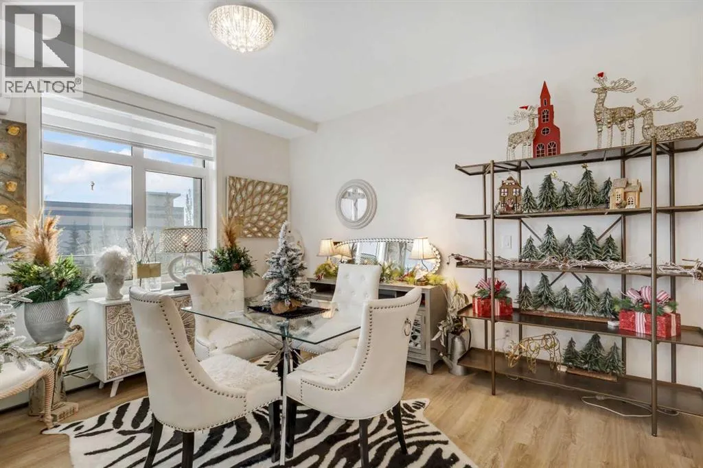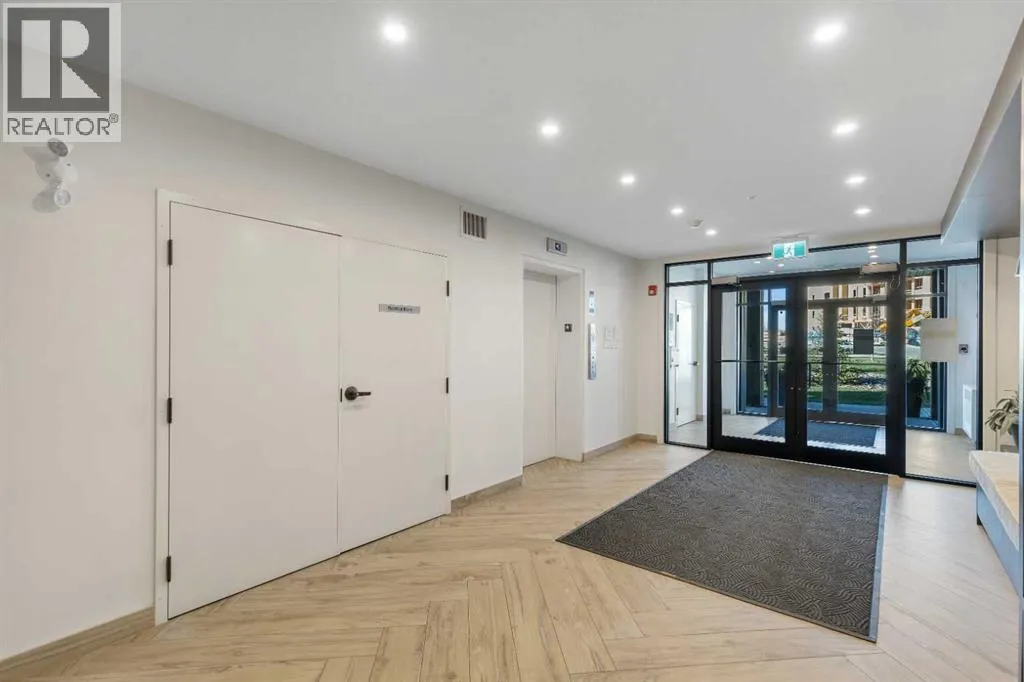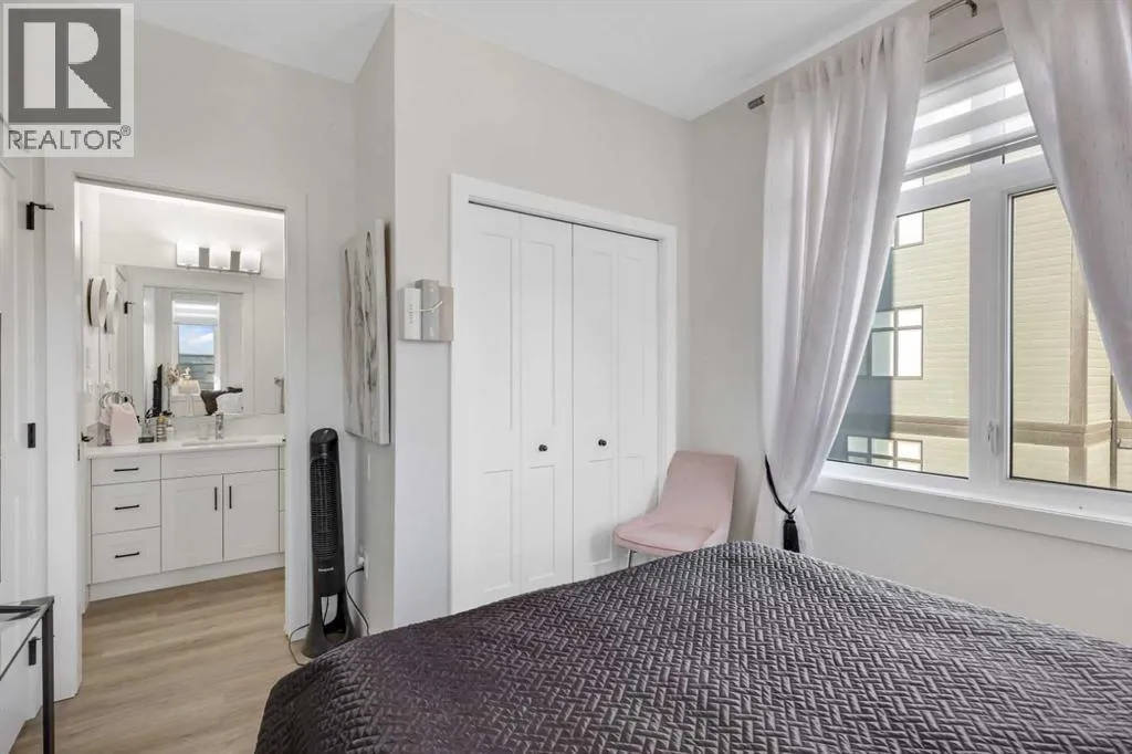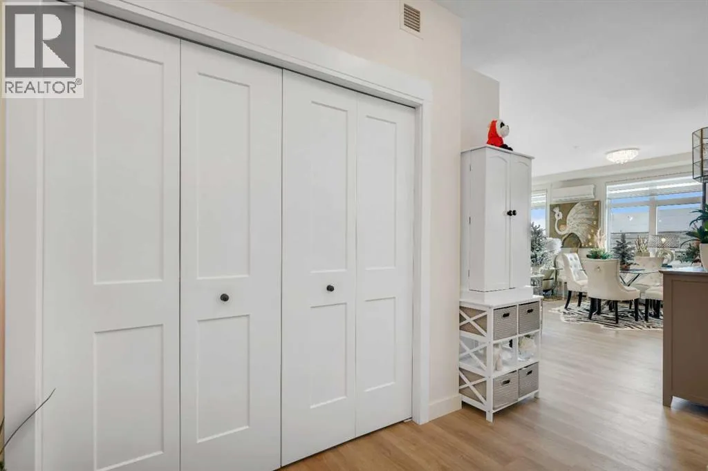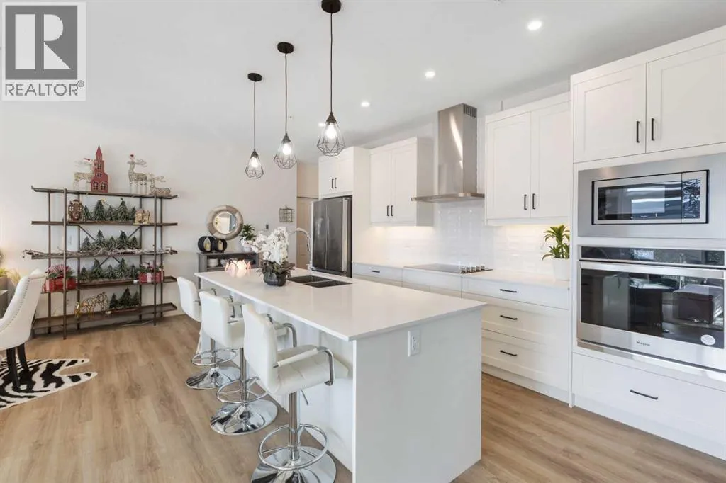 Welcome to this well maintained 2021 built 2 bedroom, 2 bathroom luxury ground level, corner unit condo in the amazing community of Sage Hill. From the front door, you are welcomed with a spacious private foyer with a closet, this condo features everything you will need with 1061 square feet of living space, luxury vinyl plank flooring throughout, a full eat in kitchen with gorgeous white contemporary quartz counter tops, a huge upgraded island, built-in microwave, built-in oven, a counter top stove, all stainless steel appliances with upgraded fridge, as well all the cupboards. It also features a large living area to comfortably fit a dining table, a full living room. The large Primary bedroom has a full walk-in closet, en-suite with double vanity, and a fully tiled shower with an 8mm glass sliding door. The spacious second bedroom offers direct access to the second full bathroom with large vanity, tile and a tub/shower combo. The laundry room offers extra storage space, full size front load stacked washer and dryer. Enjoy the morning sun on the large wrap around patio which has a natural gas line. This unit has full air conditioning to keep you cool during the hot summer months, and upgraded blinds on all the windows. Stay warm in the winter months with secure heated underground parking and a storage unit at your parking stall. This professionally managed building is well taken care. Just walking distance from your patio to the Township shopping complex in Sage Hill across the street for all your necessities. (id:27476)