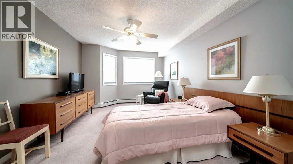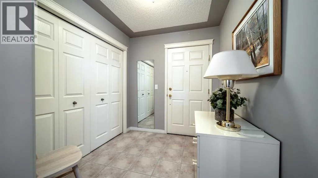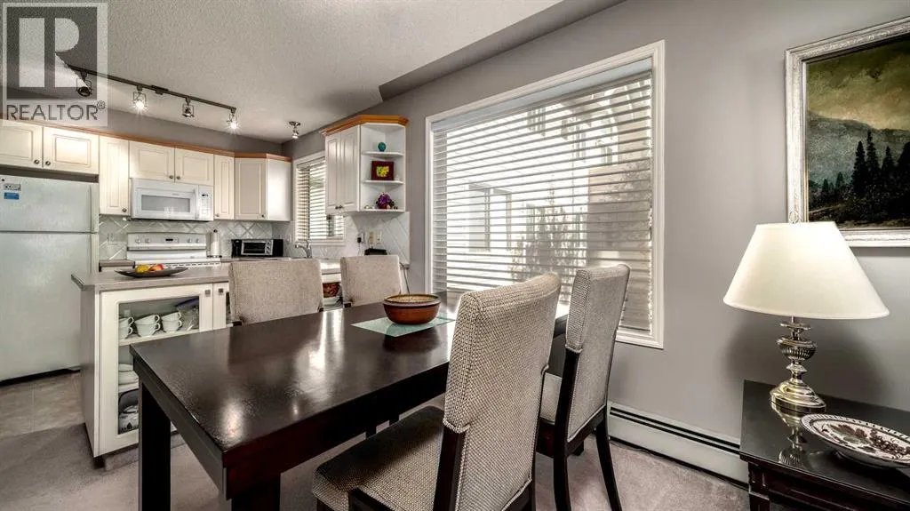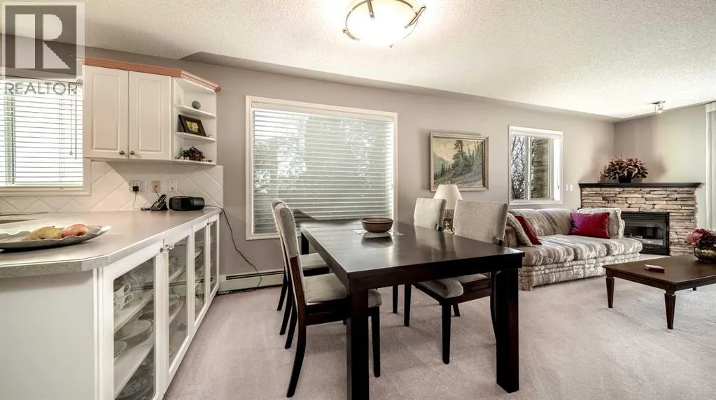Unbeatable value in this fabulous 2 bedroom, 2 full baths, end unit in Mountain View Terrace in Springbank Hill! Meticulously maintained, this bright and open corner unit is inviting and perfect for entertaining, offering, a spacious living/dining room with corner gas fireplace and open to a sparkling, white kitchen with ample cupboard and counter space. The master bedroom is complimented by a generous walk-in closet and huge 4-piece ensuite. The second bedroom is conveniently located on the other side of the unit providing privacy and ease of access to main bath. New stacked washer and dryer (2024) and new microwave hood cover (2025)! Enjoy a large, south facing deck including exterior storage room, in-suite laundry and a secured underground, titled parking stall with additional caged storage in front of stall. Perfect location! A wonderful place to call home! (id:27476)